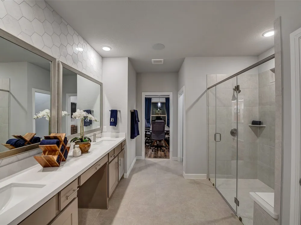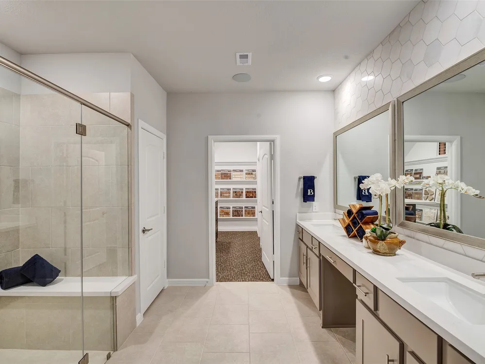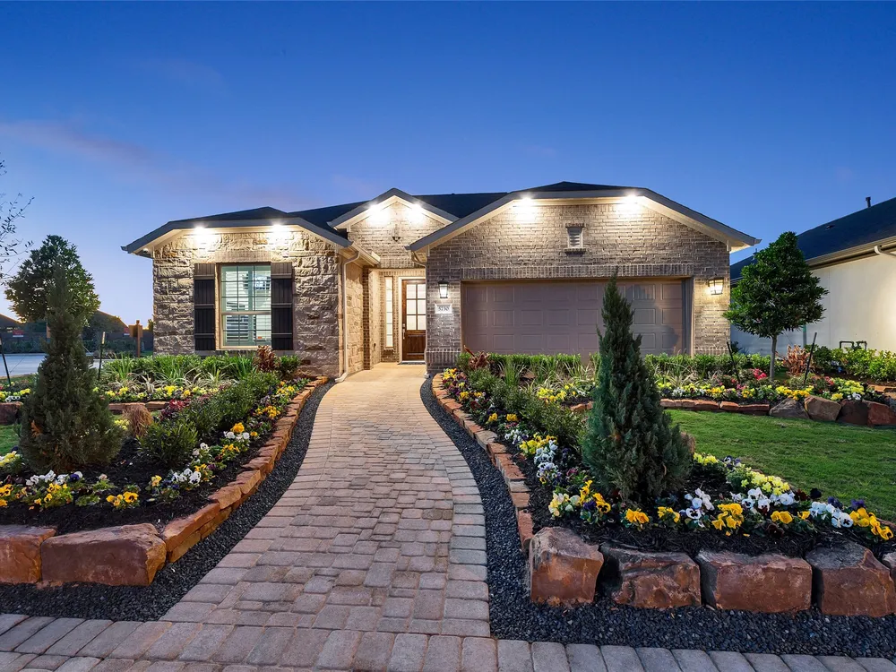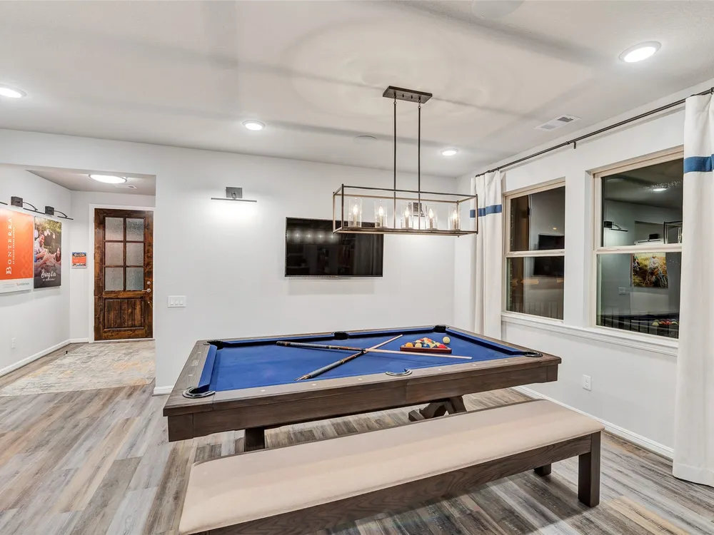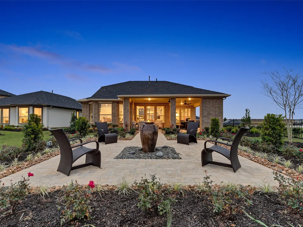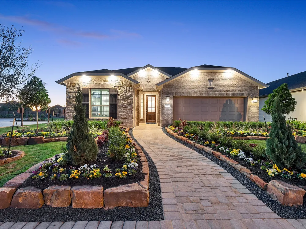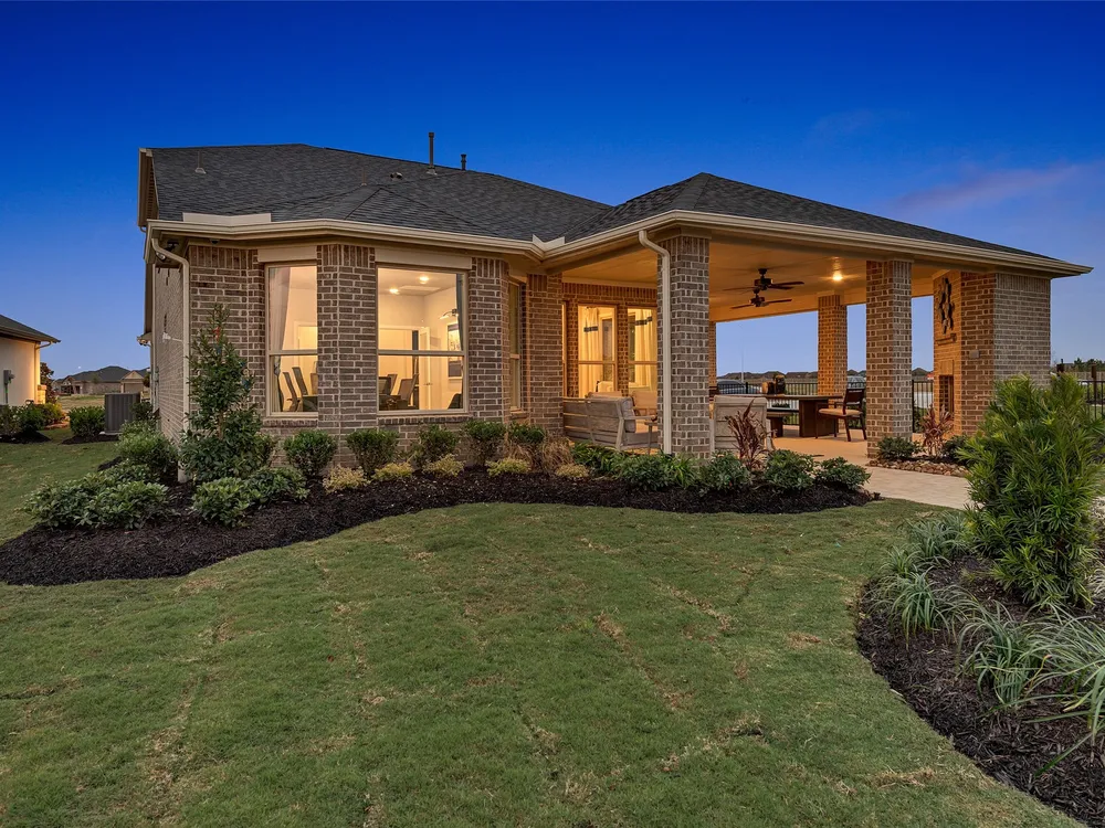 The Sherwood Plan is going to wow your family and friends upon entry in its wide foyer. Here is your chance to own this massive 2 bedroom home with an engaging flex space in the center of the home. Downsizing would never be an issue with the huge walk in closets. The covered patio provides a peaceful outdoor retreat and a great place to entertain. Bonterra is a master-planned community designed for today’s 55+ home buyers who are ready to take advantage of the lifestyle that’s possible with resort style living. Bonterra’s amenities, include a 10,000 square foot community Clubhouse with fitness center, spa, gameroom, lagoon style pool, pickleball courts and more. Structural options added include: extended covered patio, outdoor fireplace, Texas basement #2, bay window in primary bedroom, sliding glass door, gourmet kitchen 2.