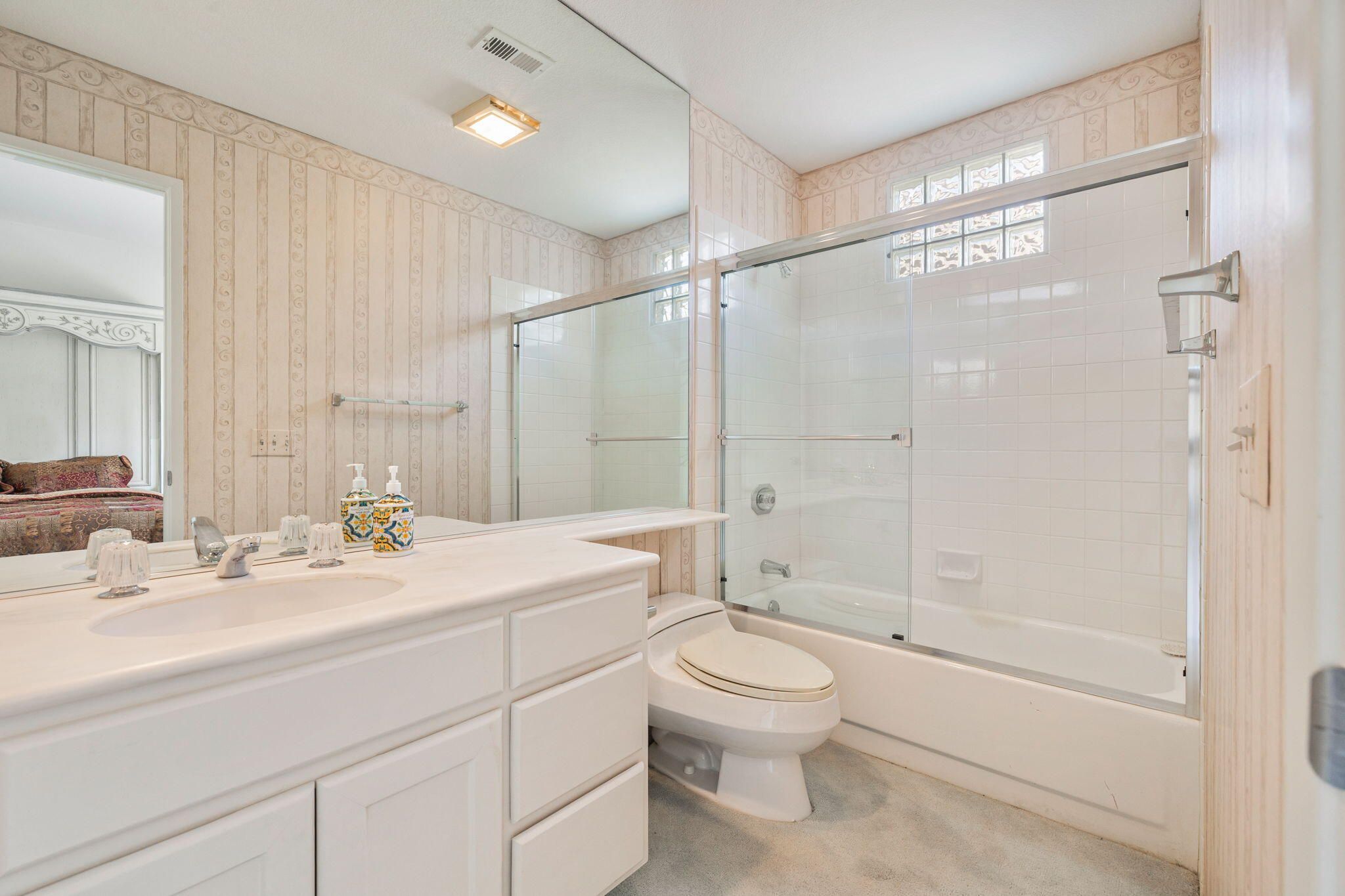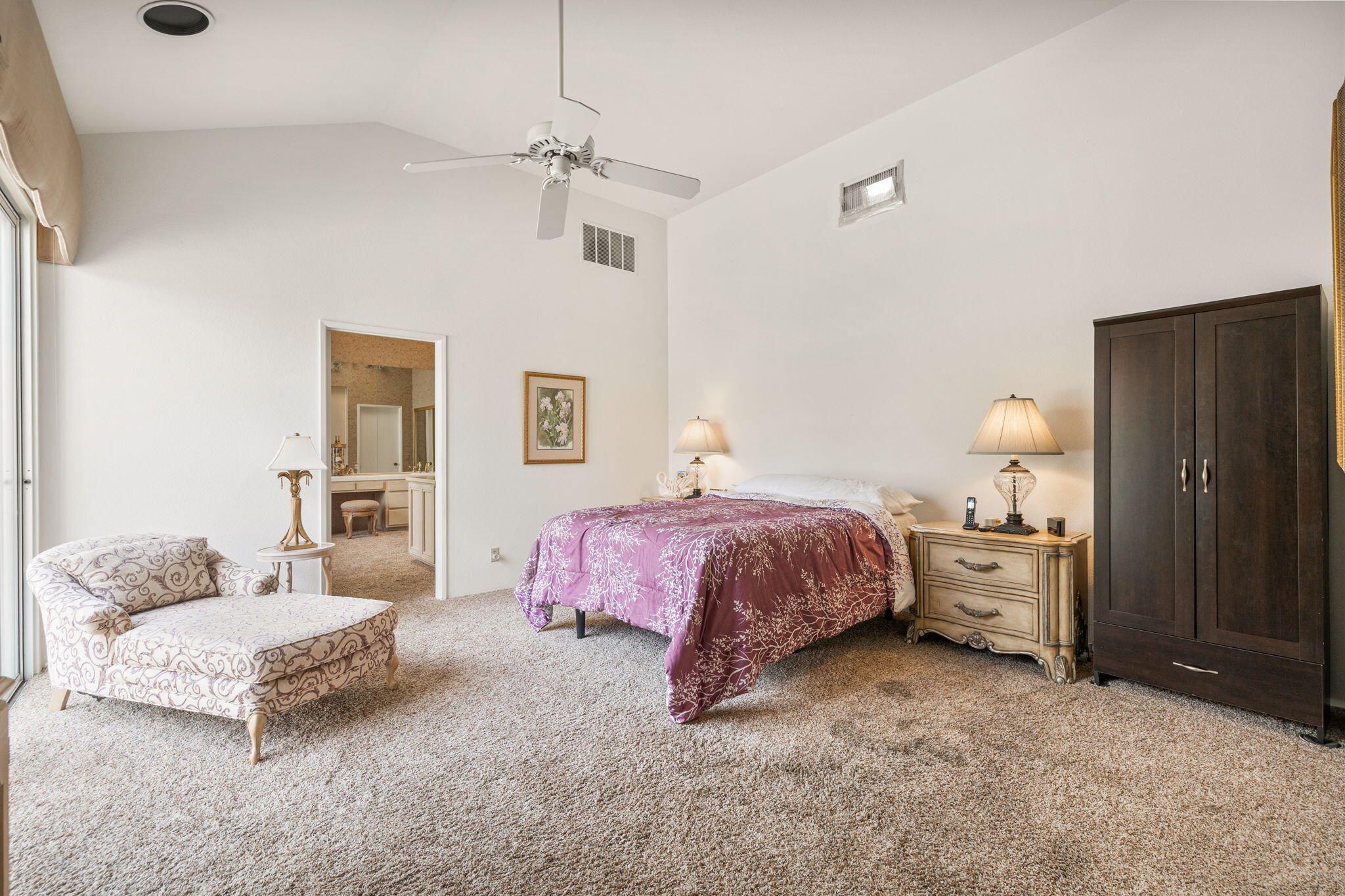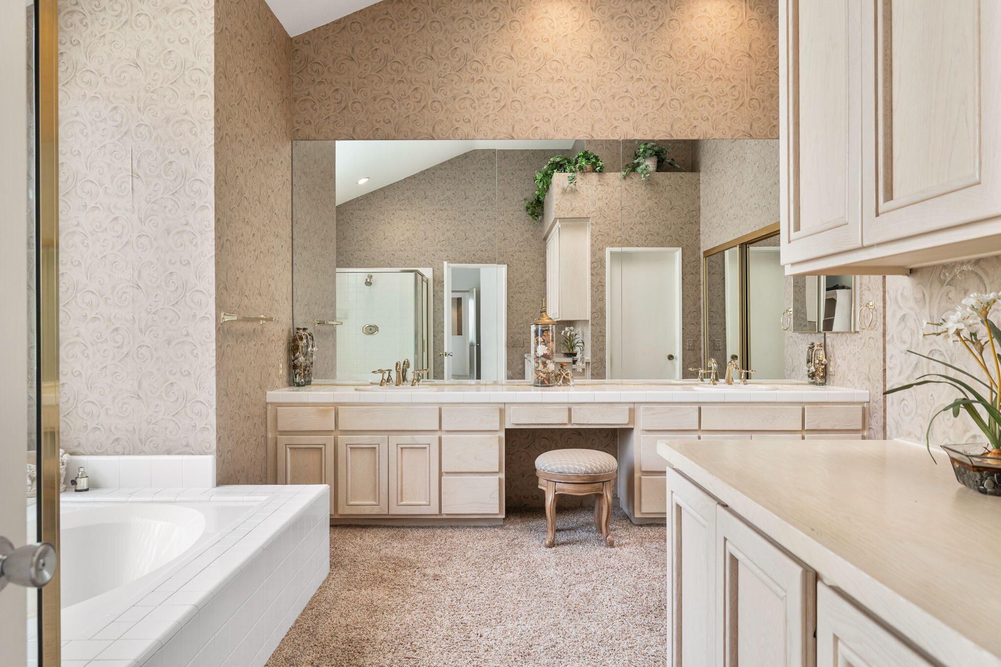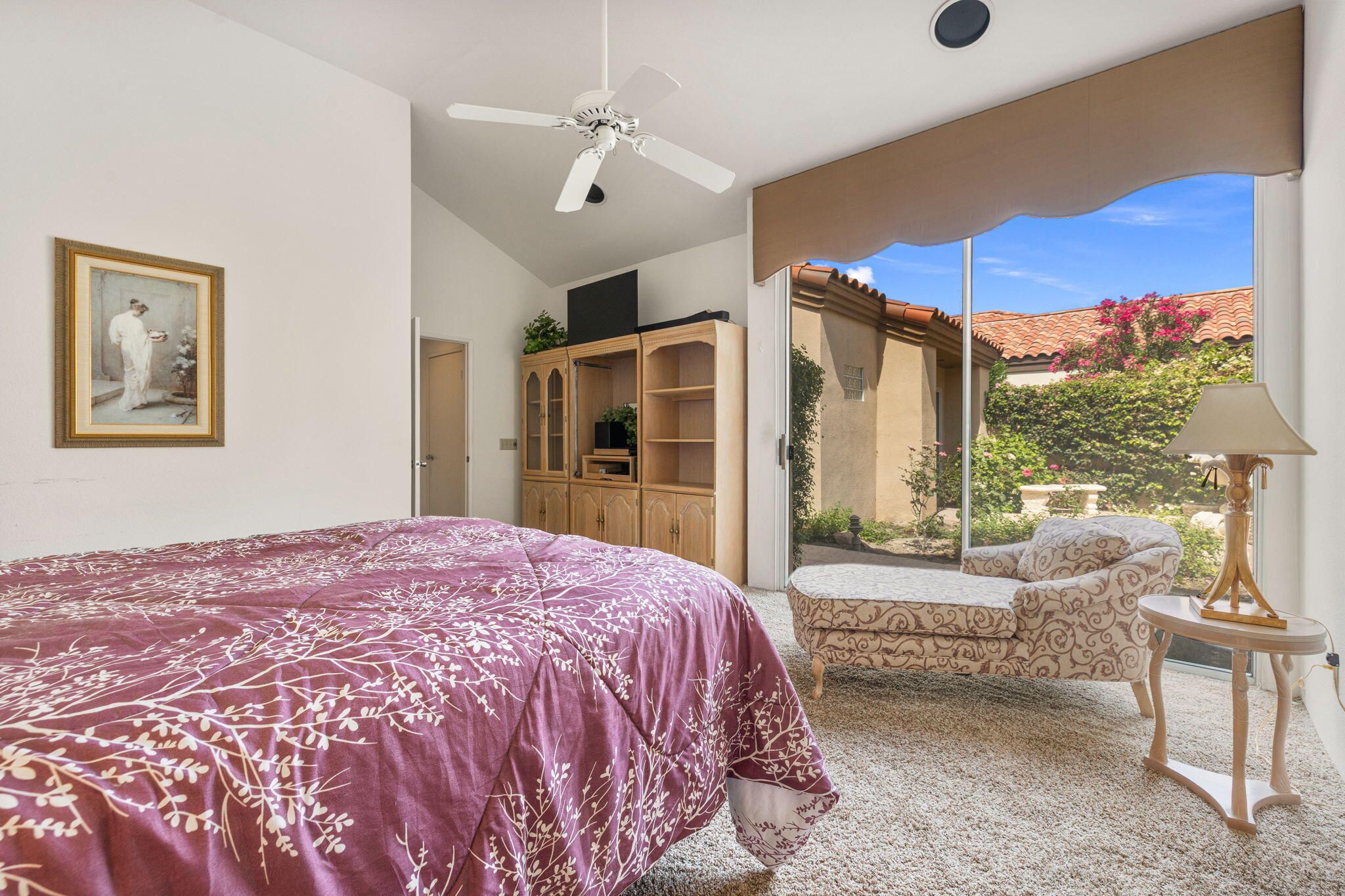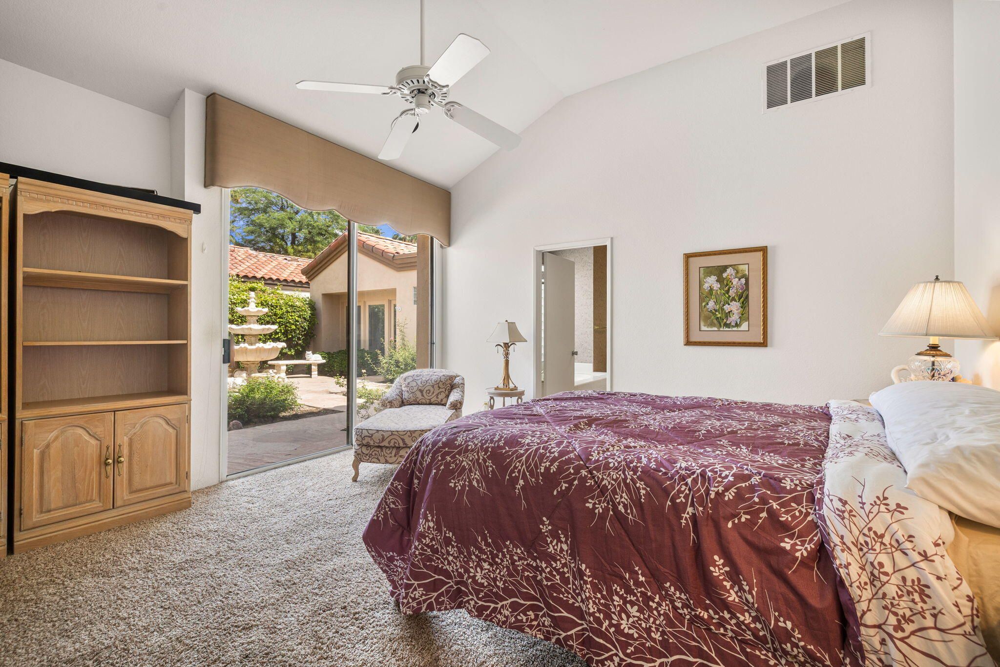 OPPORTUNITY awaits you to TRANSFORM this original 1990 residence into your own CUSTOM RETREAT. Located on the 16th hole of the PGA Nicklaus Private Course, this property captures unobstructed SOUTHWEST VIEWS overlooking the private pool and spa, fairway, lake, and the breathtaking 180-degree panorama view of the Santa Rosa Mountain range. MAIN home features a spacious living area with vaulted ceilings, fireplace, and sit-down wet bar, all oriented to take in the spectacular golf course and mountain views. Large patio doors open to the entertainment patio with a retractable awning creating seamless indoor-outdoor living. The expansive kitchen and dining area open to the BBQ patio, ideal for casual gatherings and entertainment. PRIMARY Bedroom suite and GUEST Bedroom suite both offer ensuite baths and sliding glass doors opening to the private interior courtyard. A converted GUEST Bedroom now serves as a den or media room just off the living room with a private two-piece lavatory and sliding glass doors opening to the view patio. A guest POWDER room and oversized LAUNDRY room complete the main residence. DETACHED CASITA overlooks the private interior courtyard, offering wonderful flexibility for guests or a private office. The property also includes a large two-bay attached garage plus a separate entry golf cart garage attached to the Casita-ideal conversion to an art studio, workshop, or additional creative space. This is a rare opportunity to RENOVATE, UPGRADE, and LANDSCAPE to your personal taste while enjoying an exceptional setting and unforgettable views.