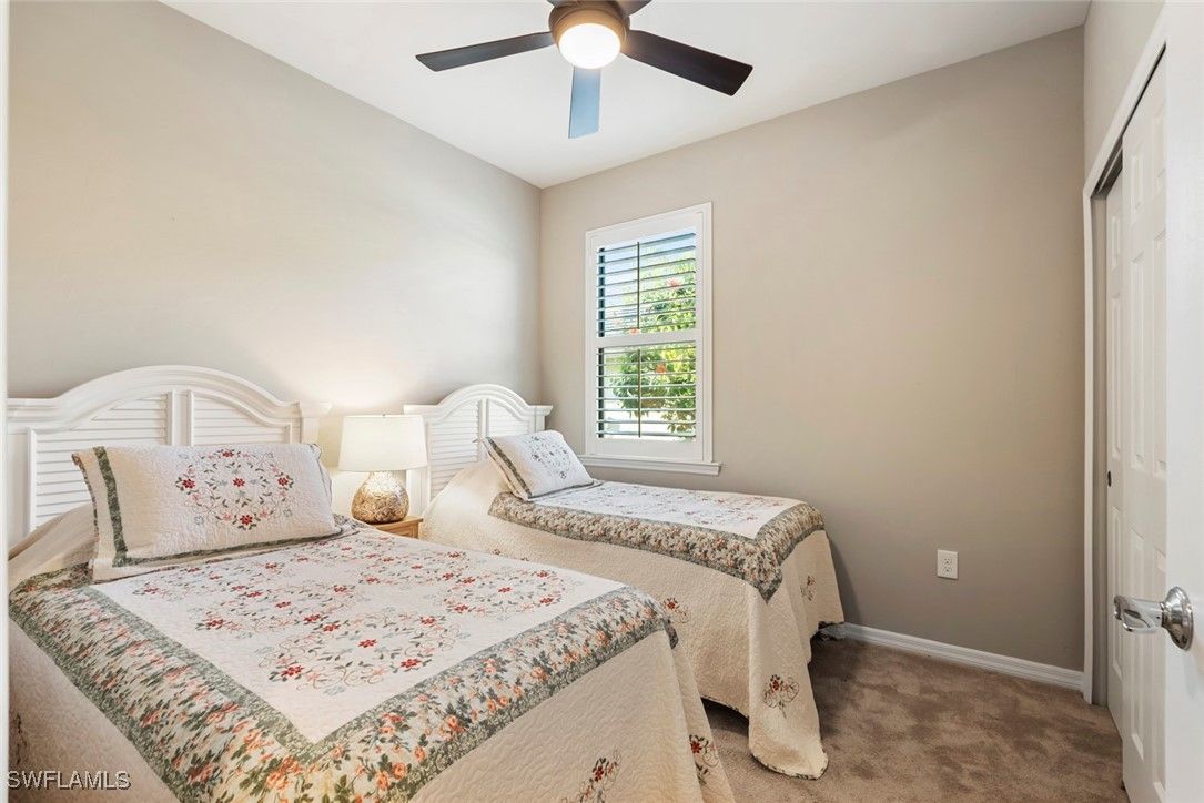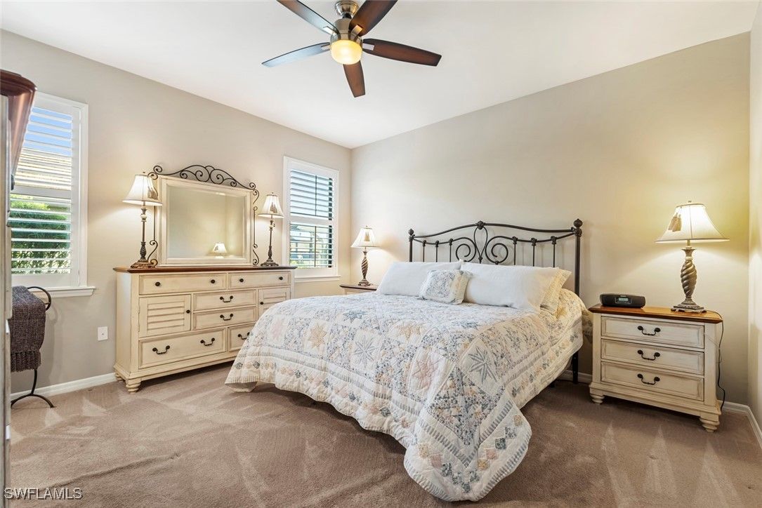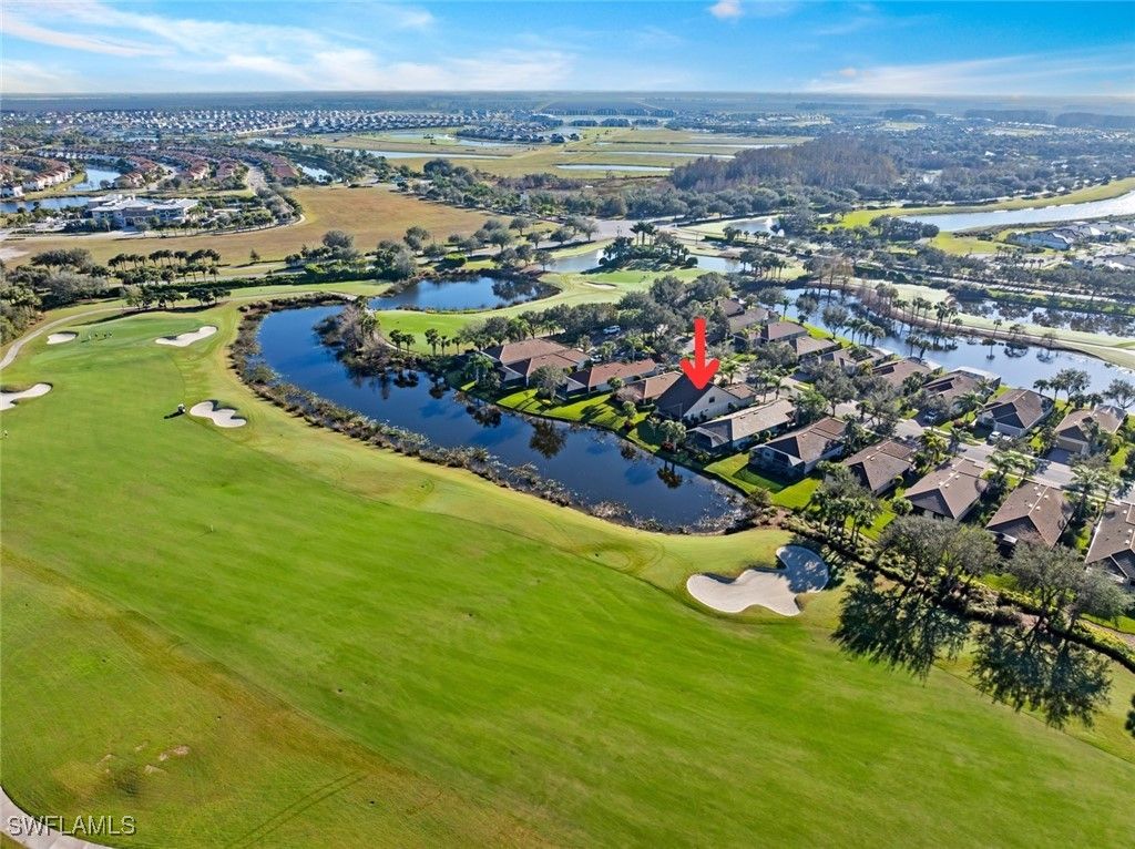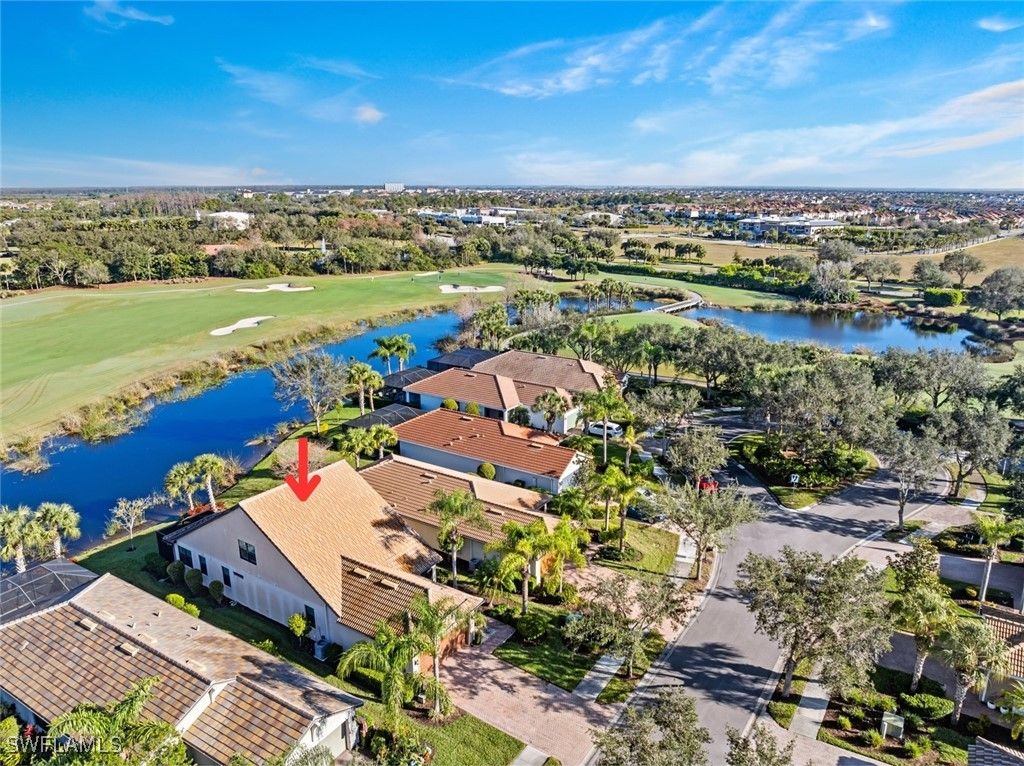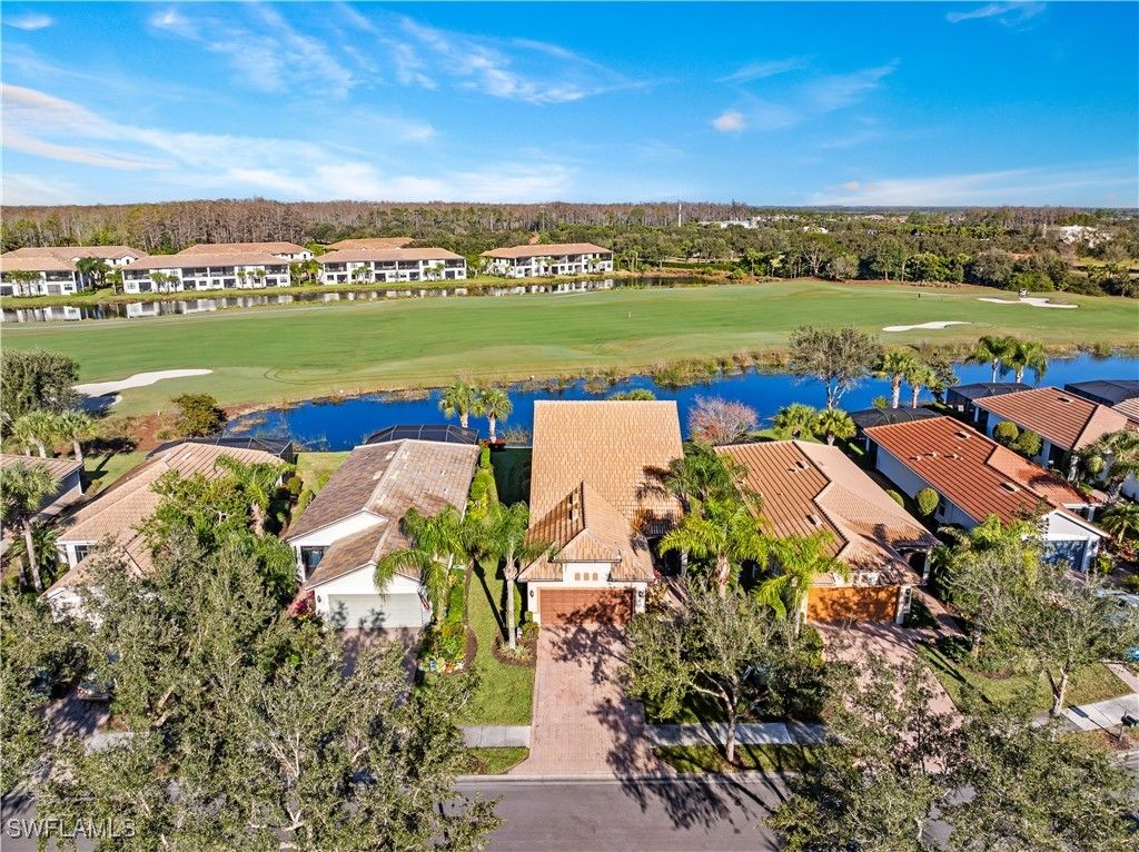 GOLF COURSE & WATER VIEW on this premium lot located in Del Webb. Enjoy serene views of the lake and the 6th Fairway of the Panther Run Golf Course from the comfort of your SCREENED-IN LANAI. This house is located in the highly sought-after 55+ Del Webb Naples community, featuring the popular TAFT floor plan with 3 bedrooms, 3 full baths, den and FLORIDA ROOM offering extra square footage. This 2-story home will be perfect for having guests or family stay. The second floor has an en-suite with a full bath and bedroom, along with a living room area and two large walk-in closets. The PRIMARY SUITE and all amenities for day to day living are located on the FIRST FLOOR. The primary suite is a true retreat with a large walk-in closet, bathroom equipped with double sinks and a shower enclosure. This property features numerous upgrades, including a 4’ EXTENSION in the GARAGE along with a UTILITY SINK and EPOXY garage floor, SECURITY SYSTEM, PLANTATION SHUTTERS, SCREENED-IN FRONT LANAI and TILE ON THE DIAGONAL. Equipped with HURRICANE IMPACT WINDOWS and doors that will give you a piece of mind during storms and help with energy efficiency. Ceiling fans and recessed lighting enhance the home’s inviting atmosphere. NEW CARPET in downstairs bedrooms and den was installed February 2025. Experience the Del Webb Active Adult lifestyle with access to a range of amenities, including the Rusty Putter Restaurant, a resort-style pool, lap pool, fitness center, pickleball, bocce and tennis courts, a golf simulator, and billiards. Explore Del Webb Naples and Ave Maria effortlessly in your golf cart, whether you're heading to Publix, church, or out for a delightful dinner. Embrace the lifestyle you deserve in this extraordinary home, where comfort, luxury, and convenience seamlessly come together.