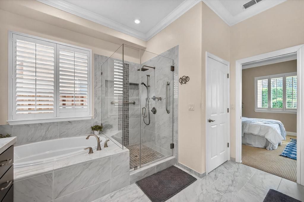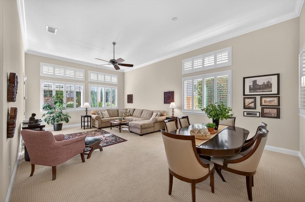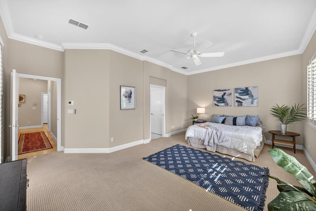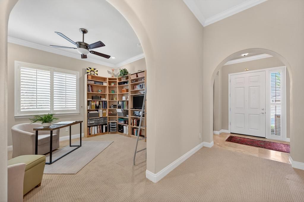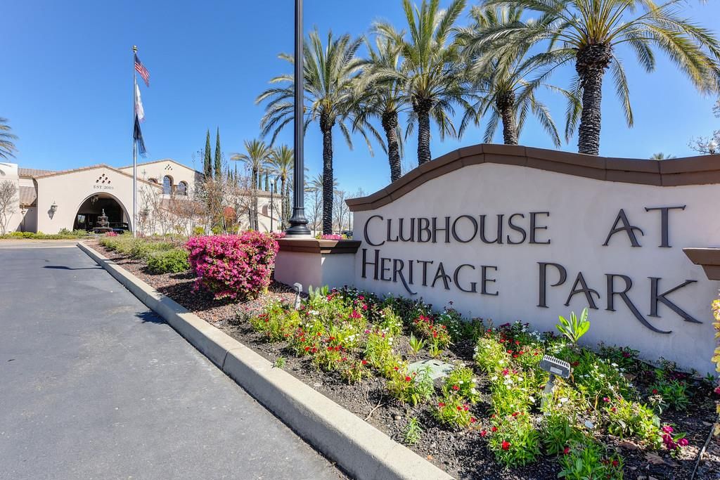 This highly desirable Pacifica model w/ 2 beds / 2.5 baths plus den/office is full of sophistication and elegance in the popular 55+ active adult community of Heritage Park. This beautiful home has a grand foyer, high ceilings w/ crown molding, large office/library and a spacious living/dining area. The chef's kitchen w/ large island, high quality appliances, granite counters and breakfast nook is adjacent to a family room w/ gas fireplace and access to the backyard. A light and bright secluded primary bedroom w/ luxurious bathroom and cleverly designed walk-in closet offers serenity and relaxation. An entertainer's dream backyard has a gas fire pit, pergola, awning and screen. This delightful Zen garden has many decorative trees and seasonal color to enjoy those special moments with friends and family. The guest bedroom has its own wing and private full bath. Laundry room leads to a two-car garage w/ storage and fully built office/craft studio! Heritage Park's world-class amenities include a 25,000 sf clubhouse w/ indoor/outdoor pool, restaurant, ballroom, library, fitness center, aerobics room, over 70 clubs and 5 one-acre parks for activities like gardening, biking, walking, water volleyball, bocce ball, tennis and pickleball. A friendly and welcoming community awaits you!