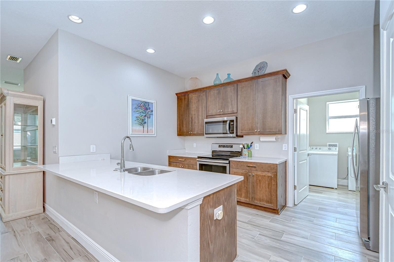 This is an absolute steal—a home hasn’t sold at a price this low in this neighborhood since 2021! Opportunities like this are few and far between, making this an incredible chance to own in a sought-after area at unmatched value. Welcome to this stunning 2-bedroom, 2-bath villa with a 2-car garage, nestled in the highly sought-after 55+ community of Bridgewater Landing! Designed for comfort and convenience, this Sunrise home offers a bright, open layout with thoughtful details throughout—and a freshly painted exterior for added curb appeal. Step inside through the elegant glass front door, which floods the entryway with natural light. The kitchen is truly the heart of the home, featuring stainless steel appliances, bar seating, and a seamless flow into the spacious great room—perfect for effortless entertaining and conversation. Large sliding doors lead to the patio, creating a wonderful indoor-outdoor living experience. Tucked behind the great room and dining room is a versatile flex space, ideal for a home office, reading nook, or art studio. The primary suite is a peaceful retreat with a tray ceiling, serene backyard views, and a luxurious en-suite bath complete with a large walk-in shower, dual sink vanity, and a HUGE walk-in closet. The second bedroom is situated at the front of the home for added privacy and is conveniently located near a full bathroom—perfect for guests. Outside, a spacious screen patio awaits to enjoy with friends and family. Bridgewater Landing offers a vibrant lifestyle with a beautifully appointed clubhouse at the heart of the community, where neighbors gather for events and meetings. Enjoy sunny days at the outdoor pool or unwind on the patio with a favorite book. A picturesque pond with a surrounding walking path invites leisurely strolls or energizing walks. Don’t miss your chance to live in this beautiful home in a welcoming and active community!