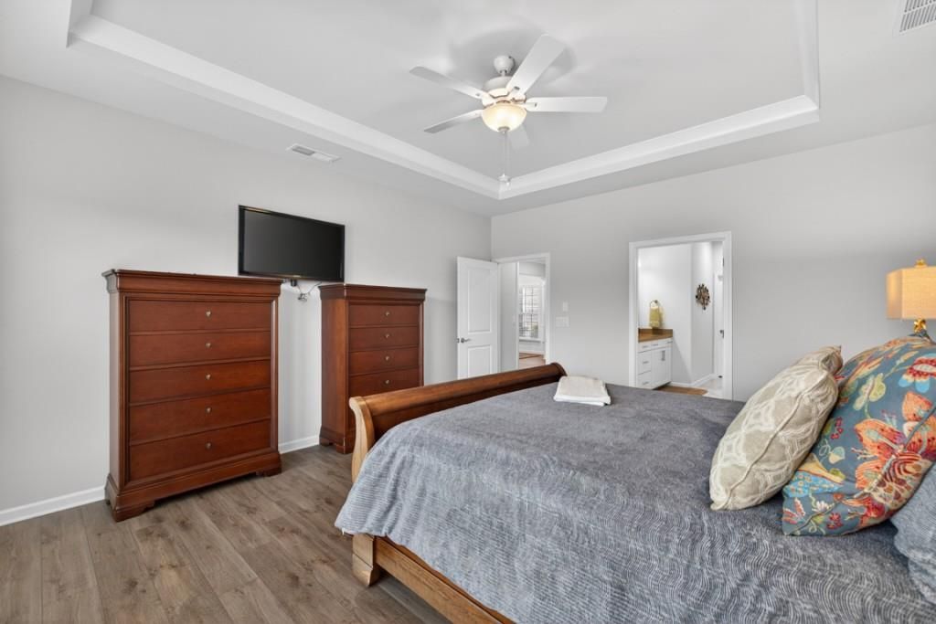 Here's a polished version for your listing remarks: Rare find in a 55+ community, this true 3-bedroom home offers easy, step-free living and a stunning wooded backyard view. Relax on the screened rear patio or unwind on the inviting front porch while listening to the birds. The home is also equipped with an irrigation system and security cameras. Inside, you'll find two separate sitting areas, including a cozy fireplace for relaxing evenings. The large dining area is perfect for entertaining family and friends. The gourmet kitchen features stainless steel appliances and two pantries for plenty of storage. The oversized primary bedroom includes a huge walk-in closet and a zero-entry full shower. This is a must-see home!