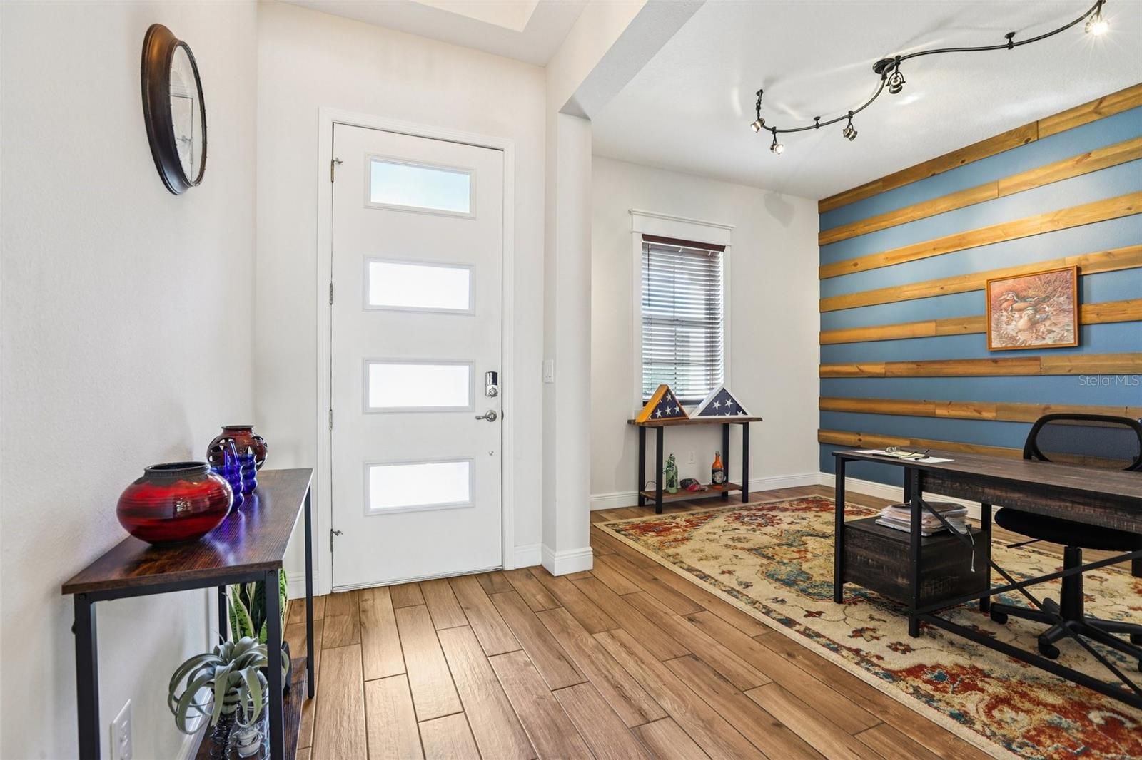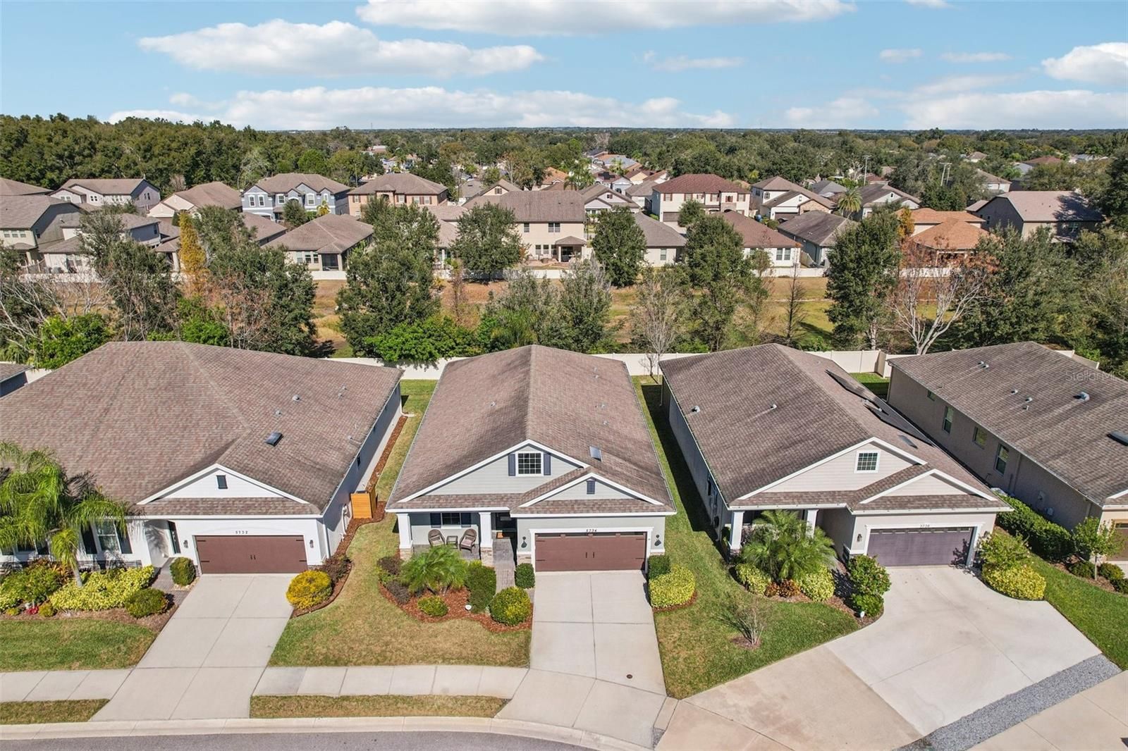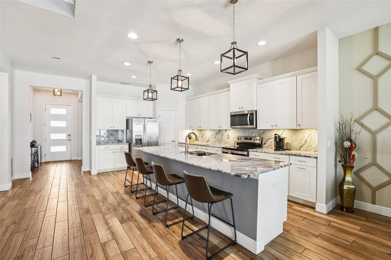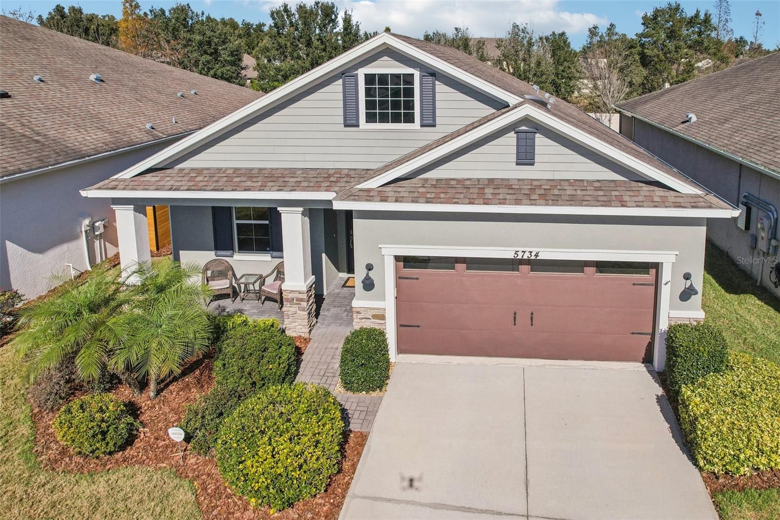 Experience unparalleled elegance in the prestigious Bridgewater Landing 55+ community. Fully Furnished 2 Bed / 2 Bath + Custom Office with a 2 car garage. From the moment you arrive, the meticulous landscaping and charming covered front porch set the stage for what lies within. Inside, gorgeous wood style ceramic tile flooring flows through an open-concept layout, beginning with a sophisticated custom office featuring rich wood-paneled walls. The heart of the home is a chef’s dream, boasting a sprawling breakfast bar, premium stone countertops, and stainless steel appliances—all illuminated by custom lighting. The kitchen offers clear, sweeping views of both the dining and living areas, ensuring you never miss a moment while entertaining. Retreat to the primary suite, offering a private sanctuary with a walk-in closet and a spa-like en suite. Guests will feel right at home in the spacious second bedroom with easy access to a beautifully upgraded bathroom, decorated with ceramic wood tile. Transition seamlessly to outdoor living through French doors or primary suite sliders to the screened-in lanai with durable rubber flooring and a ceiling fan—perfect for year-round entertaining! Experience maintenance-free living at its finest in Bridgewater Landing! This premier 55+ community offers a diverse mix of villas, apartments and single-family homes designed for an active, worry-free lifestyle. Your low HOA fee covers it all: front and rear lawn care, irrigation, exterior water, roof maintenance, exterior painting, and monthly home security monitoring. For a small monthly fee, you are able to enjoy the vibrant community clubhouse or relax by the sparkling pool and patio. Enjoy a scenic stroll around the pond. Location is everything—you are seconds away from Publix, Starbucks, and local dining, with rapid access to I-75 and the Lee Roy Selmon Expressway for easy commuting.