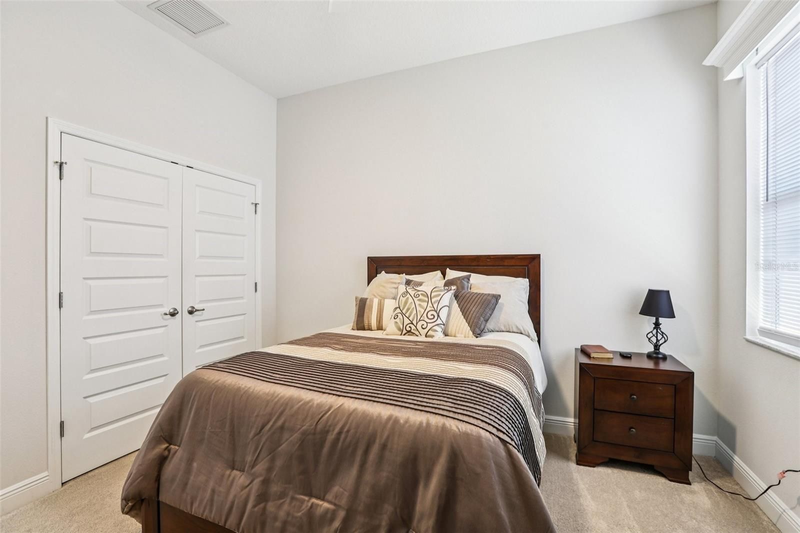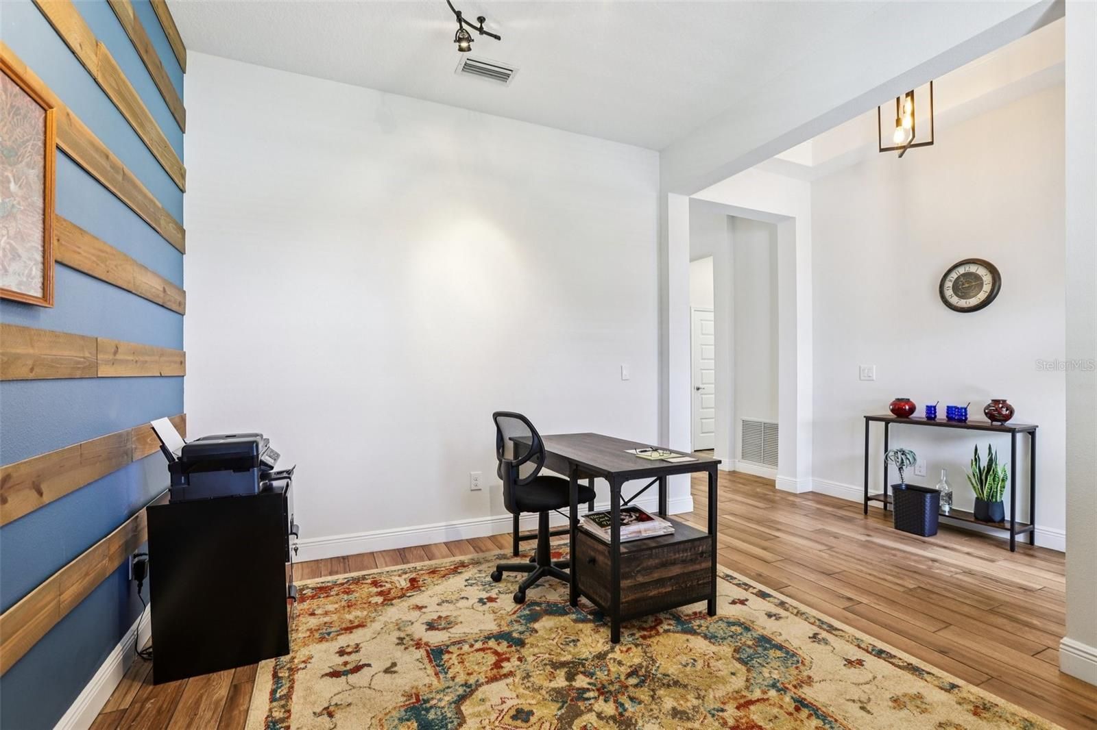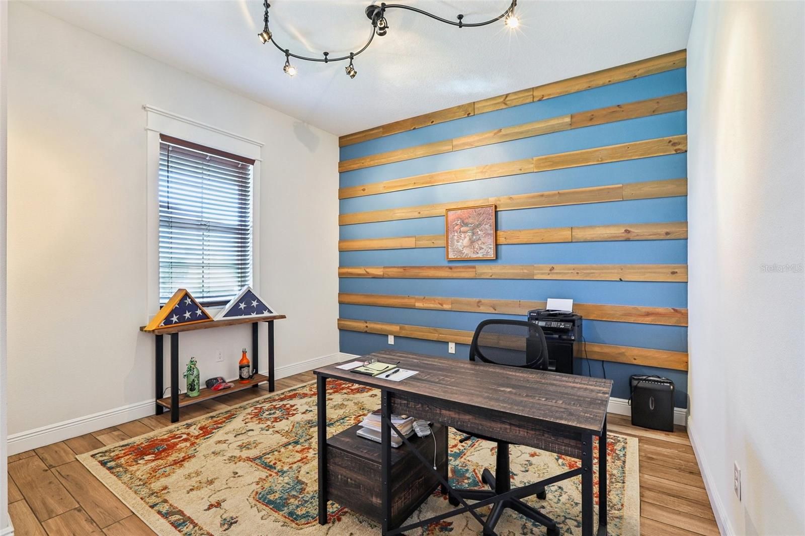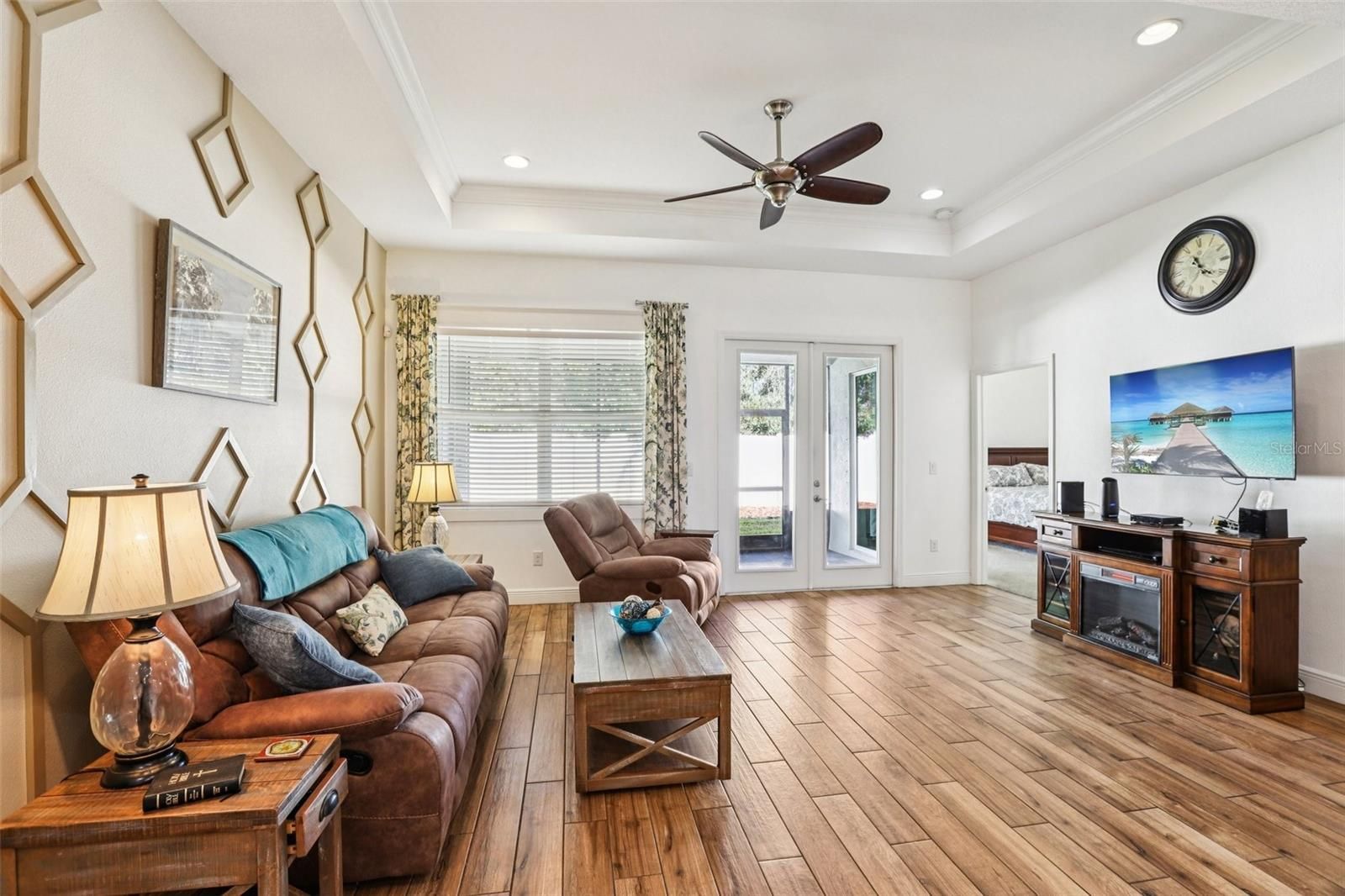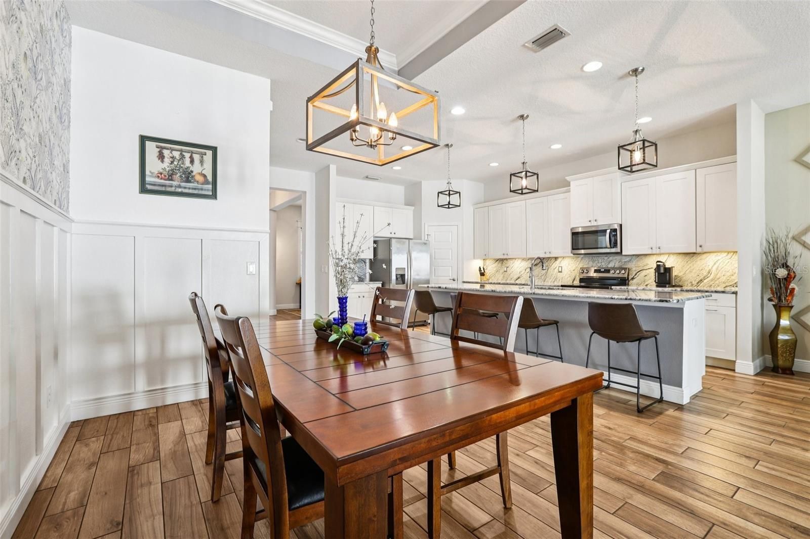 Experience unparalleled elegance in the prestigious Bridgewater Landing 55+ community. Fully Furnished 2 Bed / 2 Bath + Custom Office with a 2 car garage. From the moment you arrive, the meticulous landscaping and charming covered front porch set the stage for what lies within. Inside, gorgeous wood style ceramic tile flooring flows through an open-concept layout, beginning with a sophisticated custom office featuring rich wood-paneled walls. The heart of the home is a chef’s dream, boasting a sprawling breakfast bar, premium stone countertops, and stainless steel appliances—all illuminated by custom lighting. The kitchen offers clear, sweeping views of both the dining and living areas, ensuring you never miss a moment while entertaining. Retreat to the primary suite, offering a private sanctuary with a walk-in closet and a spa-like en suite. Guests will feel right at home in the spacious second bedroom with easy access to a beautifully upgraded bathroom, decorated with ceramic wood tile. Transition seamlessly to outdoor living through French doors or primary suite sliders to the screened-in lanai with durable rubber flooring and a ceiling fan—perfect for year-round entertaining! Experience maintenance-free living at its finest in Bridgewater Landing! This premier 55+ community offers a diverse mix of villas, apartments and single-family homes designed for an active, worry-free lifestyle. Your low HOA fee covers it all: front and rear lawn care, irrigation, exterior water, roof maintenance, exterior painting, and monthly home security monitoring. For a small monthly fee, you are able to enjoy the vibrant community clubhouse or relax by the sparkling pool and patio. Enjoy a scenic stroll around the pond. Location is everything—you are seconds away from Publix, Starbucks, and local dining, with rapid access to I-75 and the Lee Roy Selmon Expressway for easy commuting.