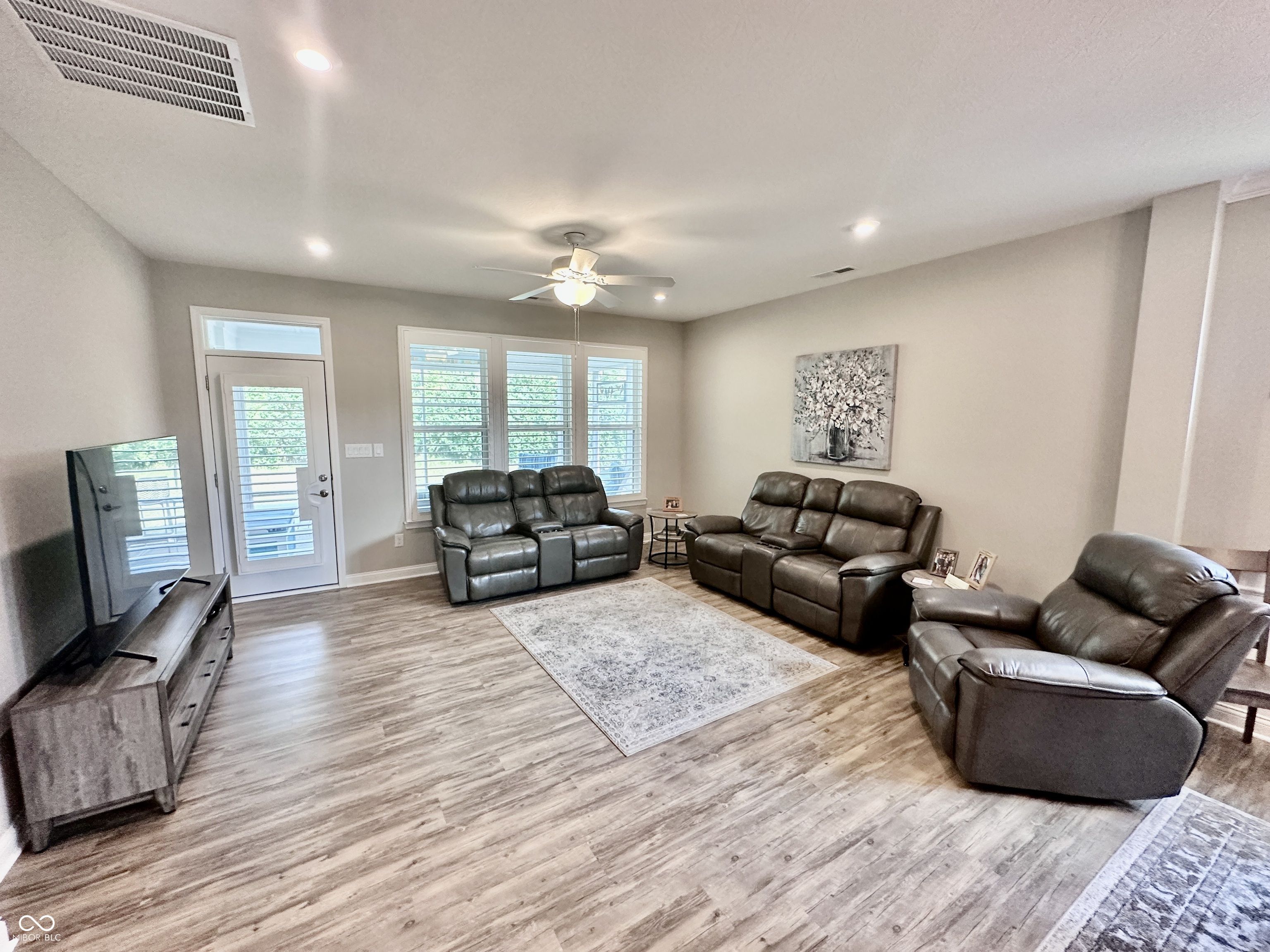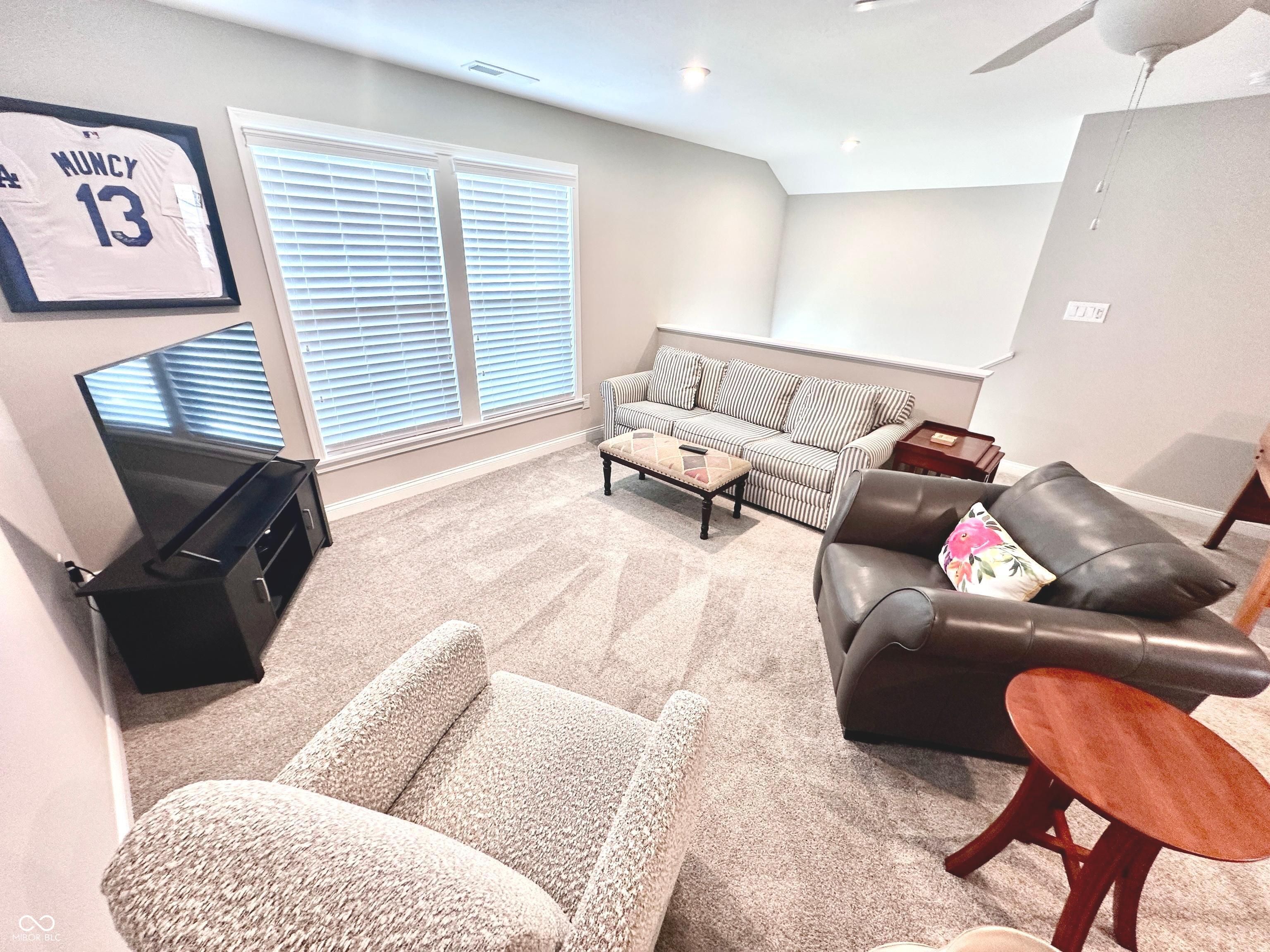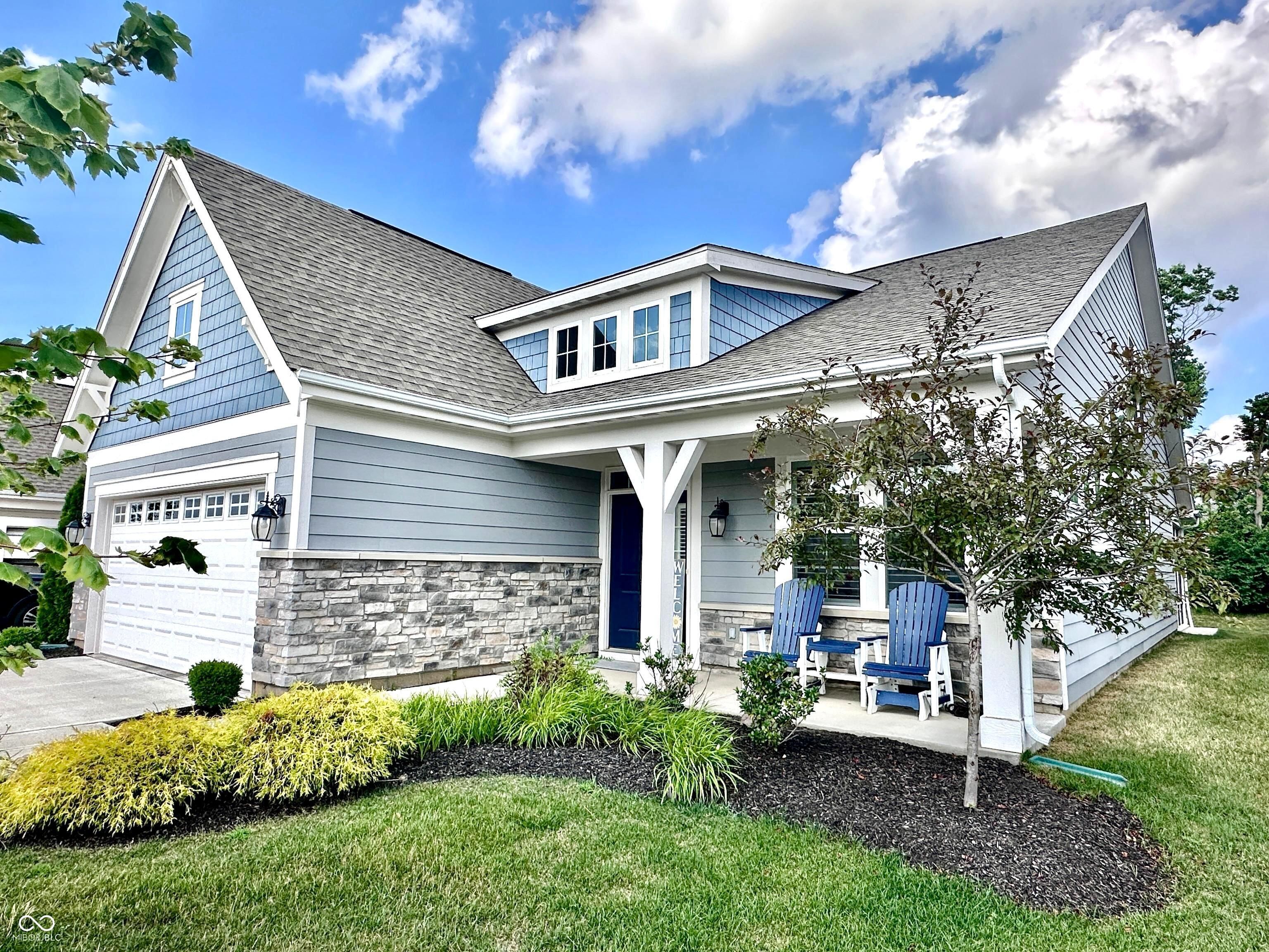 Nestled in a desirable low-maintenance community in Franklin Township, this thoughtfully designed home offers effortless living with a private, tree-lined backyard featuring an oversized open patio with a gas grill and a screened-in patio complete with a ceiling fan and gas heater. The main level boasts 9' ceilings with recessed LED lighting, two spacious bedrooms, and two full baths, while the upper level includes a third bedroom with a walk-in closet, a full bath, and a massive loft bonus space. The primary suite is a true retreat with a tray ceiling, ceiling fan, large walk-in closet, and a luxurious en suite bath featuring double sinks and a walk-in tile shower with a full-length bench. A spacious Great Room flows into the dining area, which showcases decorative wood wall treatments for a custom touch. The gourmet kitchen offers 42" maple cabinets, granite countertops, a tile backsplash, pantry, undermount lighting, stainless steel appliances, and a center island allowing for additional seating. Custom 3" hinged plantation shutters adorn all windows and doors, and transom windows throughout the home fill it with natural light. Additional highlights include luxury vinyl plank flooring in main living areas, plush carpeting in all bedrooms and the loft, and a private front office perfect for remote work. The home features a stone and composite exterior, a built-in bench with storage organizers, multiple closets, and a finished two-car garage with opener. Craftsman-style five-panel doors add charm throughout the interior. Community fees cover snow removal from the street to the front door, lawn mowing and fertilization, shrub trimming, professional management, and access to a scenic common picnic area.