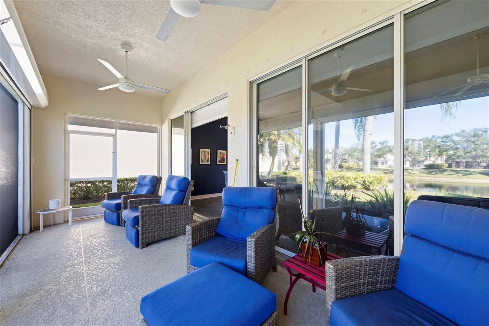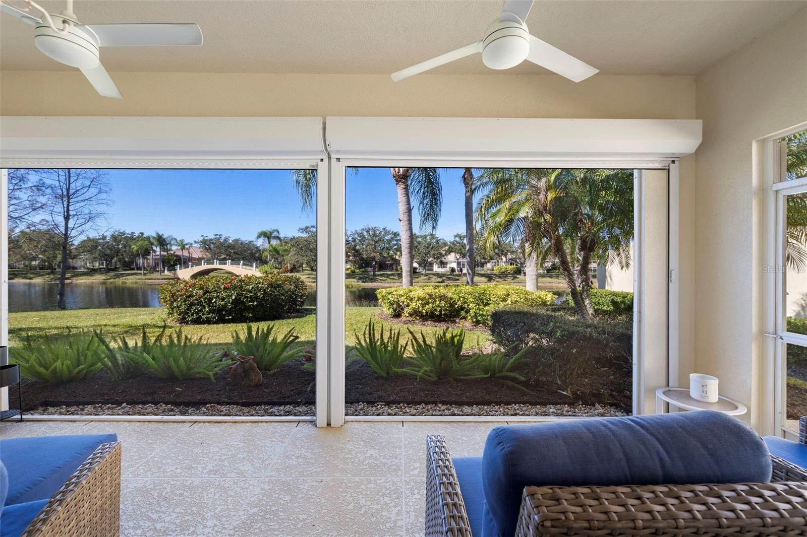 Prime Cul-De-Sac Waterfront Location. Welcome to this beautifully upgraded three bedroom plus den Oakmont model located on a quiet cul-de-sac with serene water views on two sides in the sought-after, 24-hour gated, resort-style community of VillageWalk. With over $125,000 in upgrades, this home has been thoughtfully improved for comfort, style, and peace of mind—perfect for buyers who want to move right in with nothing to do. The 2020 remodeled kitchen features quartz countertops, tile backsplash, pull-out cabinetry, a closet pantry, and abundant storage—ideal for everyday living and entertaining. Both bathrooms have been fully remodeled with quartz counters and updated showers. Newer interior paint and flooring in the bedrooms and main living areas create a clean, modern feel throughout. Enjoy Florida living year-round in the covered lanai with ClearVue screening, electronic shutters in lanai, and peaceful water views. The home is well-protected with accordion shutters, built solid by Divosta using poured concrete reinforced construction. Additional highlights include a central vacuum system, attic storage, a newer water heater, washer and dryer (2025), an EV charger in the garage, custom built in shelving in den, upgraded landscaping, and extra deeded driveway space. The refrigerator in the garage conveys, and the home is being sold turnkey furnished with some exclusions, making it truly effortless to settle in. VillageWalk is a gated, master-planned community set on acres of lush landscaping, lakes, and walking trails—perfect for biking or golf cart rides. Enjoy resort-style amenities including geothermal heated Resort pool, geothermal heated lap pool, 6 har-tru tennis courts, pickleball courts, basketball court, bocce ball, state of the art fitness center, Tiki bar, boutique, gas station, restaurant and bar. There is a monthly calendar filled with great activities. Located near Siesta Key Beach, Legacy Trail, Costco, shopping, dining, and top medical facilities. VillageWalk offers the best of Sarasota living. Unpack, relax, and enjoy—this home is ready when you are.