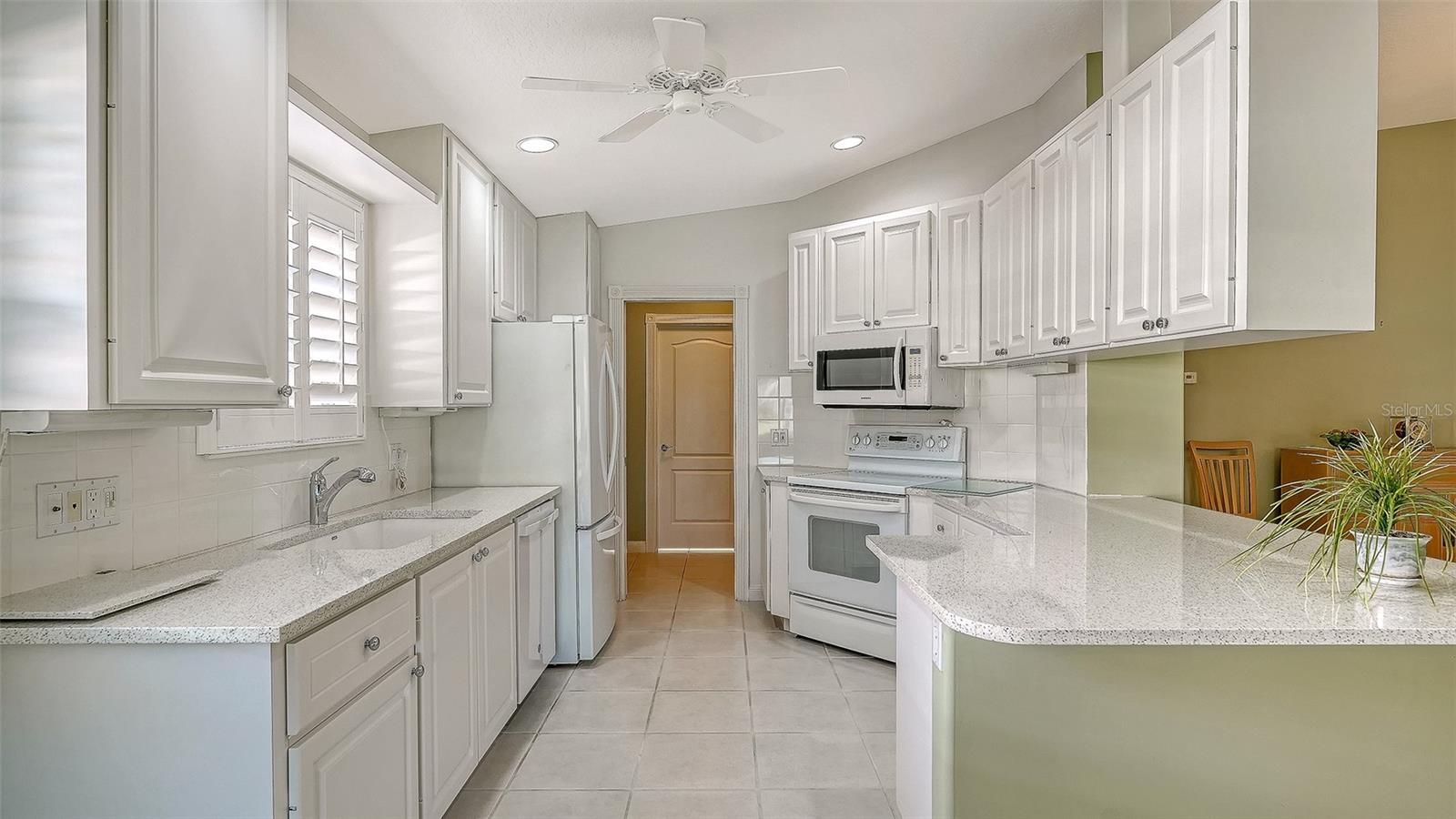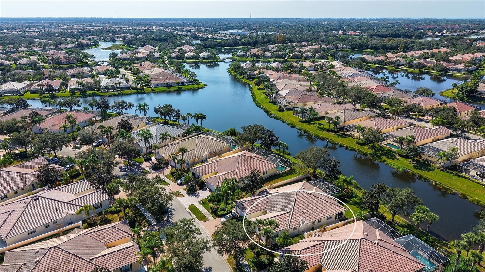 Under contract-accepting backup offers. Price Reduced to sell! Beautiful Villa with Water View with hurricane protection for all windows and doors, conveniently located on the south side of Village Walk with an easy drive or walk to the Village Walk Town Center, amenities and mailbox. Clean and neat, this 2/2/2 villa features Plantation shutters throughout, tile floor throughout (No Carpet), Quartz Counters in Kitchen and a WATERVIEW. Appliances & A/C have been updated. Enjoy this peaceful setting every day as you sip your morning coffee on the lanai and watch the beautiful birds and wildlife. Village Walk is a wonderful unique community, built hurricane safe with poured concrete walls and foundations. Every home in Village Walk is considered to be a Single Family Home, roofs are tied down to the structures, per the Florida Building Codes and considered to be above average. Inspectors, roofers and Insurance agents that are familiar with Village Walk will share this information with you. Village Walk is in Flood Zone X, an area that is determined to be outside the 1% and 0.2% chance of flooding. FEMA updated, 8/2/24. Flood Zone provided by Sarasota County Tax reports. Evacuation zone D, flood insurance is not mandatory, but flood insurance is available. Village Walk power lines are underground with a Sarasota Fire Department just down Honore. Seldom losing power. Amenities include 24 hour guarded gate, geo-thermal heated and cooled lap & lagoon pools, six Har-Tru Tennis courts, Pickle ball, Bocce' ball and Basketball courts, State of the Art fitness Center, Miles of walking and bike paths, over 500 acres of lakes and preserves. There are over 50 activity groups who meet daily, weekly, or monthly. Plus there is a full service Cafe with full service Bar, Gas Station, Barber shop/Hair Salon, and Gift Shop. A special NOTE is that Village Walk did not lose power during the hurricanes and there was No flooding. What a Fantastic Place to Call HOME!
