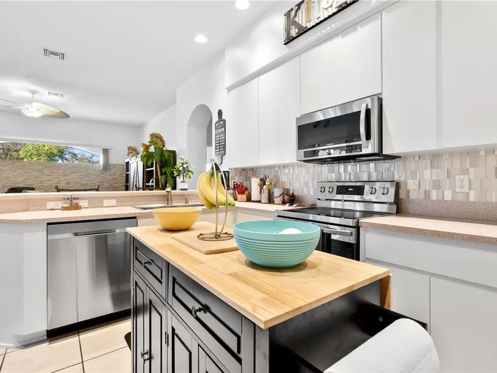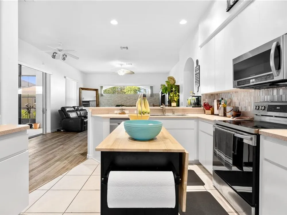- Cathedral Ceiling(s), Ceiling Fan(s), High Ceilings, Kitchen/Family Room Combo, Living/Dining Room, Solid-Wood Cabinets, Split Bedrooms, Thermostat, Vaulted Ceiling(s), Walk-In Closet(s), Wet Bar, Window Treatments