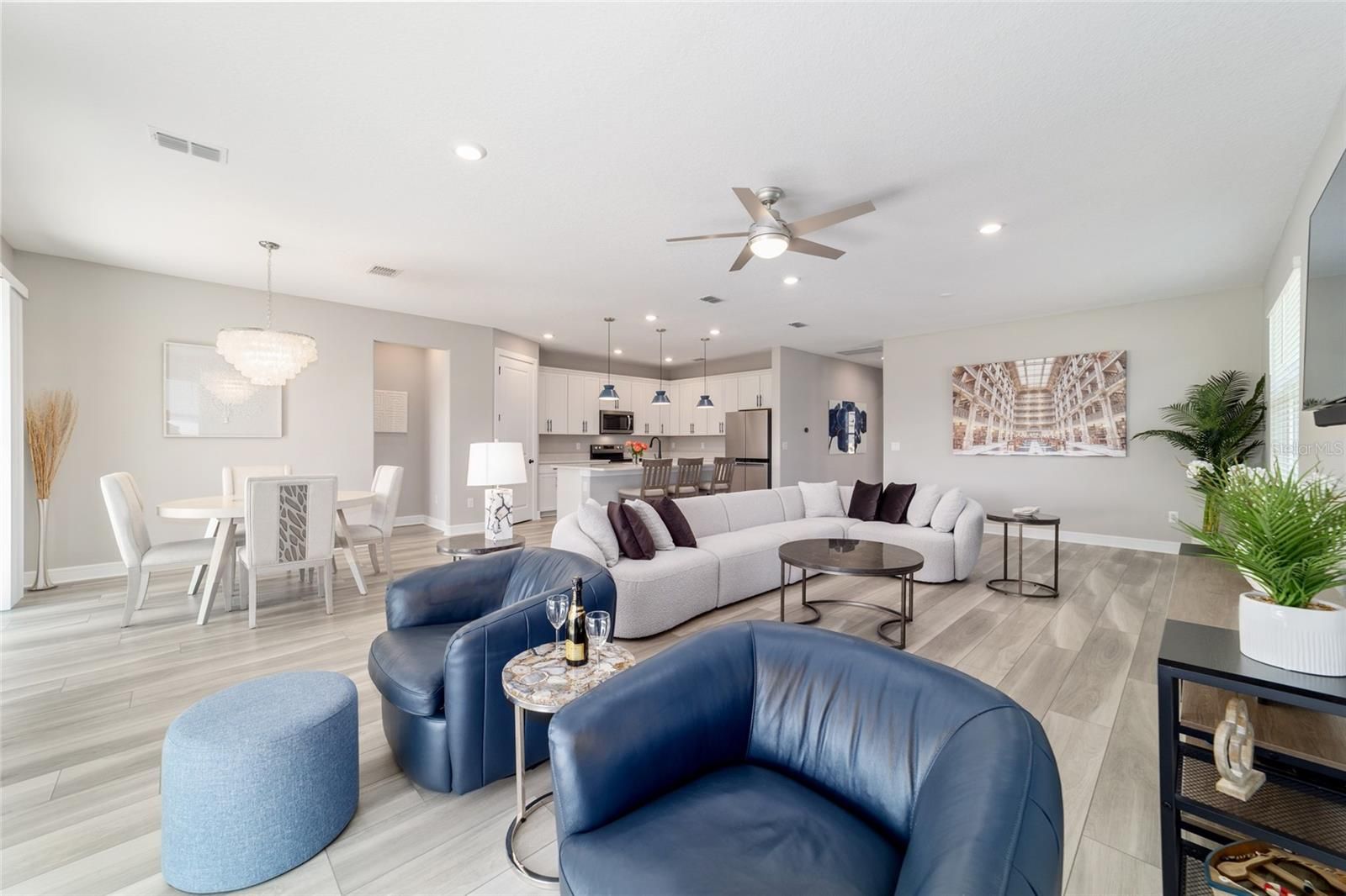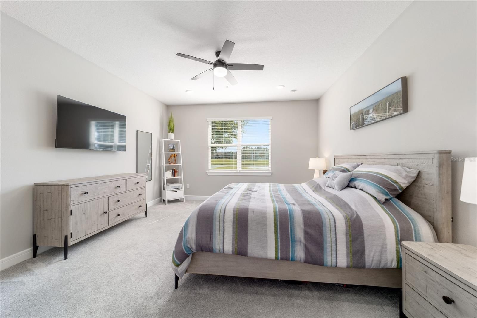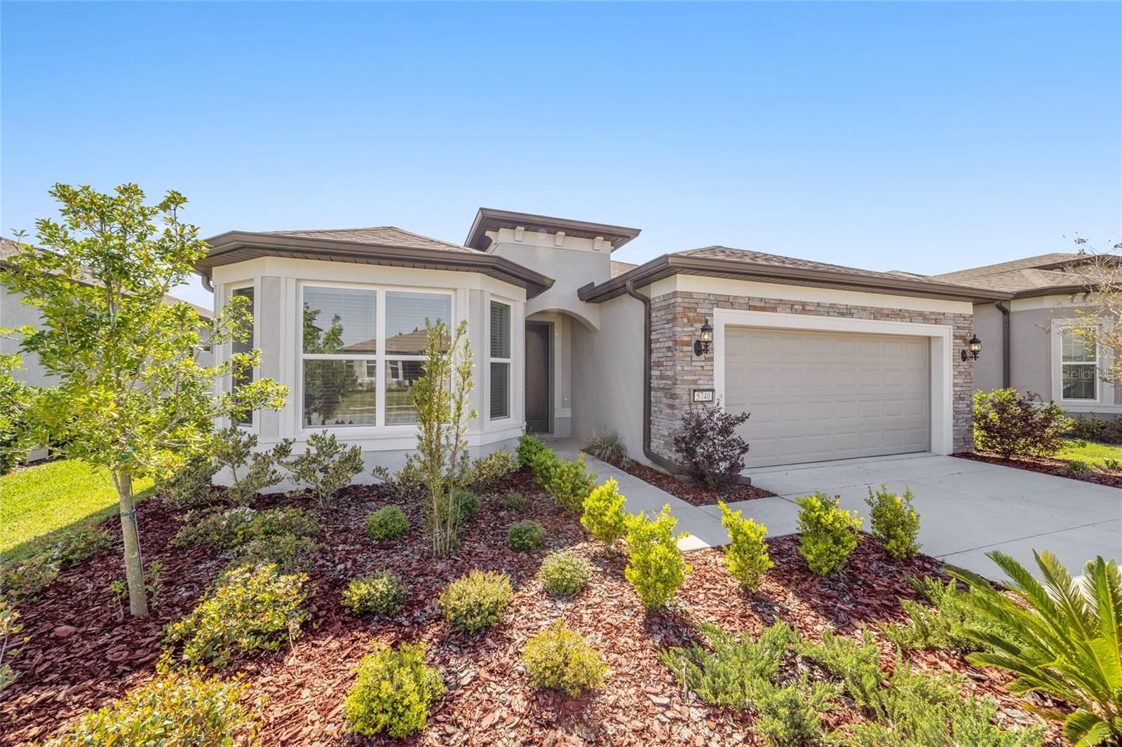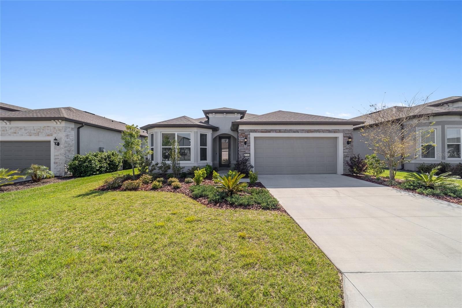 Welcome to elevated living in Ocala, Florida! This immaculate 'Mystique' model sits on a premium golf course lot overlooking the 11th hole with water views in the highly sought-after Bridlewood neighborhood of Del Webb Stone Creek. This lightly lived-in, meticulously maintained home offers 2 bedrooms, 2 bathrooms, and a versatile flex space, all designed with a clean, modern aesthetic and an open, functional layout. Offered FULLY FURNISHED, including the golf cart, this is a true move-in ready opportunity! The spacious great room is filled with natural light, highlighted by oversized sliding glass doors that expand the main living area and create seamless indoor-outdoor flow while showcasing the golf course and water views. The kitchen is thoughtfully designed with quartz countertops, a large island with seating, stainless steel appliances, a large single-basin sink, and a walk-in pantry, all overlooking the main living and dining areas, ideal for both everyday living and entertaining. The primary suite offers a comfortable retreat with continued golf course views and a well-appointed en suite featuring double vanities, quartz countertops, a walk-in shower with bench, a private water closet, and a walk-in closet with built-in organization. The secondary bedroom is perfect for guests, complete with a bay window, Murphy bed, and sitting area. The separate flex room with French doors provides the perfect space for a home office, den, or hobby room. Additional interior features include luxury vinyl flooring throughout, a spacious laundry room with cabinetry, quartz countertops, utility sink, and washer and dryer, along with a water softener system and a retractable front screen door. Enjoy outdoor living with a covered patio, extended seating area, and a retractable remote-controlled awning with lighting—perfect for relaxing while taking in the peaceful golf course and water views. The exterior also features established landscaping, lush lawn, irrigation system, and an oversized two-car garage with epoxy flooring and dedicated golf cart space. Set within Del Webb Stone Creek, one of Ocala’s most sought-after active 55+ communities, Residents enjoy an 18-hole championship golf course, multiple recreation centers, pools, fitness facilities, social clubs, and more, all just minutes from hospitals, restaurants, Publix, and the World Equestrian Center. This home offers comfort, style, convenience, and a true sense of the Central Florida lifestyle. Schedule your private showing today!