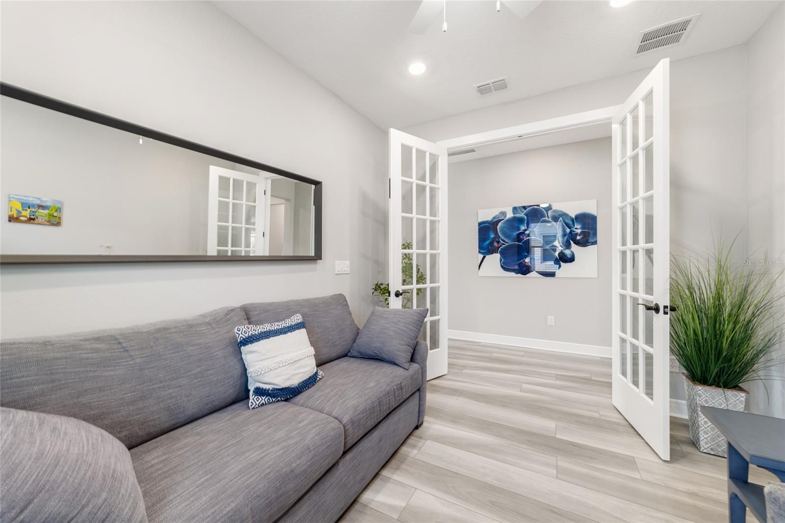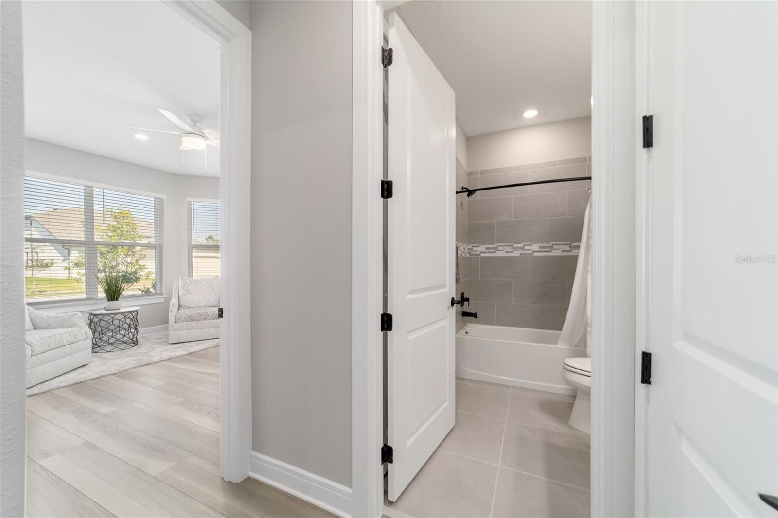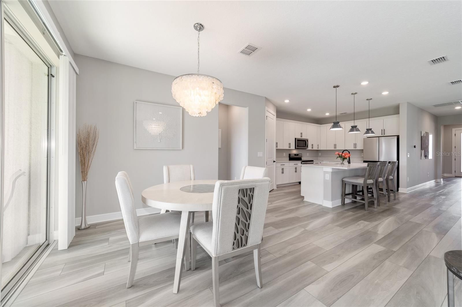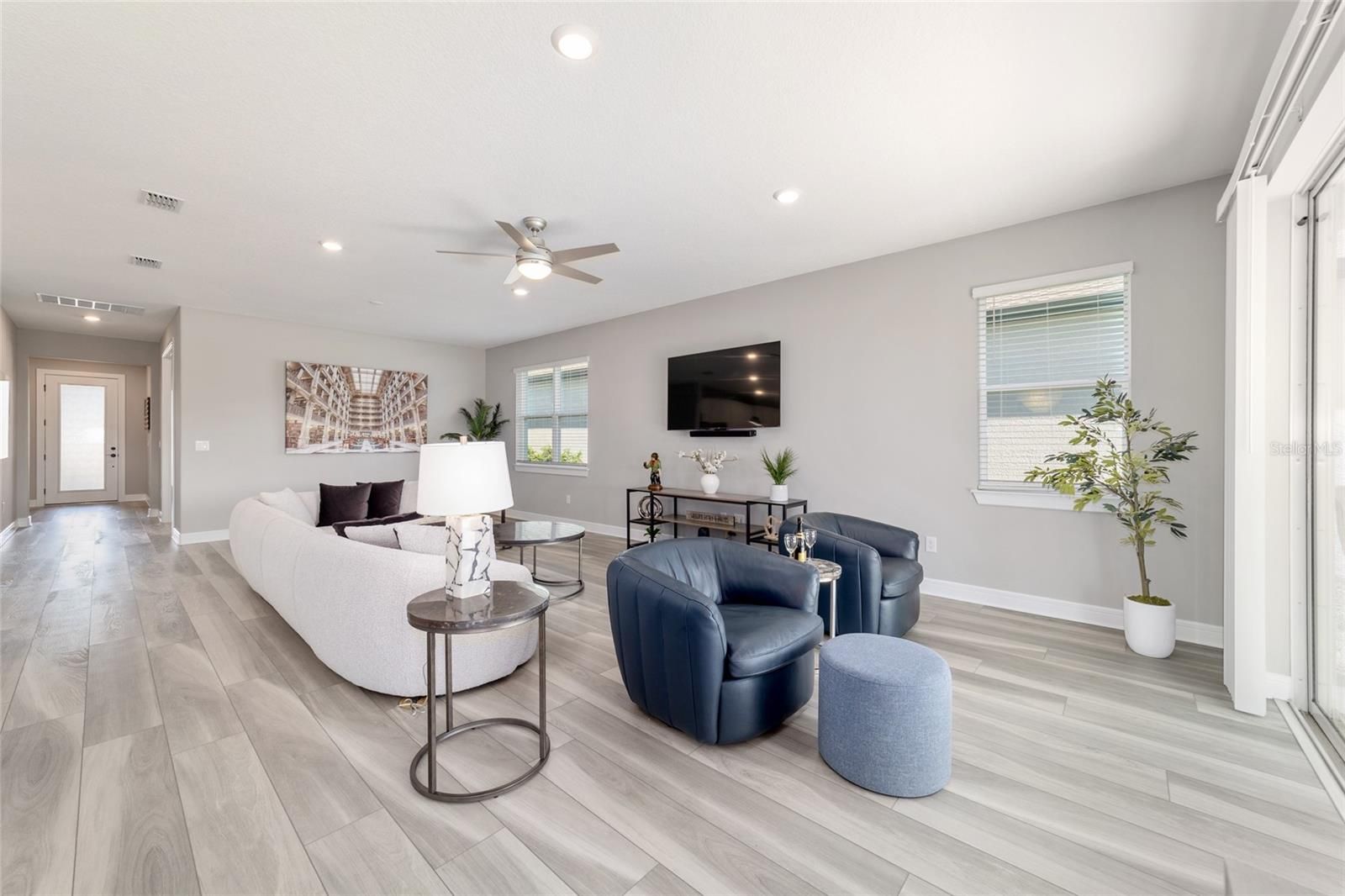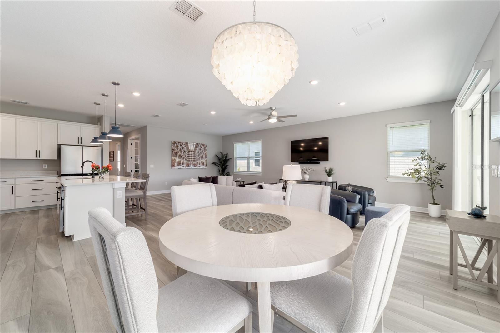 Welcome to elevated living in Ocala, Florida! This immaculate 'Mystique' model sits on a premium golf course lot overlooking the 11th hole with water views in the highly sought-after Bridlewood neighborhood of Del Webb Stone Creek. This lightly lived-in, meticulously maintained home offers 2 bedrooms, 2 bathrooms, and a versatile flex space, all designed with a clean, modern aesthetic and an open, functional layout. Offered FULLY FURNISHED, including the golf cart, this is a true move-in ready opportunity! The spacious great room is filled with natural light, highlighted by oversized sliding glass doors that expand the main living area and create seamless indoor-outdoor flow while showcasing the golf course and water views. The kitchen is thoughtfully designed with quartz countertops, a large island with seating, stainless steel appliances, a large single-basin sink, and a walk-in pantry, all overlooking the main living and dining areas, ideal for both everyday living and entertaining. The primary suite offers a comfortable retreat with continued golf course views and a well-appointed en suite featuring double vanities, quartz countertops, a walk-in shower with bench, a private water closet, and a walk-in closet with built-in organization. The secondary bedroom is perfect for guests, complete with a bay window, Murphy bed, and sitting area. The separate flex room with French doors provides the perfect space for a home office, den, or hobby room. Additional interior features include luxury vinyl flooring throughout, a spacious laundry room with cabinetry, quartz countertops, utility sink, and washer and dryer, along with a water softener system and a retractable front screen door. Enjoy outdoor living with a covered patio, extended seating area, and a retractable remote-controlled awning with lighting—perfect for relaxing while taking in the peaceful golf course and water views. The exterior also features established landscaping, lush lawn, irrigation system, and an oversized two-car garage with epoxy flooring and dedicated golf cart space. Set within Del Webb Stone Creek, one of Ocala’s most sought-after active 55+ communities, Residents enjoy an 18-hole championship golf course, multiple recreation centers, pools, fitness facilities, social clubs, and more, all just minutes from hospitals, restaurants, Publix, and the World Equestrian Center. This home offers comfort, style, convenience, and a true sense of the Central Florida lifestyle. Schedule your private showing today!