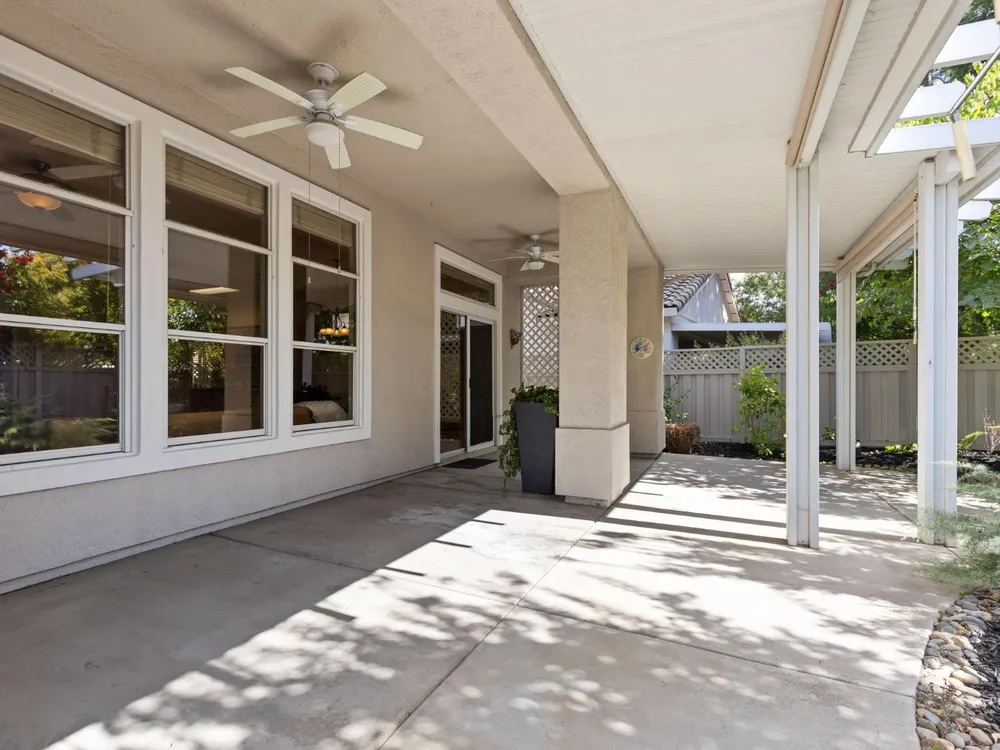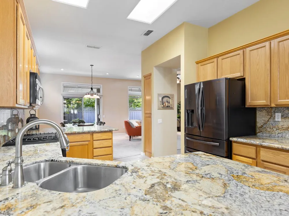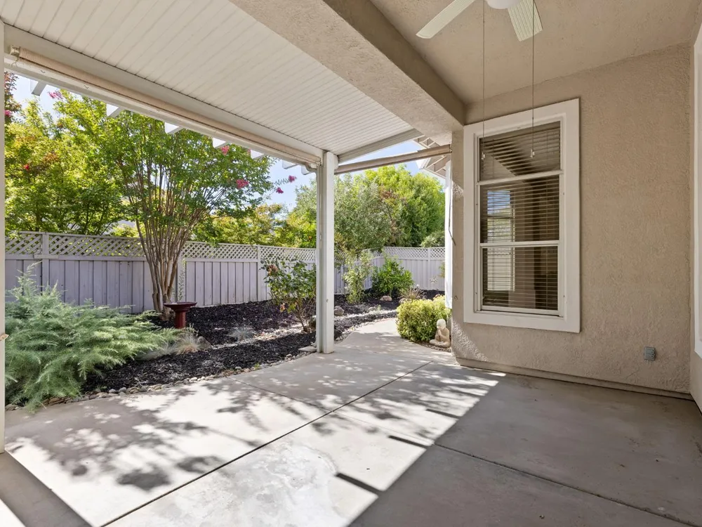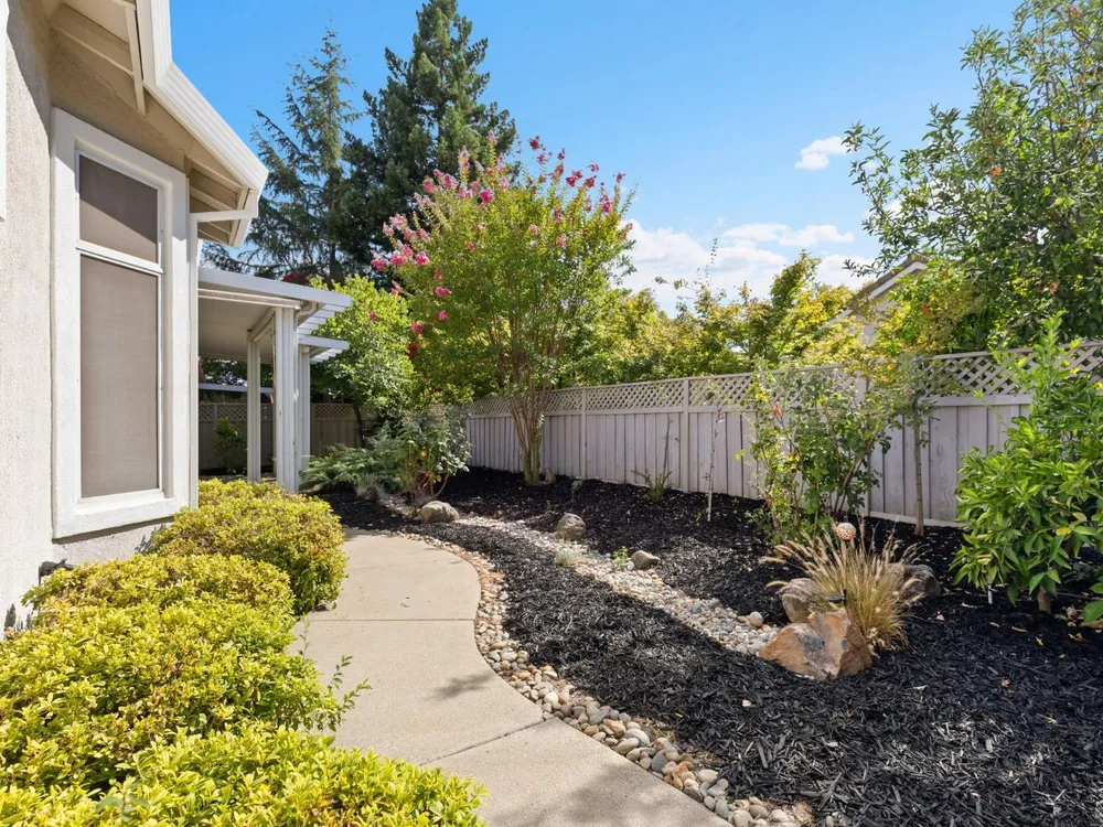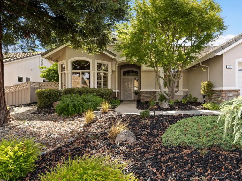 Welcome to 5741 Sandlewood Way in Sun City Roseville, a premier 55+ community with resort-style amenities including golf, pools, tennis, pickleball, The Timbers restaurant, and more! This popular Yosemite model offers 3 spacious bedrooms, 2 bathrooms, and an open layout. The kitchen features granite countertops, a large breakfast nook, and a formal dining area that flows into the great room. The living space opens to a covered backyard patio surrounded by mature trees, providing shade and privacy. The beautifully landscaped yard is low-maintenance perfect for easy living and year-round enjoyment. The primary suite includes double sinks, a large walk-in shower, and closet. The laundry room offers ample cabinetry and a utility sink. The garage is equipped with built-in cabinets and hanging metal storage racks for extra storage. Don't miss your chance to enjoy this beautiful home and the vibrant Sun City lifestyle!