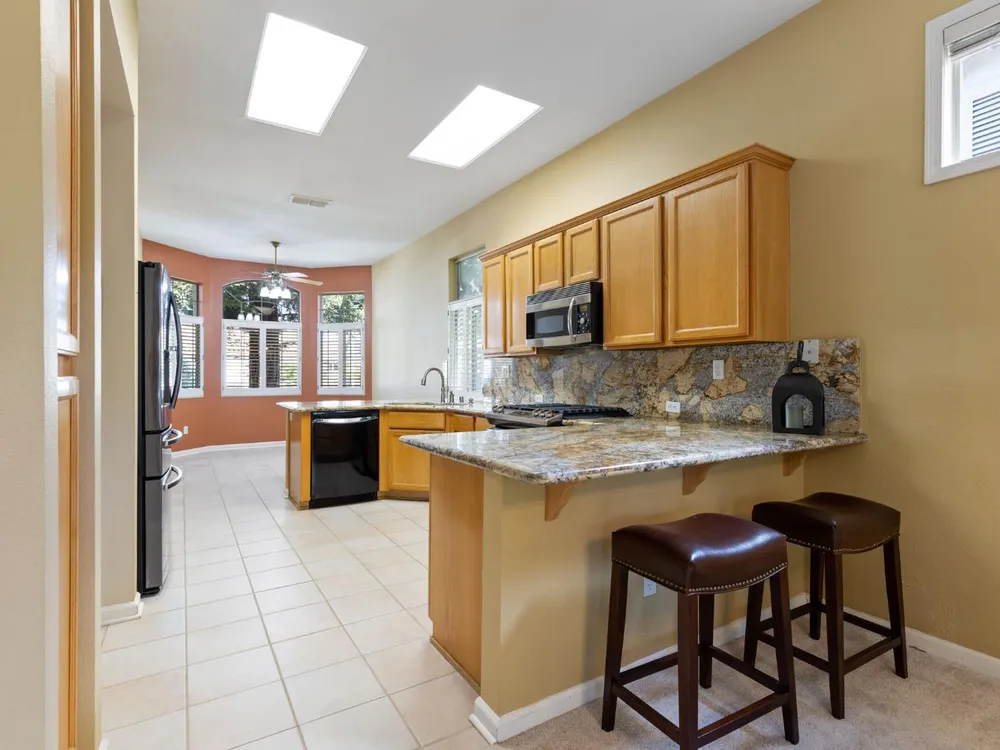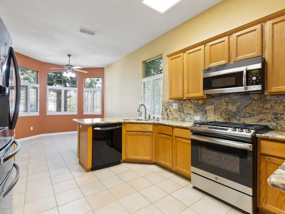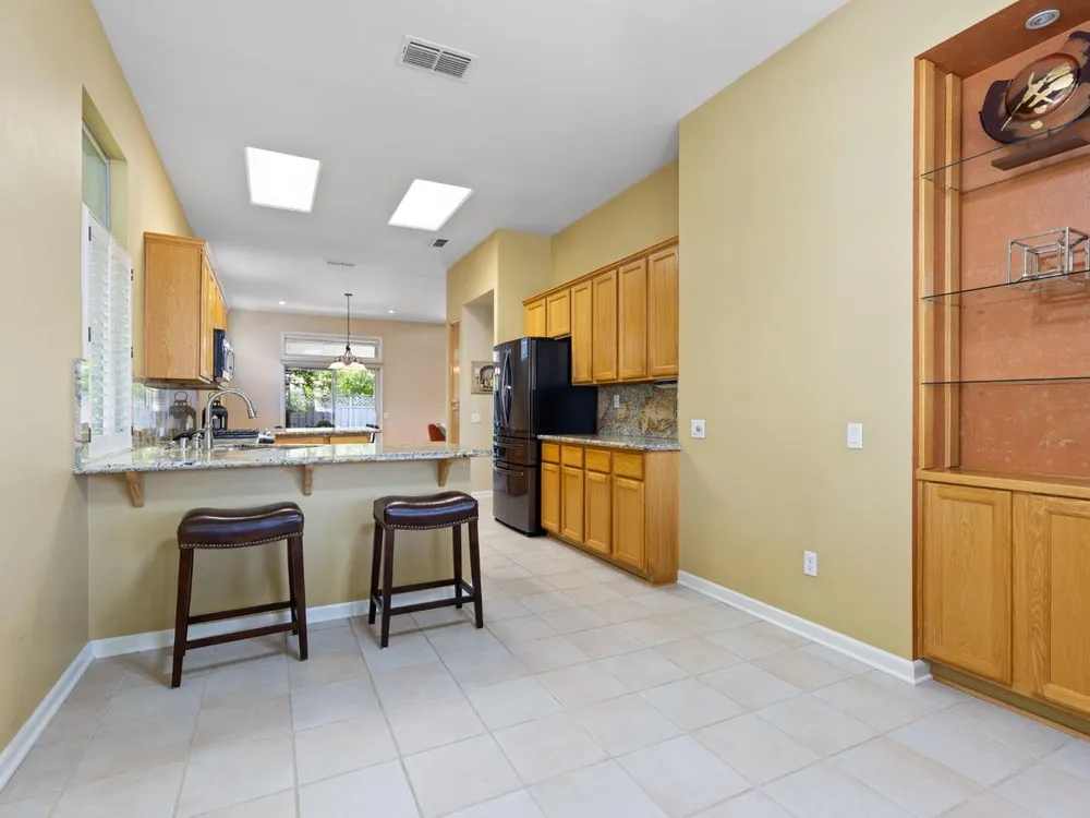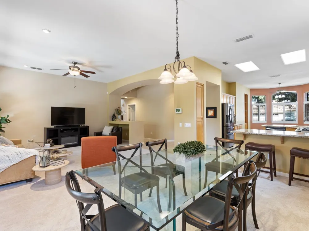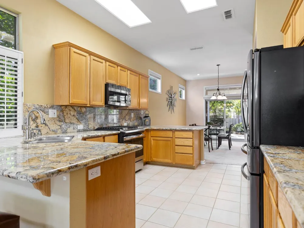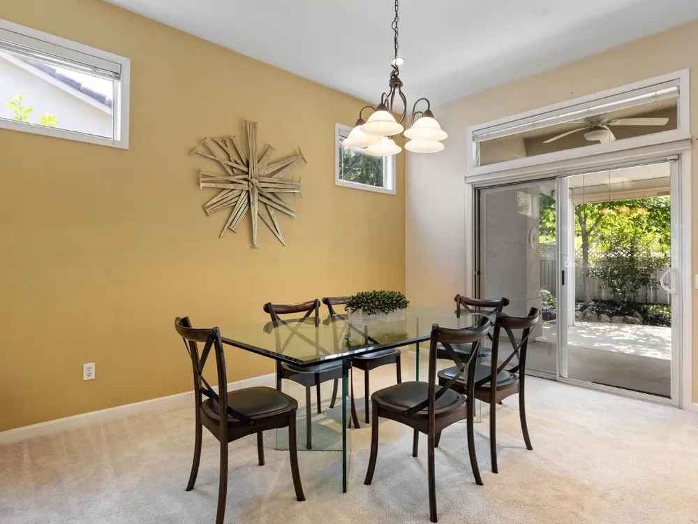 Welcome to 5741 Sandlewood Way in Sun City Roseville, a premier 55+ community with resort-style amenities including golf, pools, tennis, pickleball, The Timbers restaurant, and more! This popular Yosemite model offers 3 spacious bedrooms, 2 bathrooms, and an open layout. The kitchen features granite countertops, a large breakfast nook, and a formal dining area that flows into the great room. The living space opens to a covered backyard patio surrounded by mature trees, providing shade and privacy. The beautifully landscaped yard is low-maintenance perfect for easy living and year-round enjoyment. The primary suite includes double sinks, a large walk-in shower, and closet. The laundry room offers ample cabinetry and a utility sink. The garage is equipped with built-in cabinets and hanging metal storage racks for extra storage. Don't miss your chance to enjoy this beautiful home and the vibrant Sun City lifestyle!