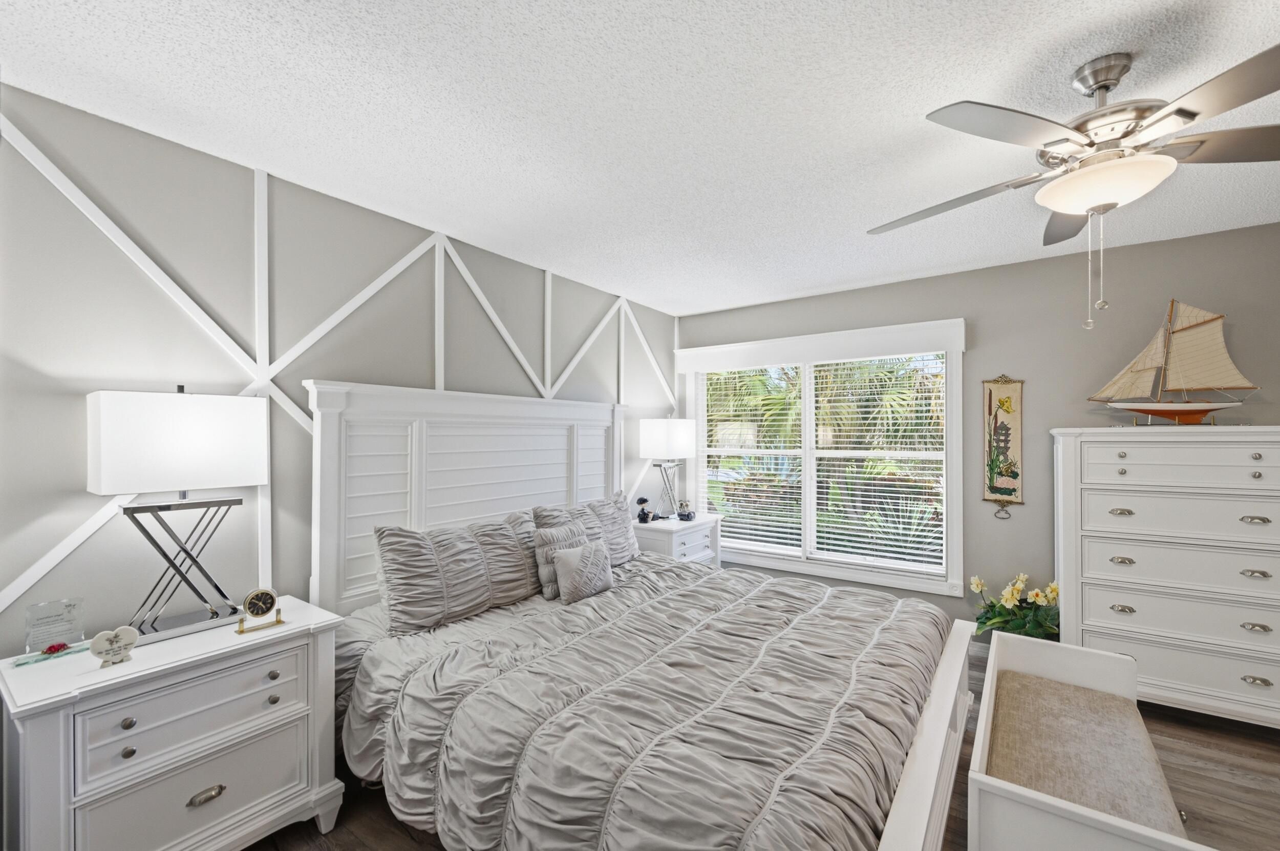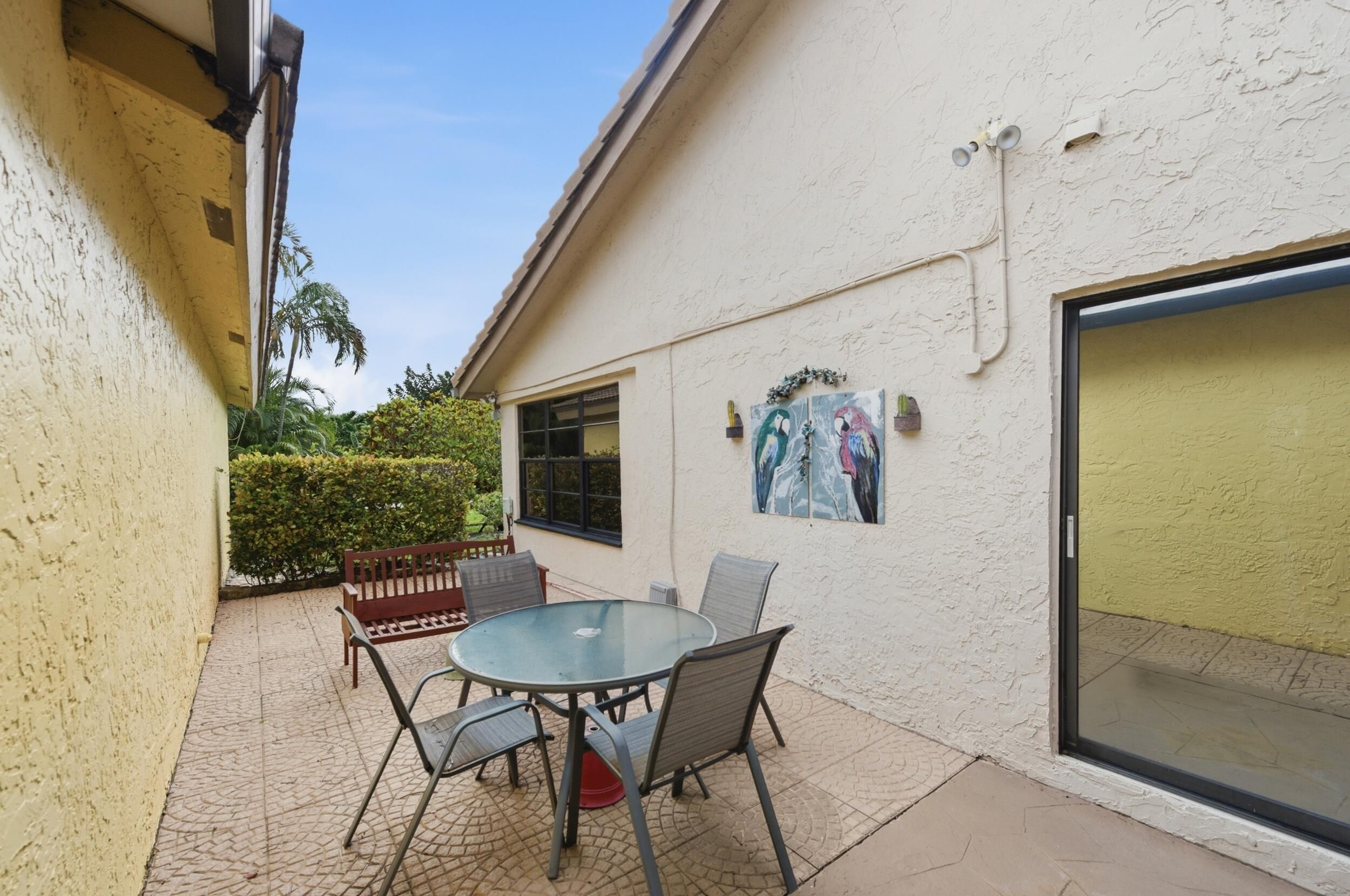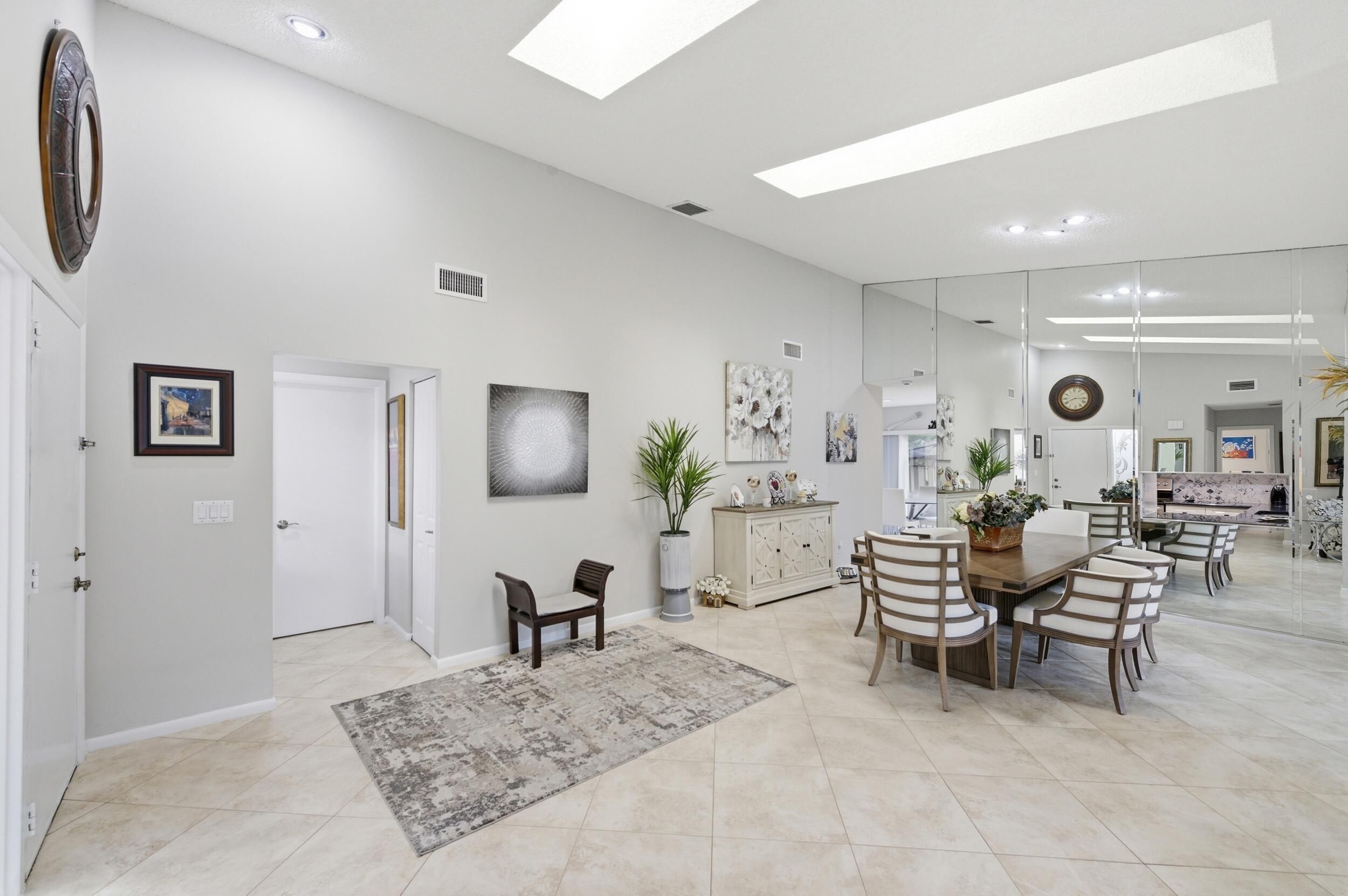 Nestled in the sought-after Villas of Green Glen within the esteemed 55+ Indian Spring Country Club, this impeccably cared-for home blends charm, brightness, and versatility—with no required club membership. Soaring ceilings and skylights invite in abundant natural light, highlighting the spacious, open design. Tile flooring spans the main living spaces, while both bedrooms feature durable vinyl floors. The refreshed kitchen showcases a marble backsplash, integrated wine storage, and easy access to a secluded patio—ideal for outdoor dining or casual gatherings. The expansive primary suite offers three closets and a stylishly renovated en-suite bath. A comfortable guest bedroom is served by an updated full bathroom. Recent enhancements include a newer water heater, and upgraded electrical panel with generator hookup. Positioned on a generous corner lot within a peaceful cul-de-sac, the home is just steps from the private community pool. Convenient to highways, beaches, shopping, and dining, with optional club amenities including golf, tennis, pickleball, fitness center, and more—this is easy Florida living at its best.