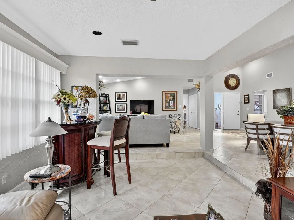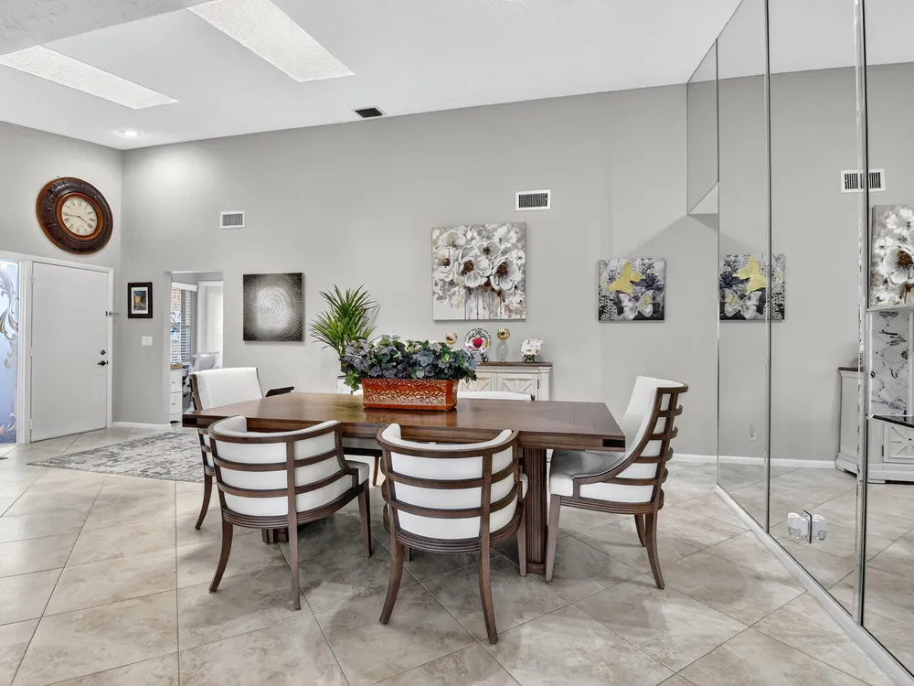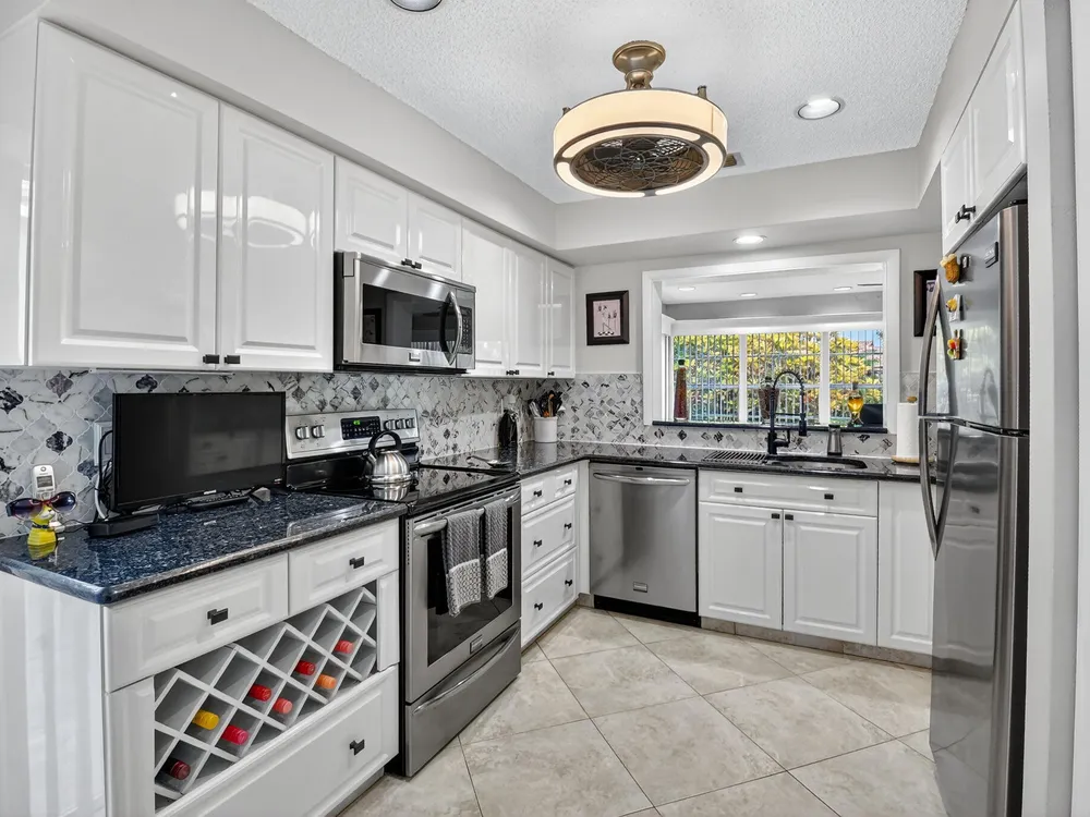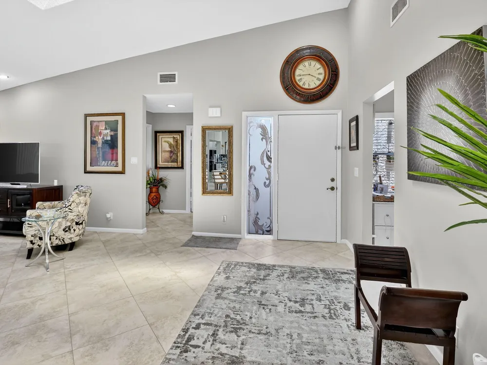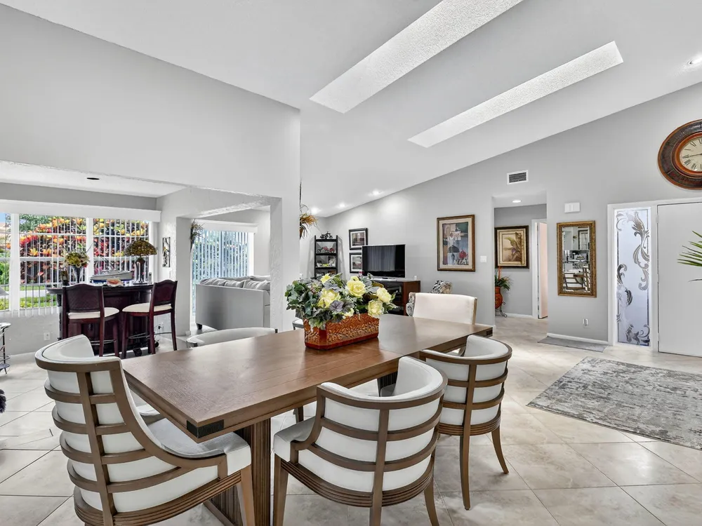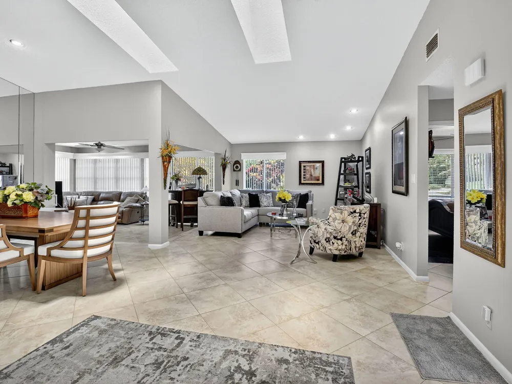 Welcome to this hidden gem located in the highly desirable Villas of Green Glen within the 55+ prestigious Indian Spring Country Club with no mandatory membership. This charming 2 bed 2 bath home has a vaulted ceiling with sky lights giving and abundance of light , an almost all open floor plan with tile throughout the main house and laminated floors in the bedrooms. This home has been beautifully maintained has an updated kitchen with marble backsplash, built in wine rack and has sliding doors to a private patio for grilling and unwinding adding extra living space.The master bedroom boast a walk in closet plus 2 additional closets