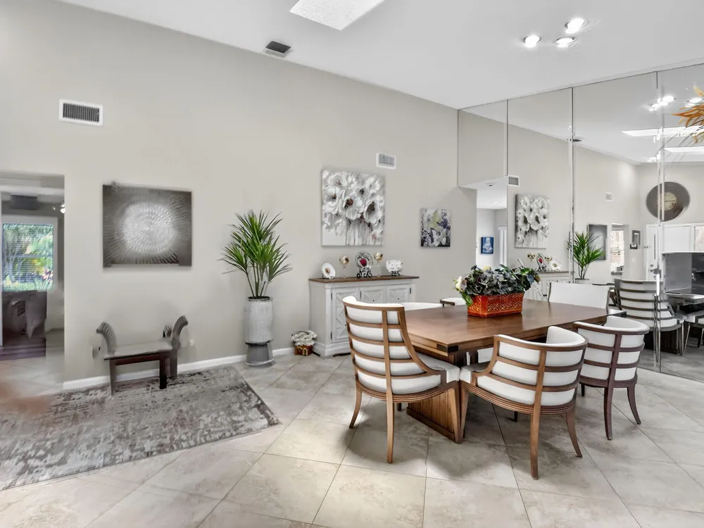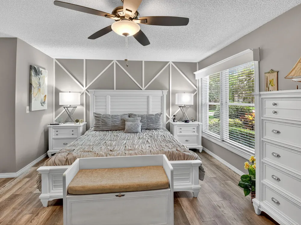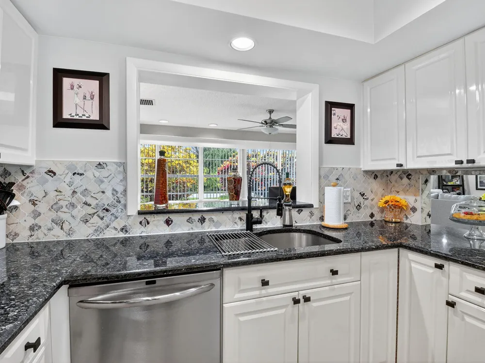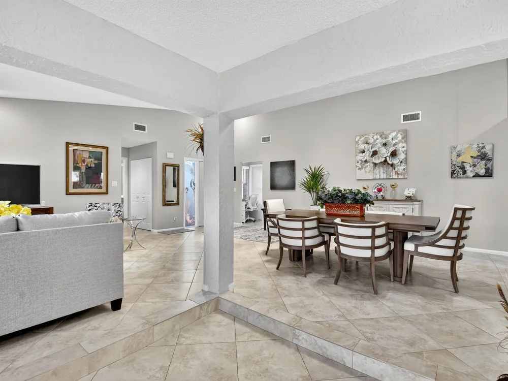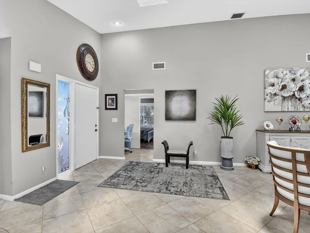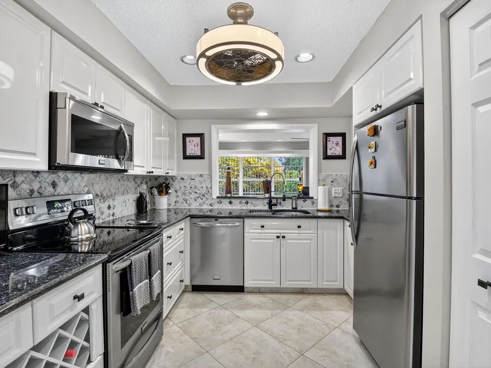 Welcome to this hidden gem located in the highly desirable Villas of Green Glen within the 55+ prestigious Indian Spring Country Club with no mandatory membership. This charming 2 bed 2 bath home has a vaulted ceiling with sky lights giving and abundance of light , an almost all open floor plan with tile throughout the main house and laminated floors in the bedrooms. This home has been beautifully maintained has an updated kitchen with marble backsplash, built in wine rack and has sliding doors to a private patio for grilling and unwinding adding extra living space.The master bedroom boast a walk in closet plus 2 additional closets