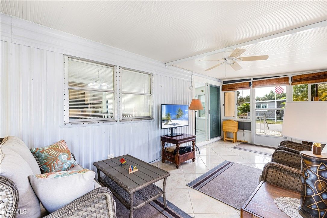 EXCEPTIONAL VALUE AT A NEW PRICE – Experience the Florida lifestyle in this well-maintained corner-lot home located in the active 55+ gated community of Old Bridge Village. The home offers comfortable living and the convenience of being just a short walk from the expansive new pool and hot tub at the Clubhouse. The community provides an exceptional lifestyle with a Gulf-access marina, boat slip rentals, and a full calendar of social activities. Additional amenities include a workout center, pickleball courts, bocce, shuffleboard, and tennis—bringing resort-style living right to your doorstep. Residents can also enjoy nine acres of natural beauty at the Palm Point waterfront area, featuring a fishing pier, picnic tables, tiki huts, and spectacular views of the river and downtown Fort Myers. This home features two bedrooms, two full bathrooms, and a spacious, light-filled living and dining area. The layout is both functional and inviting, with plenty of storage throughout. The home is being sold turnkey. Recent improvements include a newer complete metal roof, new subfloors and vinyl flooring, updated cabinets, windows, slider, and an updated primary bath, creating a truly move-in-ready interior. An expanded Florida room offers versatile additional living space, ideal for relaxing or entertaining year-round. Schedule your showing today and find your "Peace" of Paradise!