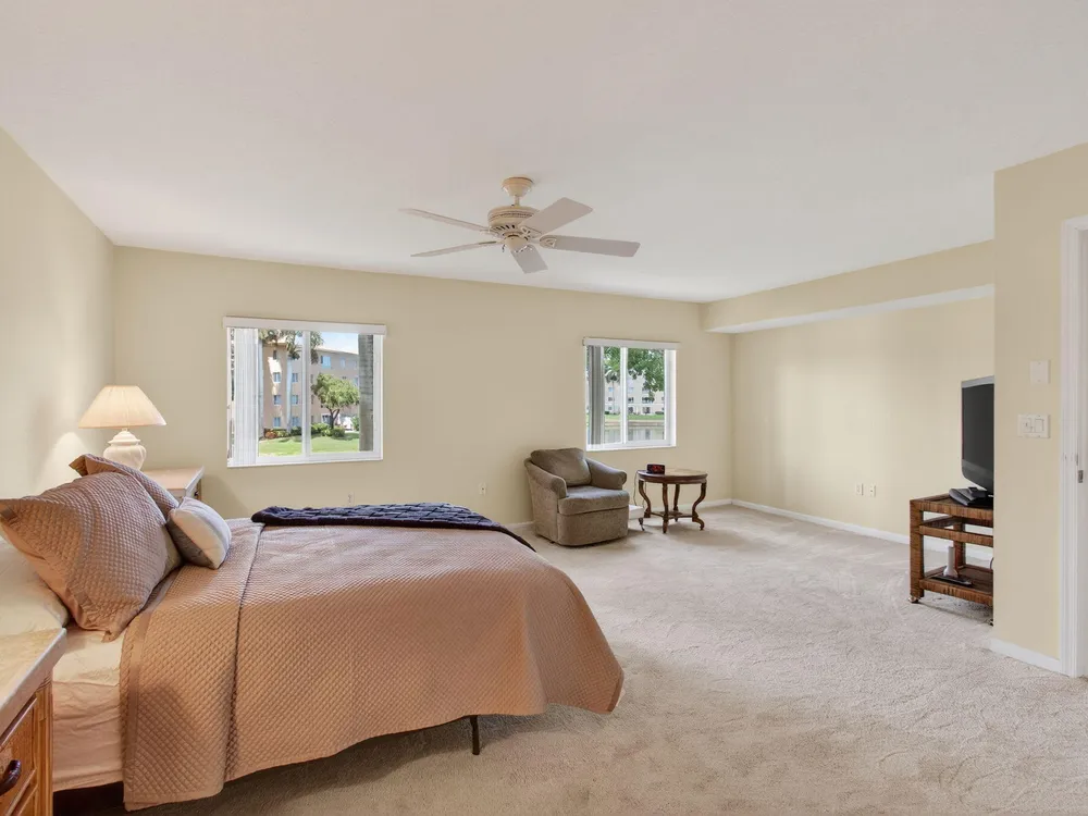 Welcome to Coral Cove living at its finest! This spacious second-floor unit, set in an elevator building, offers stunning panoramic lake views you can enjoy from the living room -- the perfect spot to unwind and take in the beauty around you. Inside, the very large primary bedroom features a comfortable sitting area and an abundance of closet space, ensuring all your storage needs are met. A full laundry room with deep sink, plus a large storage closet, add to the home's exceptional convenience.Step outside and enjoy resort-style amenities, including a sparkling community pool, tennis and pickleball courts just moments away. The vibrant clubhouse offers a cafe, theatre, indoor and outdoor pools, library, and countless activities to keep you as social and active as you'd like.