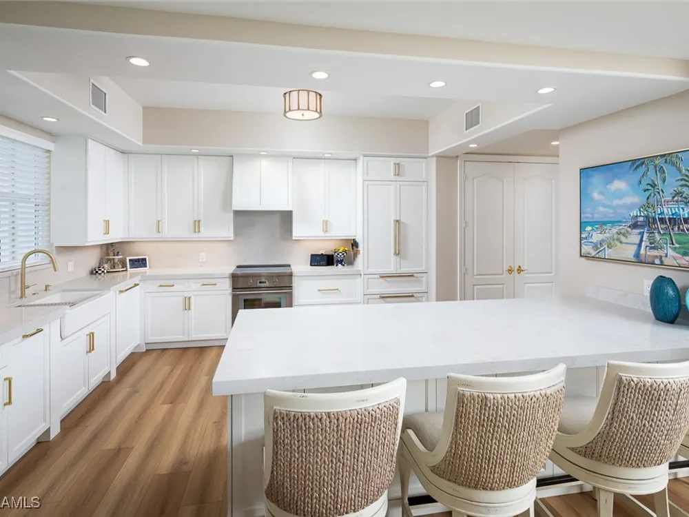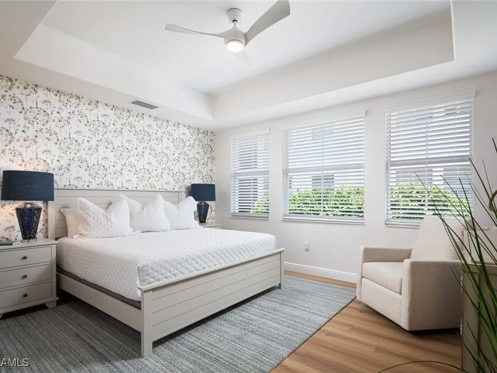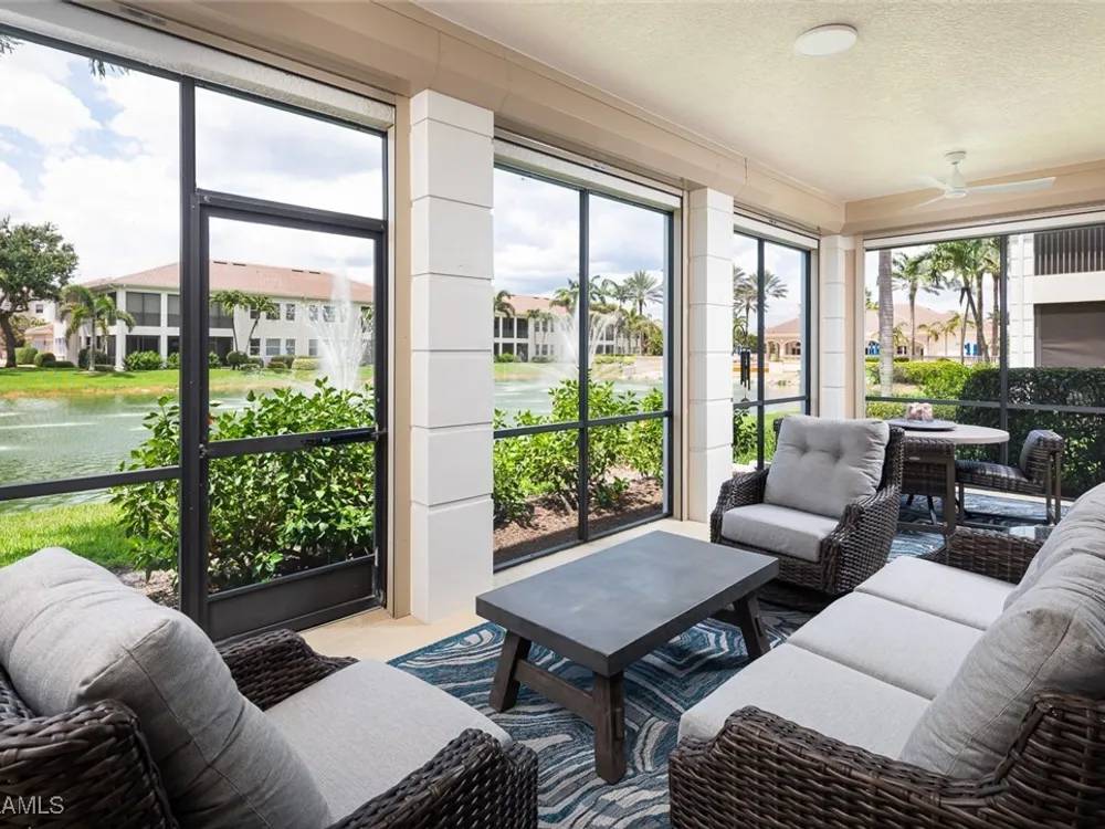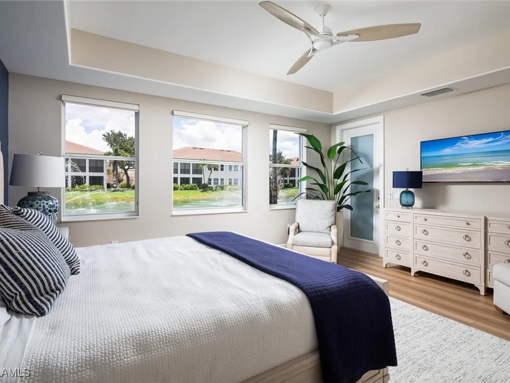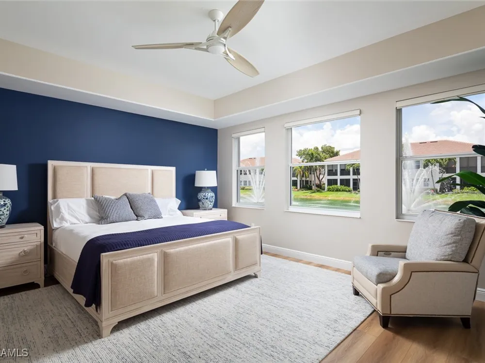 Spacious refurbished 1st floor condo in Avellino Isles inside the manned gates of the beautiful Vineyards Golf & Country Club. This beautifully renovated home offers breathtaking water views and high-end features throughout the redesigned floor plan. Three large bedrooms each with updated ensuite baths and walk-in closets plus a half bath for guests off the main hallway. Gorgeous kitchen updates include all new Thermador appliances, quartz countertops and backsplash, Kohler cast iron farmers sink w/ Rohl fixture and enlarged pantry. Primary bath features a double vanity, dedicated make-up counter, large soaking tub, walk-in shower with Newport News chrome fixtures, all accented with an Italian polished stone wall and two linen closets. Primary bedroom offers a large walk-in closet designed by California Closets. Office has two work areas with ample file cabinets and a queen size Murphy bed for the occasional extra guest. Additionally, new luxury vinyl flooring throughout, plus every room has all new light fixtures, fans, and Hunter Douglas Blinds. Avellino Isles offers an updated clubhouse with a fitness center, card room, infinity pool, spa, and large grilling area. New roofs were installed in 2024-2025, all buildings have been freshly painted and new exterior light fixtures installed in 2025. This is a rare opportunity to enjoy the best of luxury living in the Vineyards' convenient location. Memberships are available but not required, offering flexibility to suit your lifestyle. At time of listing the Vineyards has immediate golf membership available.
