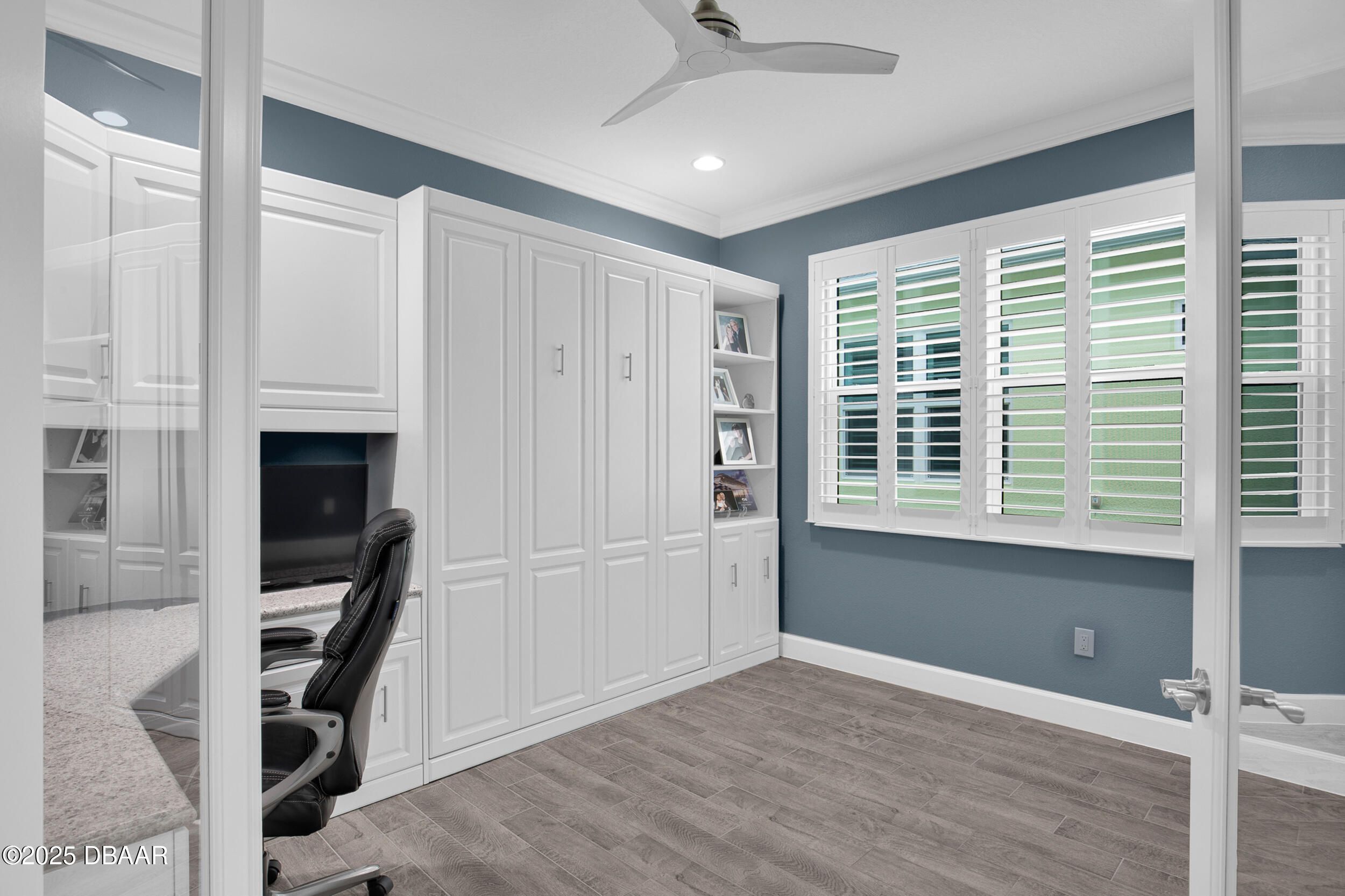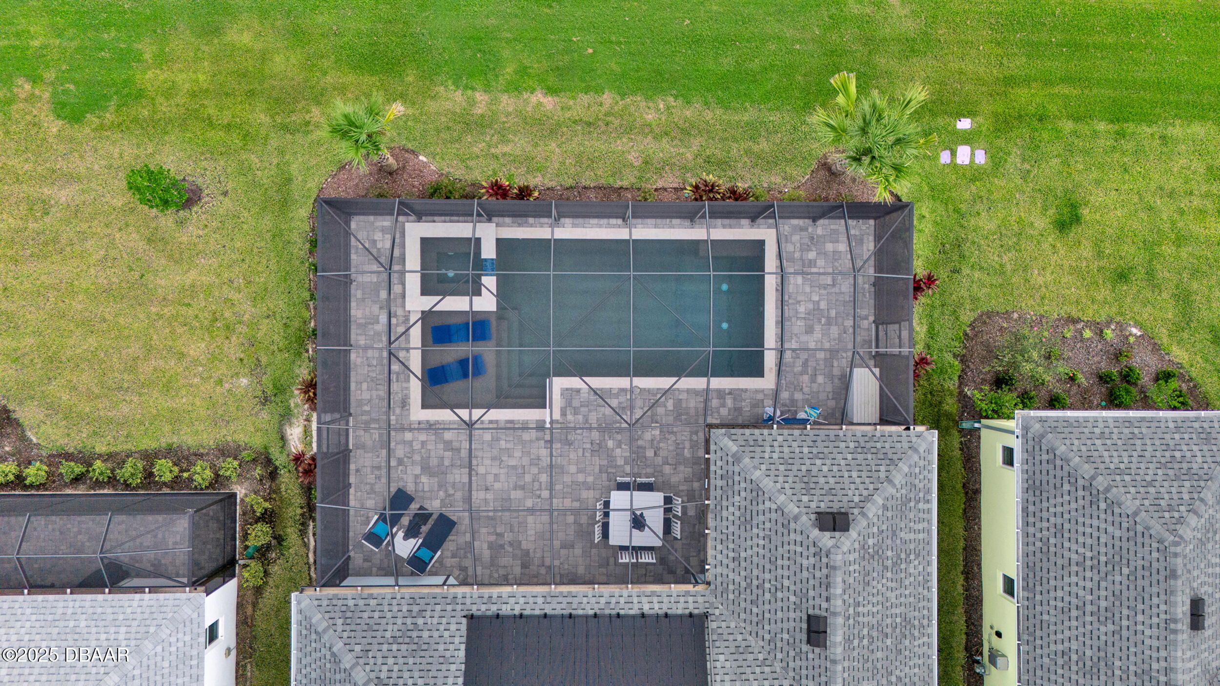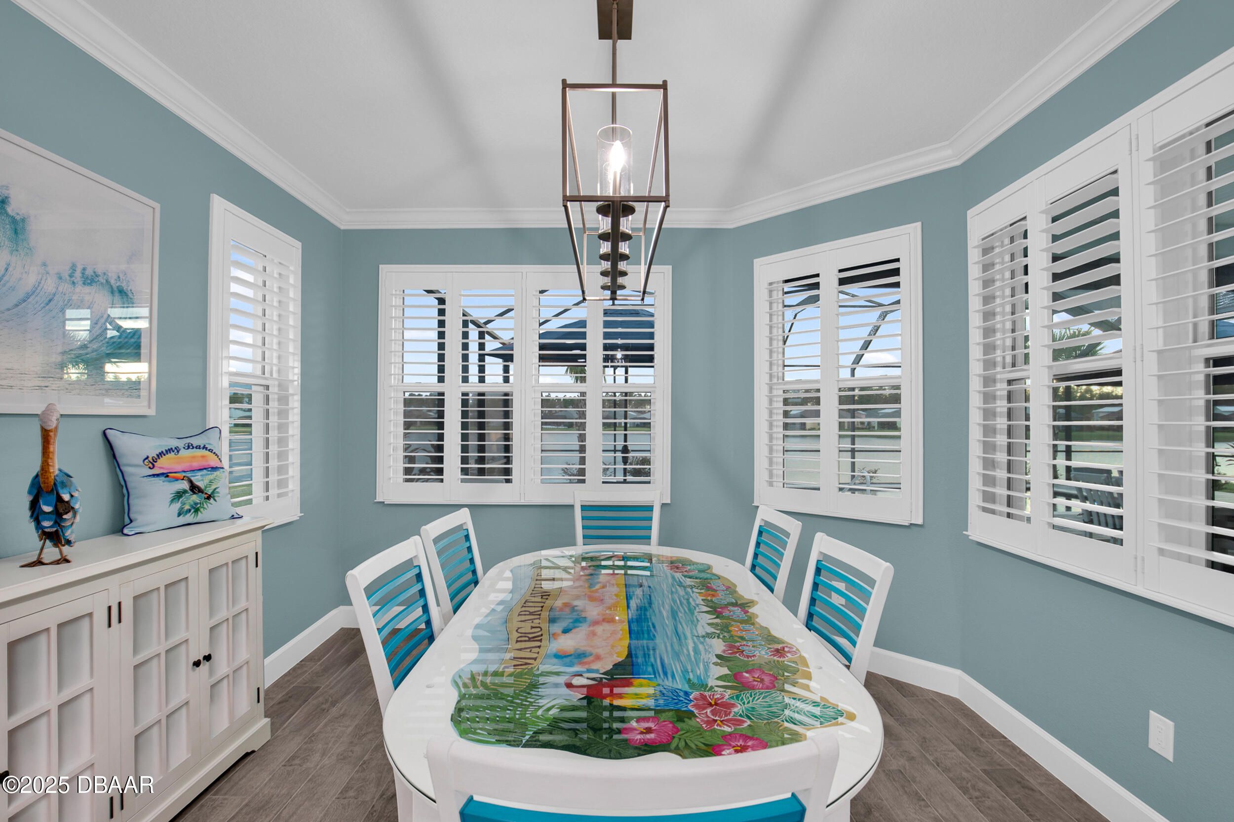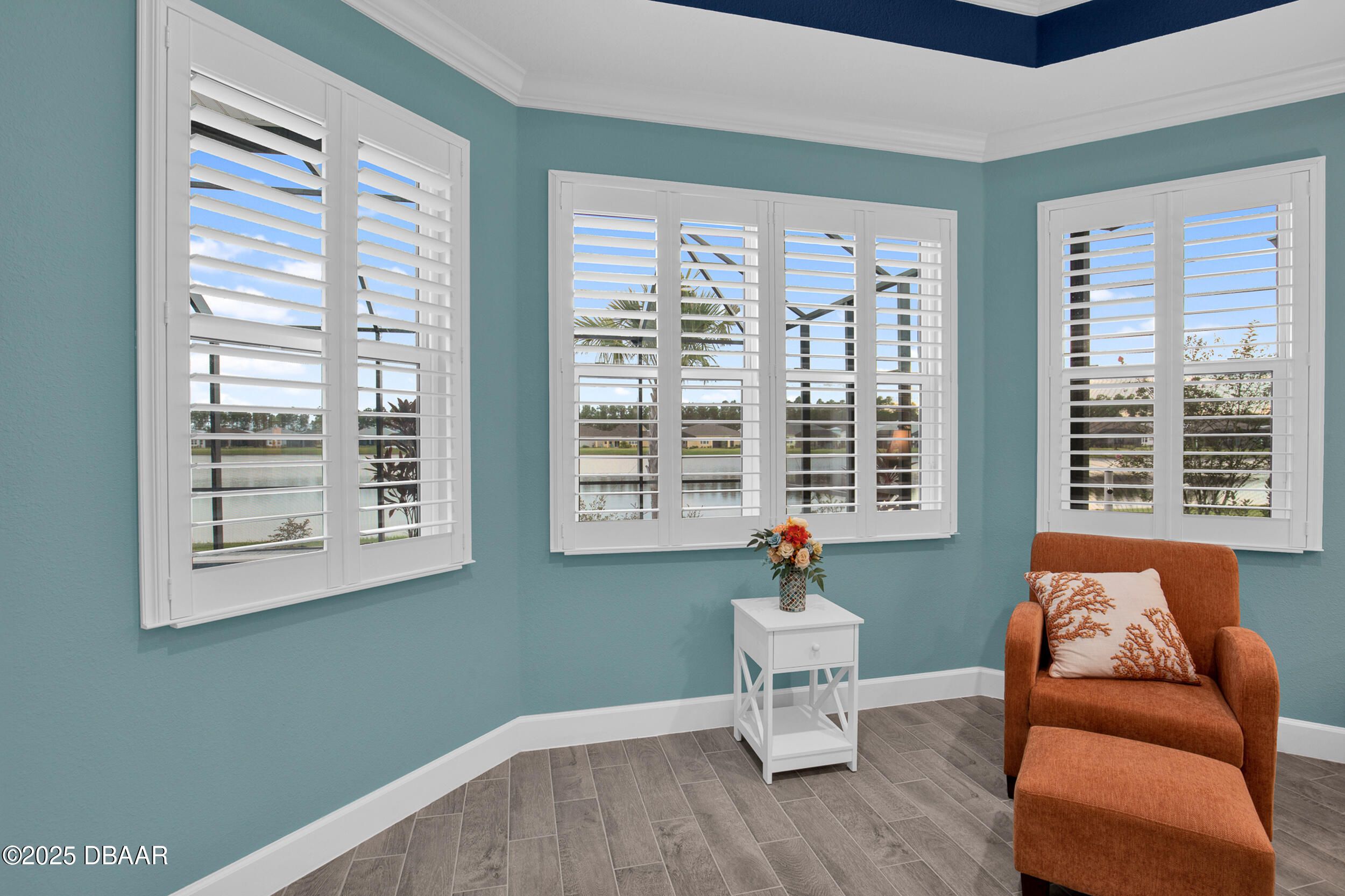 Perfection at its finest with this upgraded Aruba as the home wraps you in coastal elegance. SPECTACULAR POND VIEW. Lounge by the sparkling pool w/ sun shelf & spa, warmed by solar & gas heat & framed by lush palms with premium paver deck. Inside, tropical hues, plank tile floors, plantation shutters & soaring 8' doors create a breezy, elevated vibe. The Great Room invites connection w/ its coffered ceiling, accent paint custom media wall w/ stone fireplace. Cook, gather & celebrate in a kitchen designed for joy. Granite counters, gas cooktop, double ovens, & whimsical Margarita glass pendants adorn the island. Butler's pantry. Upgraded fixtures throughout. Perfect den/office/guest room includes glass french doors, Murphy bed & built in desk. Retreat to a serene primary suite with tray ceiling, accent wall, built-in closets & spa like ensuite bath. 3-car garage w/ epoxy flooring. HURRICANE SHADES FOR LANAI & FRONT DOOR. Luxury meets laid-back living in Vibrant Latitude Margaritaville