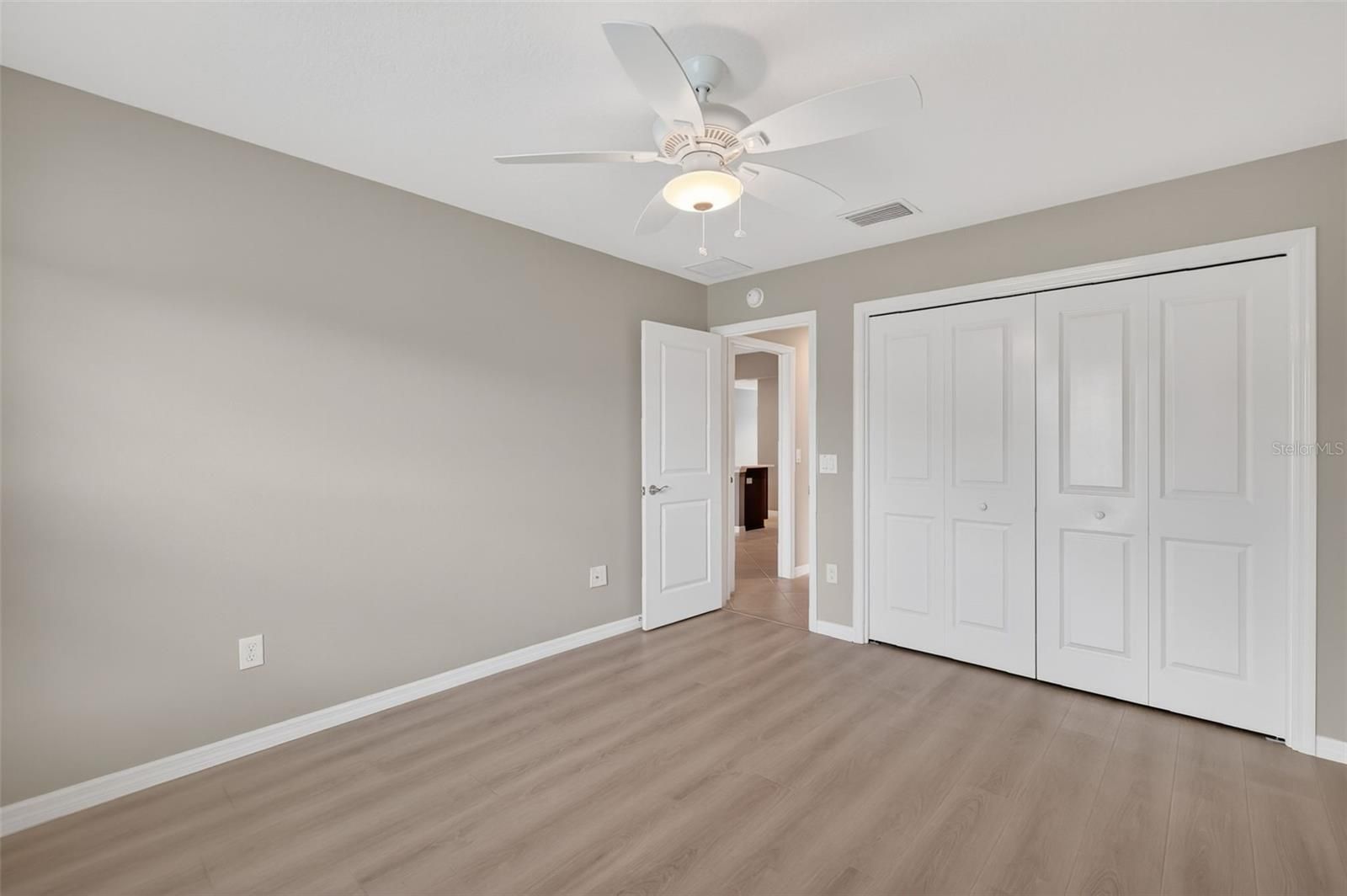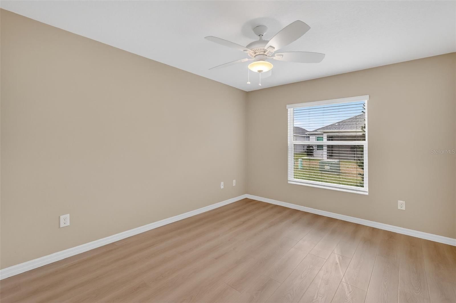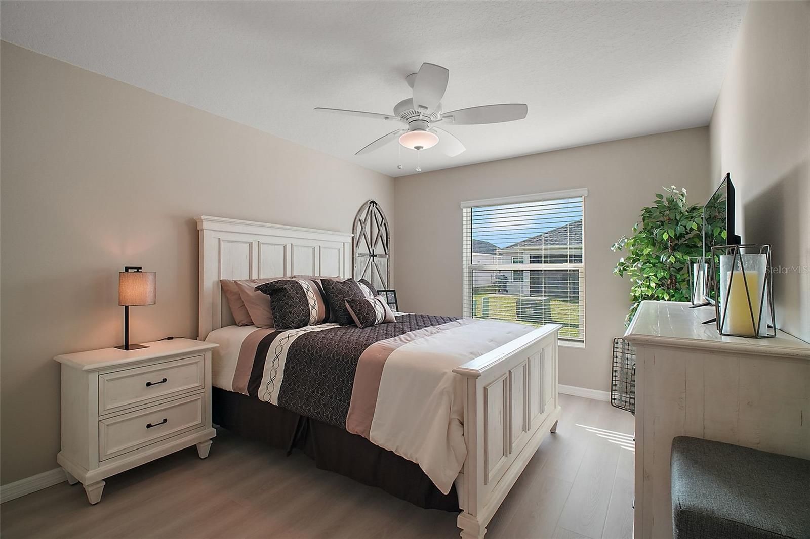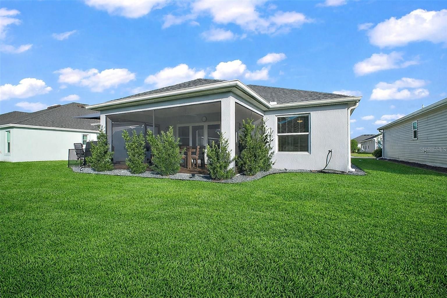 ROOM FOR A POOL • NO CARPET • QUARTZ COUNTERTOPS • NEAR SAWGRASS & BROWNWOOD• Welcome to this pristine 2022 Jasmine Designer home in the Village of Hawkins. Constructed of durable block and stucco, this 3-bedroom, 2-bathroom residence offers an open, airy layout with soaring vaulted ceilings and a freshly painted interior. Enjoy low-maintenance tile flooring throughout the main living areas and brand-new laminate flooring in all bedrooms. The kitchen is a true highlight, showcasing brand-new quartz countertops, an undermount sink, stainless steel appliances, and a cozy breakfast nook. Retreat to the primary suite featuring a walk-in closet with a 2024 custom organizer, ceiling fan, and an ensuite bath with quartz dual sinks, and a Roman-style shower. The two guest bedrooms each include ceiling fans, built-in closets, and the same high-quality new laminate flooring. The guest bath offers a tiled tub/shower combo and a quartz vanity. Step out to the screened lanai with weatherproof wood flooring, or relax on the open-air patio where there’s ample space to add your dream pool. Additional conveniences include an indoor laundry room with a utility sink, shelving, and a storage closet, and a two-car garage with an insulated door. Upgrades abound: double-pane energy-efficient windows, whole-house gutters, a surge protector, and gas cooking. Ideally situated just minutes from the Aviary, Ezell, and Everglades rec centers, this home is also close to the Hawkins neighborhood pool and postal station. Magnolia Plaza, Sawgrass Grove, Eastport, and Middleton are just a short drive away, placing you in the heart of it all.
