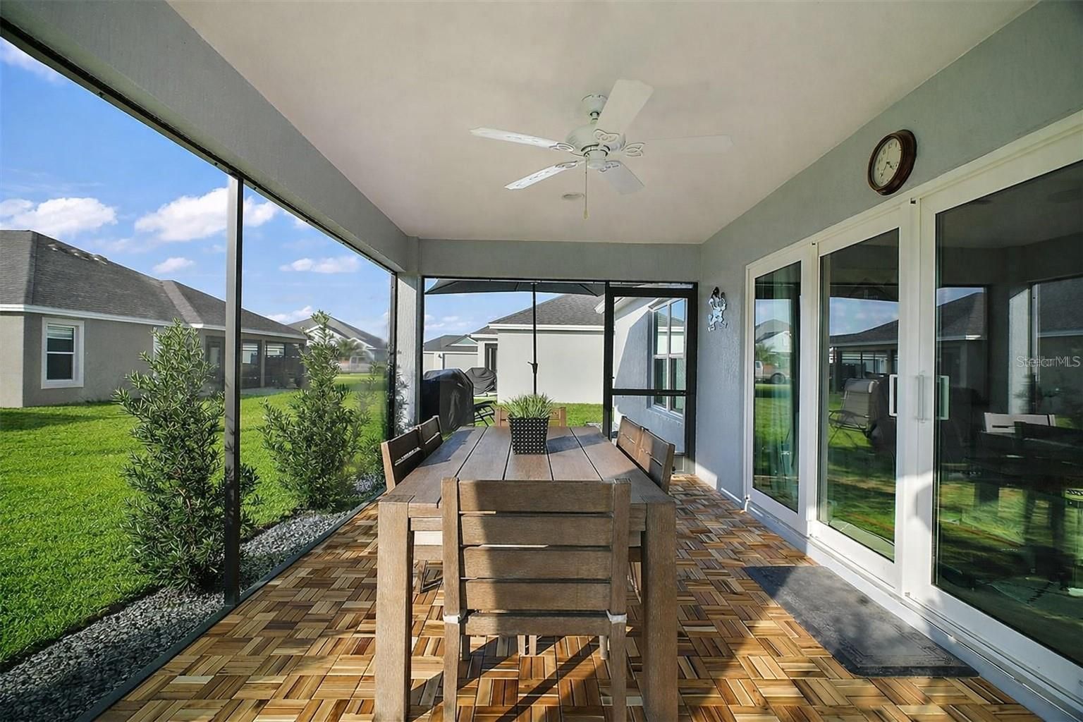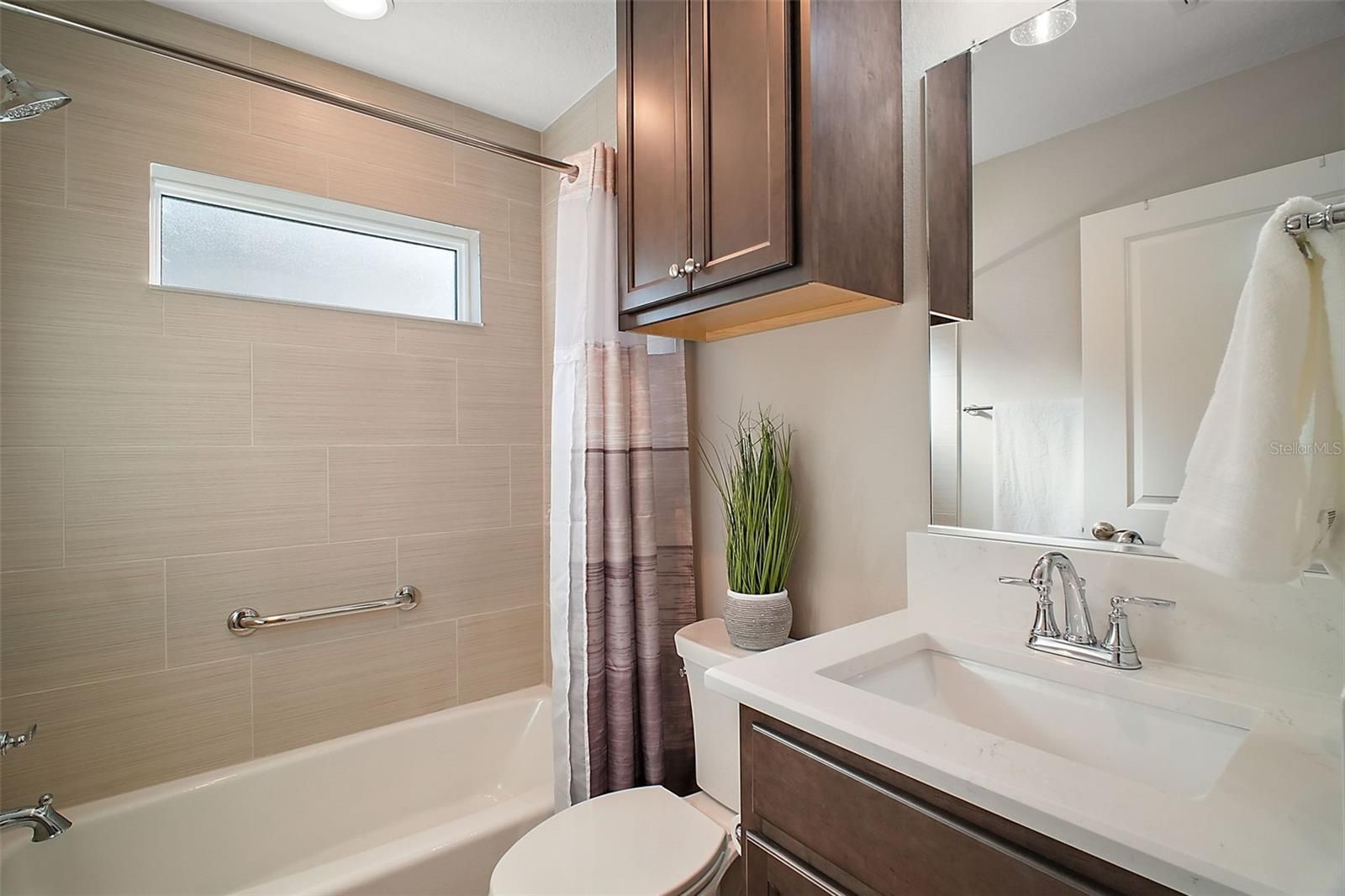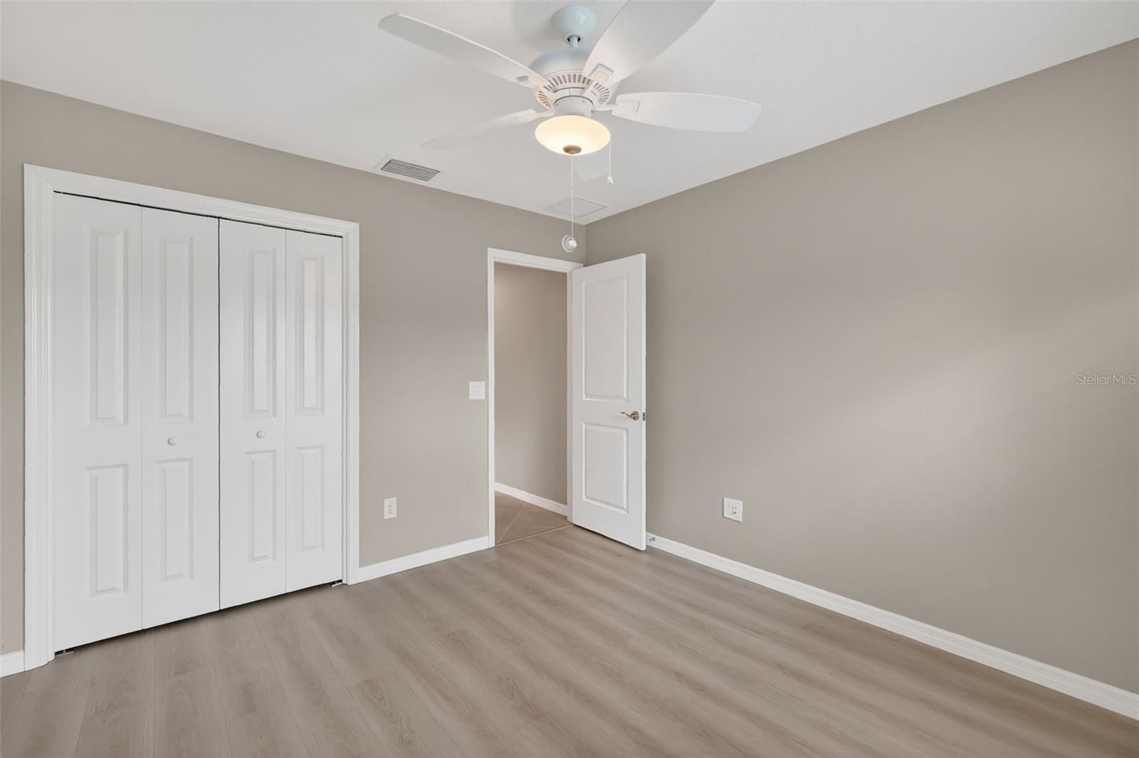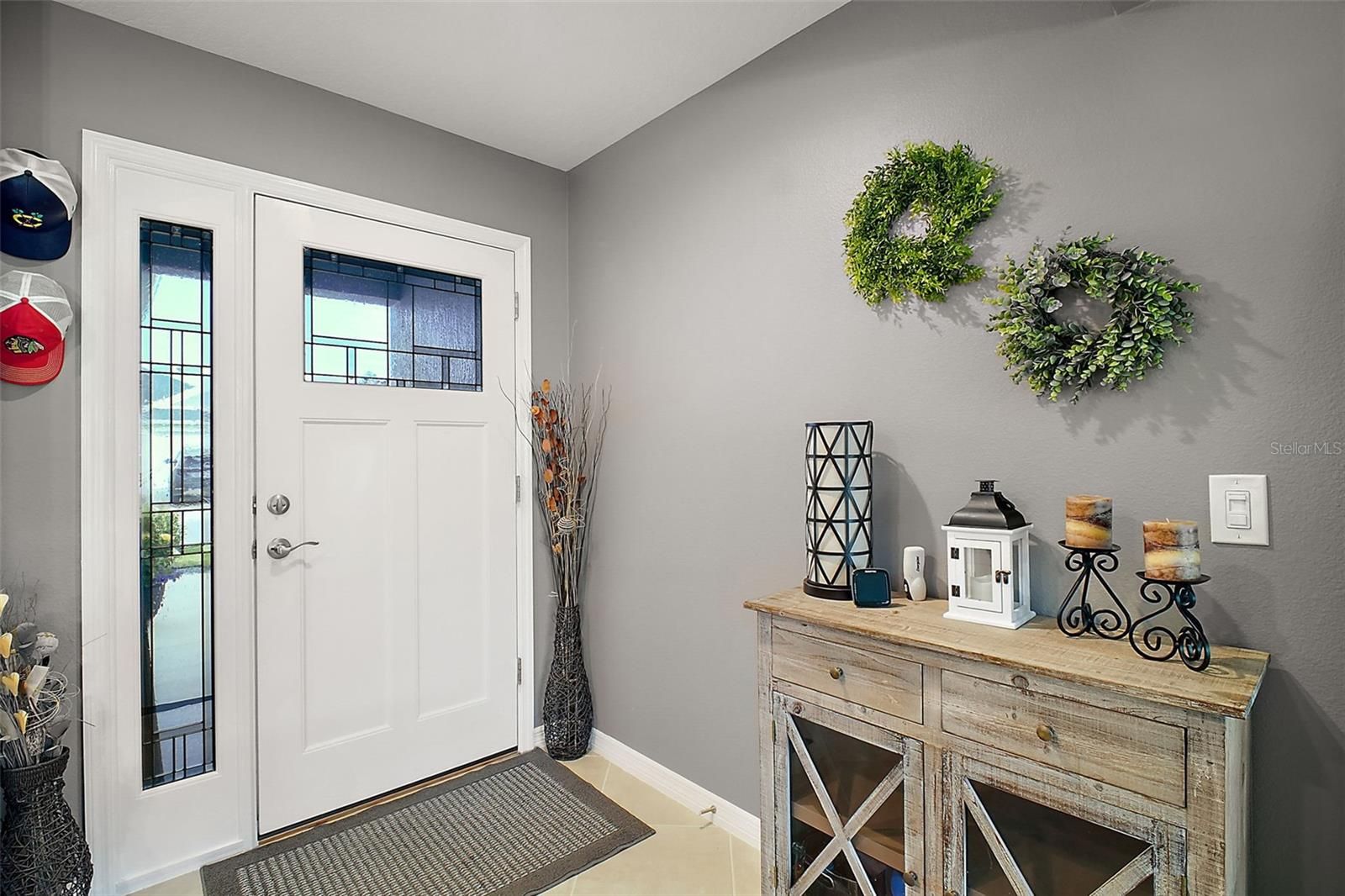 ROOM FOR A POOL • NO CARPET • QUARTZ COUNTERTOPS • NEAR SAWGRASS & BROWNWOOD• Welcome to this pristine 2022 Jasmine Designer home in the Village of Hawkins. Constructed of durable block and stucco, this 3-bedroom, 2-bathroom residence offers an open, airy layout with soaring vaulted ceilings and a freshly painted interior. Enjoy low-maintenance tile flooring throughout the main living areas and brand-new laminate flooring in all bedrooms. The kitchen is a true highlight, showcasing brand-new quartz countertops, an undermount sink, stainless steel appliances, and a cozy breakfast nook. Retreat to the primary suite featuring a walk-in closet with a 2024 custom organizer, ceiling fan, and an ensuite bath with quartz dual sinks, and a Roman-style shower. The two guest bedrooms each include ceiling fans, built-in closets, and the same high-quality new laminate flooring. The guest bath offers a tiled tub/shower combo and a quartz vanity. Step out to the screened lanai with weatherproof wood flooring, or relax on the open-air patio where there’s ample space to add your dream pool. Additional conveniences include an indoor laundry room with a utility sink, shelving, and a storage closet, and a two-car garage with an insulated door. Upgrades abound: double-pane energy-efficient windows, whole-house gutters, a surge protector, and gas cooking. Ideally situated just minutes from the Aviary, Ezell, and Everglades rec centers, this home is also close to the Hawkins neighborhood pool and postal station. Magnolia Plaza, Sawgrass Grove, Eastport, and Middleton are just a short drive away, placing you in the heart of it all.