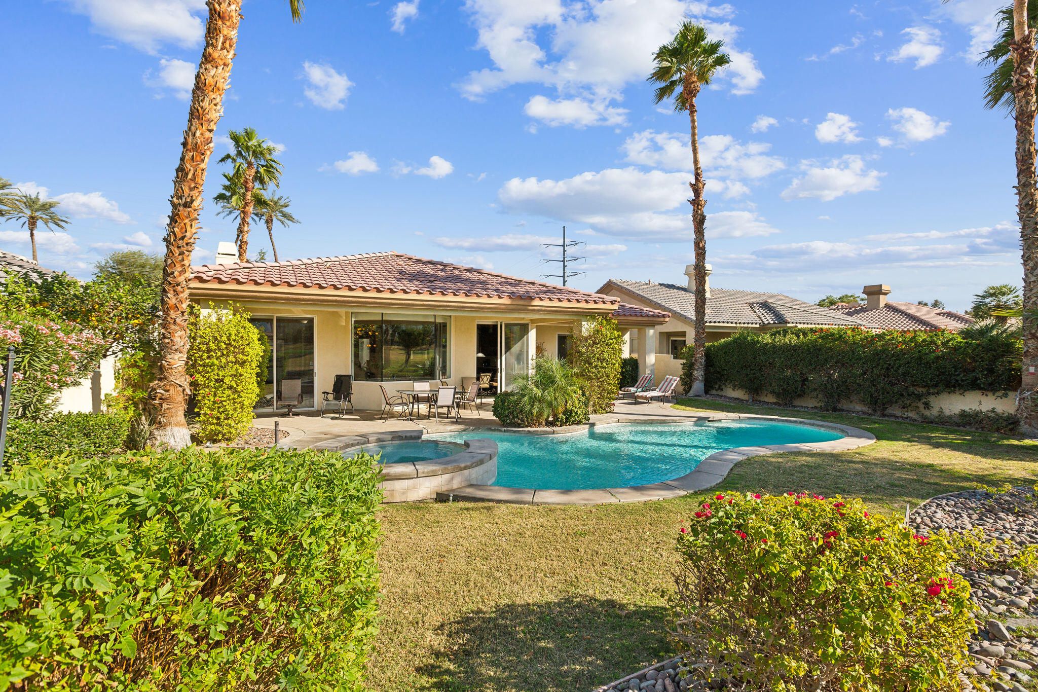 Stunning Panoramic Views of the Santa Rosa Mountains and the 8th and 9th Fairways of the Weiskoph Private Golf Course. There are No Homes across the Street in front of you for added privacy Truly Breathtaking Views of Pool . Golf Course and Mountains The upgraded Kitchen has Granite Counters , an Island, and Stainless Steel Appliances Home is being offered Turn Key Just replaced the Main area HVAC , so there are two HVAC systems , valued at about $30 K The Master Suite has an Island Tub ,Walk-Through Shower .Dual Vanities , and his/her Walk in Closets The Guest Bedrooms have their own en-suite Bathrooms . The PGA West community offers Biking to Scenic Walking Paths Enjoy all the Fantastic Restaurants within reach of the Six World Class Championship Golf Courses