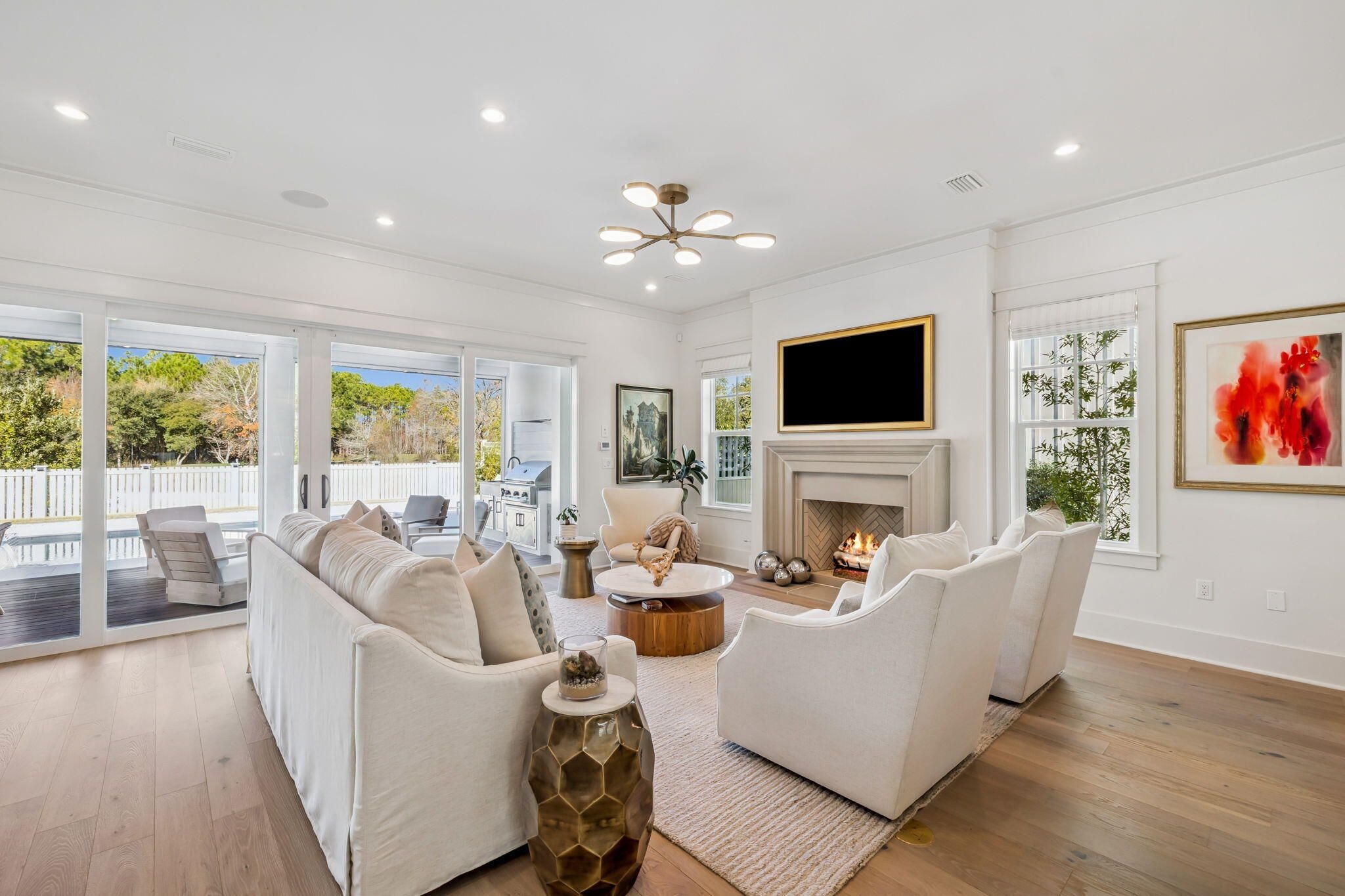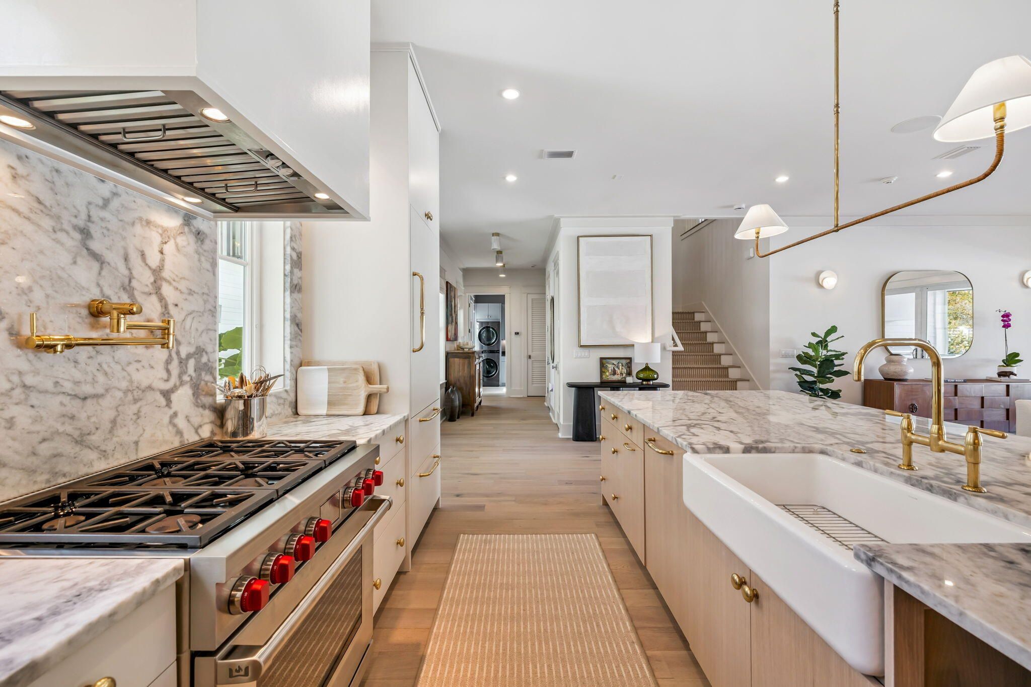 Positioned along the Watersound Origins Golf Course, this five-bedroom, five-and-a-half-bath residence captures one of the most peaceful perspectives in the community: wide fairway views framed by thoughtfully designed outdoor living spaces. Inside, the home was built around how people actually gather and spend time together. The kitchen anchors the main living area with a large marble island wrapped in white oak and equipped with Sub-Zero refrigeration, a dual Wolf range with both gas and electric cooking, and a built-in 30-inch Wolf coffee station. Just off the kitchen, a white oak wine bar introduces additional function with a wine cooler, nugget ice maker, and unlacquered brass fixtures that add warmth and character to the space. Throughout the home, finishes were chosen with consistency and durability in mind. Bathrooms are finished in Carrara marble with custom tile work, while both fireplaces are true masonry builds - including the custom stone fireplace that centers the main living room. Details like a sliding glass wall opening to the lanai, custom stair runner, and California Closets in key bedrooms reinforce the level of planning that went into the home's design. The outdoor living area was created to function as a true extension of the interior. The highlight is the private pool with a raised hot tub, while the covered lanai features automated screens, Cumaru hardwood decking, built-in electric heaters, an outdoor kitchen with Artisan grill and refrigeration, integrated speakers, and a second fireplace, allowing the space to be used comfortably throughout the year. Behind the scenes, the home is equipped with a long list of systems designed for convenience and reliability. Sonos audio throughout the house is controlled by dedicated iPads, Samsung Frame televisions are installed across multiple rooms, and a full security system with day-night cameras adds peace of mind. A 26-kilowatt Generac generator services the entire home and carriage house, while Wi-Fi-enabled garage doors -including a dedicated golf cart garage- add another layer of everyday functionality. The property is equally considered outside, where extensive landscaping, lighting, and a Wi-Fi irrigation system frame the home and enhance the golf course setting. Homes in Origins often have one or two standout features. This one combines several - golf course frontage, a fully built-out outdoor living space, and a long list of systems already in place, from the whole-home generator to integrated Sonos audio and automated screens.