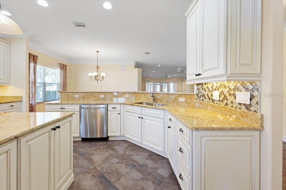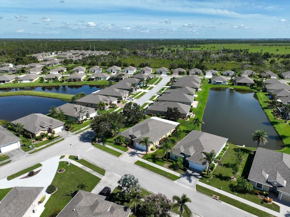 One or more photo(s) has been virtually staged. Welcome to Park Forest, the area's shining star of gated 55 plus communities with low HOA fees and no CDD Fees. Fees include your TV and internet, new roof every 17 years and exterior paint every 7 years, exterior grounds maintenance and more.. Enjoy your days at the area's most active community centers with activities for all your desires. Custom built for the developer of the community as their personal home it features an extended floor plan of the desirable Pearl floor plan that adds an extra 500 sq feet of air conditioned space and a wider garage than the popular base Pearl model. With its large kitchen and breakfast nook which includes a built-in pantry and additional cabinet area all with granite tops, eat at counter and solid wood cabinets featuring an oversized island you are sure to be able to entertain family and friends with room to spare. In addition there is a separate dining room adjoining an expansive great room trimmed with oversized baseboards and topped with double crown moldings leading to a massive 40 ft lanai with insulated roof, ceiling fans and pre plumbed and wired for a spa overlooking the pond out back. You're sure to love the room sizes as well as the master suite that includes a walk-in closet and den overlooking the water. Additional features include electric roll down garage screen, impact windows, hurricane shutters for doors, large inside laundry room pre plumbed for utility sink, expansive corner lot with mature trees and sidewalks, paver lined driveway sidewalk, upgraded fans, fixtures and more. All this and only a couple minutes from Historical Dearborn, Beautiful Gulf Beaches and dozens of golfing opportunities. Situated in an X flood zone with a 2 year old roof for added peace of mind. Schedule you showing today and all your expectations will be met.