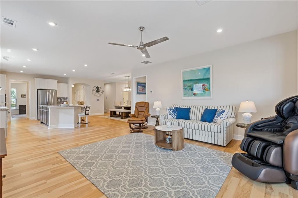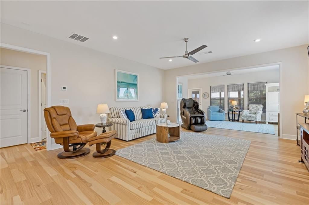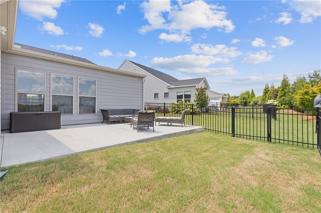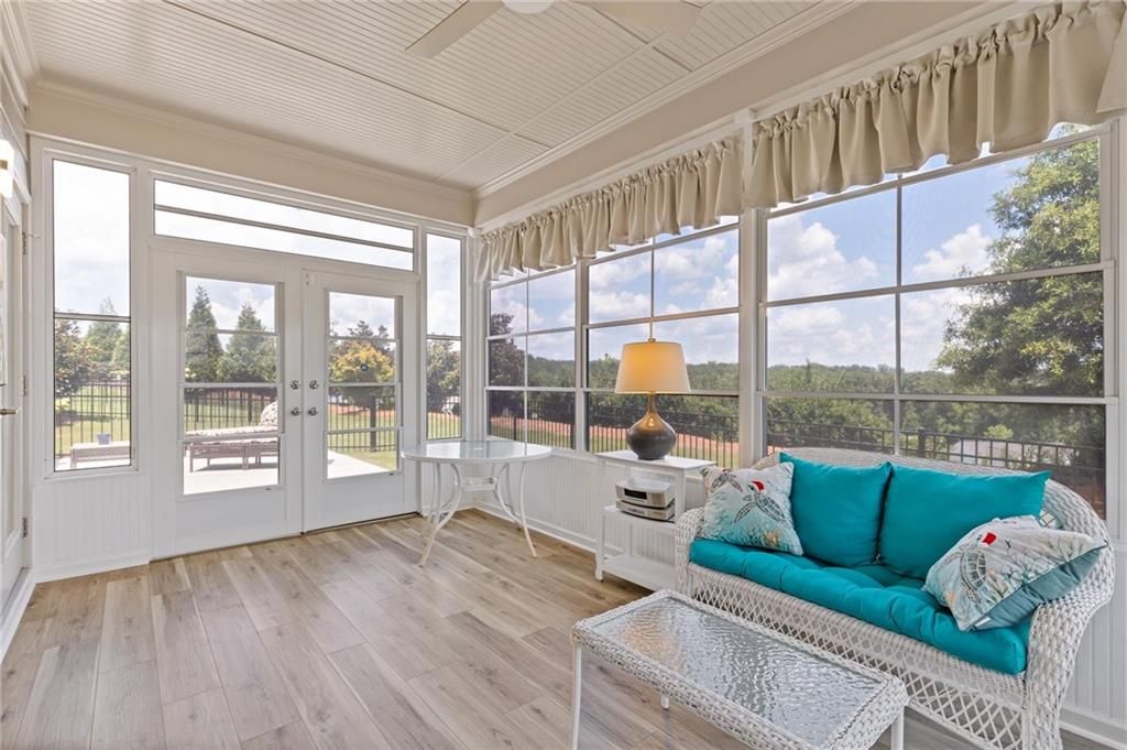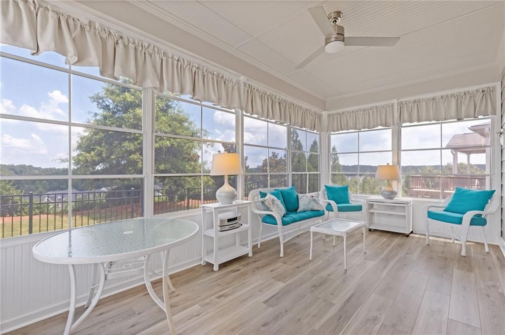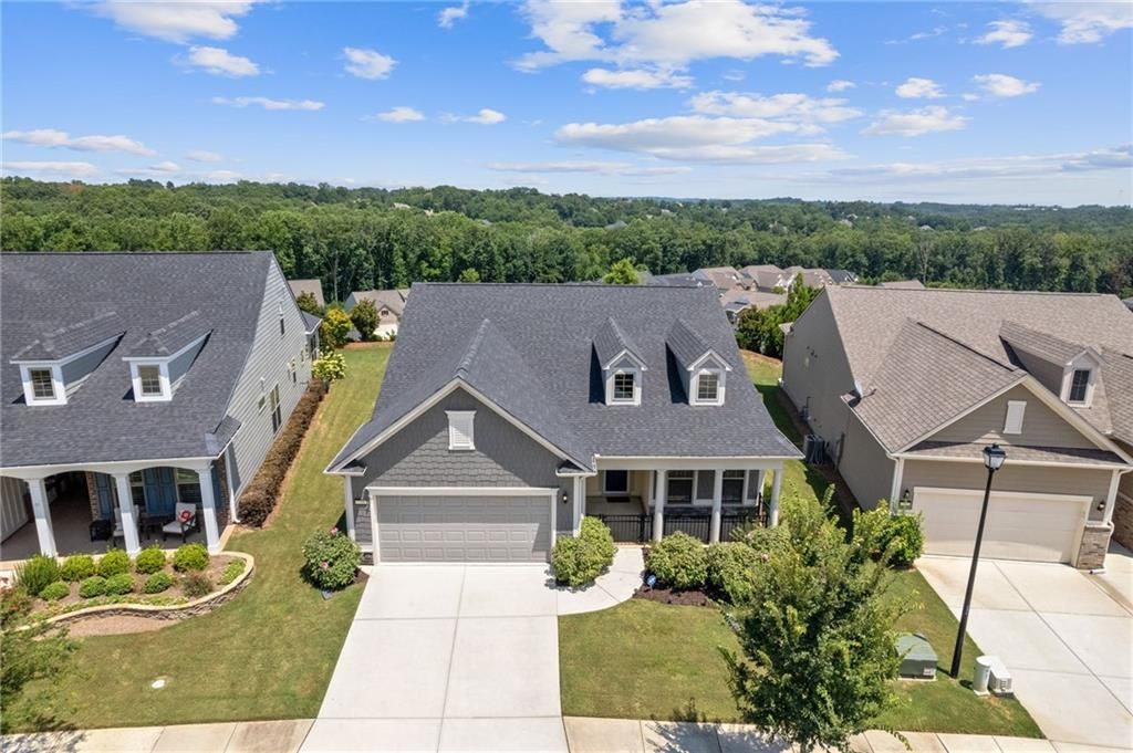 Available IMMEDIATELY! Fabulous MARTIN RAY plan situated on a PREMIUM lot with FENCED backyard. Enjoy the private views from the EXTENDED patio or Four Seasons Room featuring ENERGY EFFICIENT vinyl windows. Inside find 2 generous sized bedrooms, 2 full baths with the primary bath providing a ZERO ENTRY shower, oversized vanity, SMART toilet and expansive walk-in closet. A perfectly appointed Office, Sunroom, GOURMET kitchen with walk-in pantry, BUTLER'S pantry, generous ISLAND overlooking a dining room & gathering room, rich HARDWOOD floors and closet space galore complete this beautiful interior. Finally, check out the Upgraded DOUBLE Garage with GOLF CART space and garage STAIRS to even more STORAGE space! This Active Adult community offers state of the art amenities in a terrific location close to restaurants, shopping and Northeast Georgia Hospital System. All furniture is negotiable!