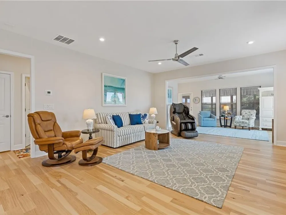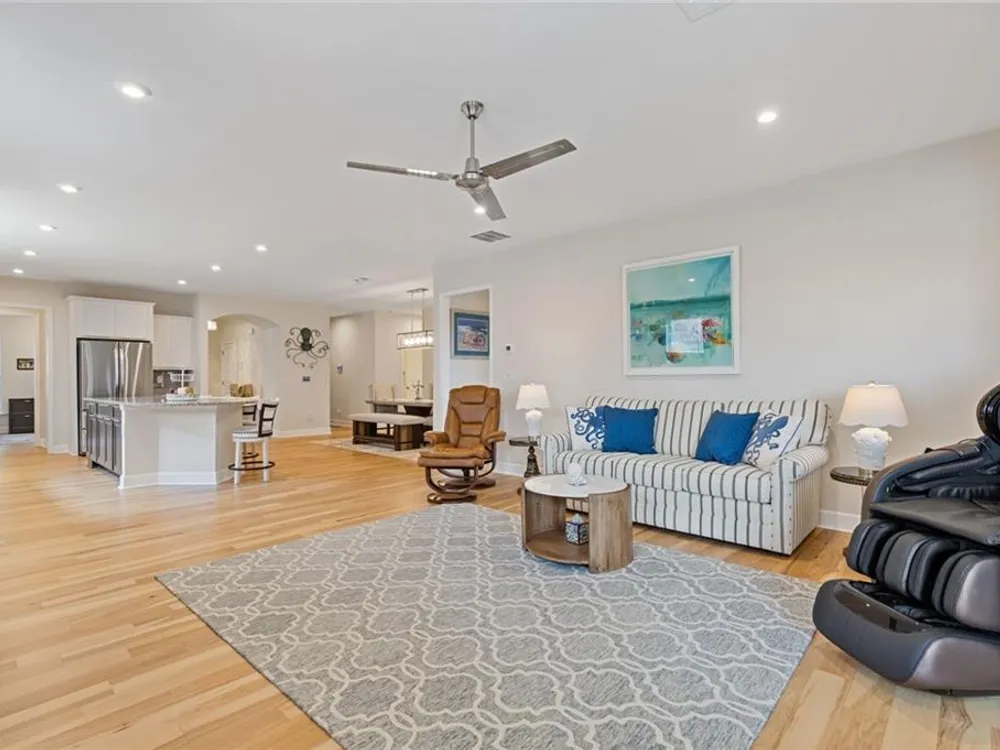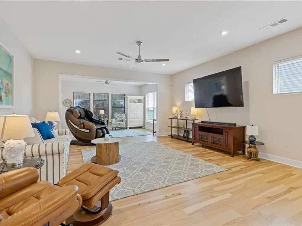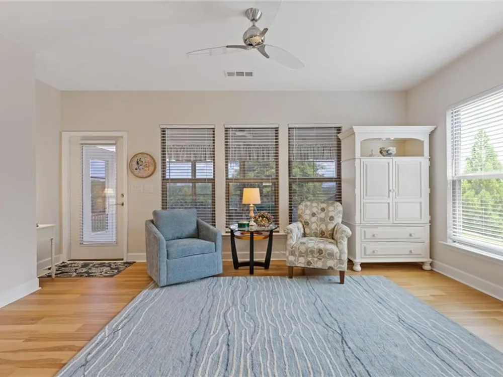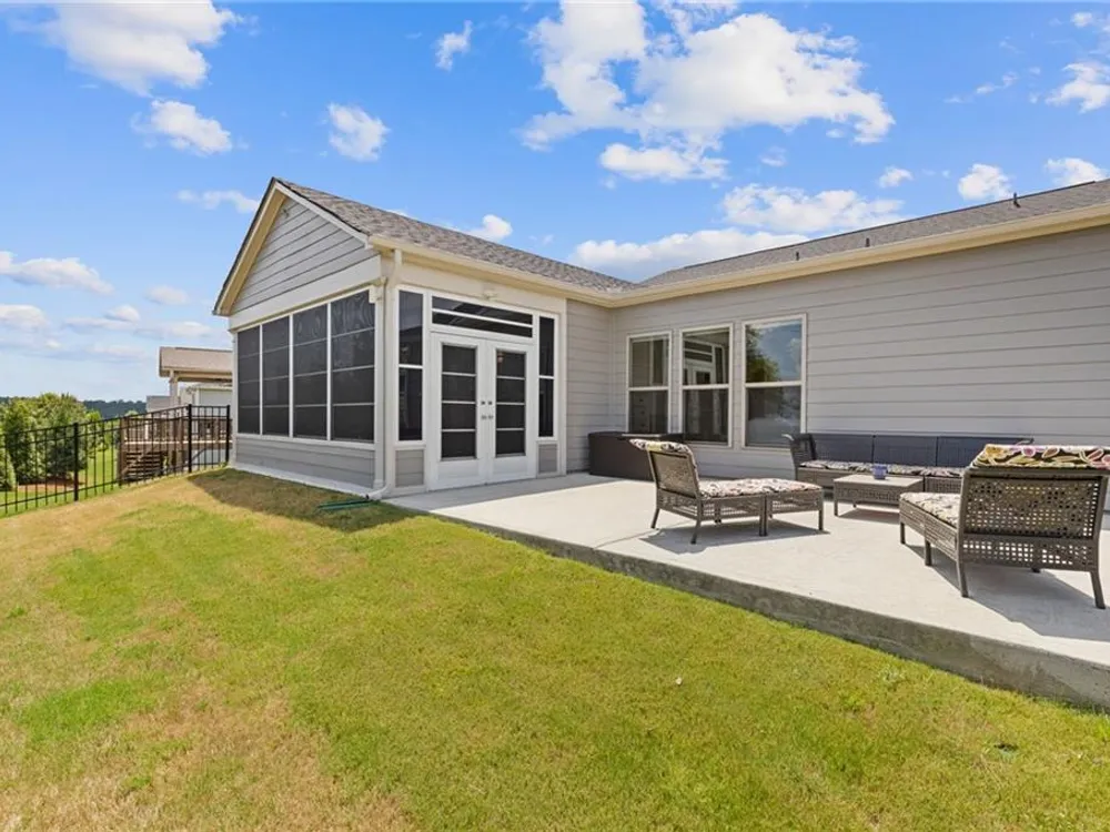 Available IMMEDIATELY! Fabulous MARTIN RAY plan situated on a PREMIUM lot with FENCED backyard. Enjoy the private views from the EXTENDED patio or Four Seasons Room featuring ENERGY EFFICIENT vinyl windows. Inside find 2 generous sized bedrooms, 2 full baths with the primary bath providing a ZERO ENTRY shower, oversized vanity, SMART toilet and expansive walk-in closet. A perfectly appointed Office, Sunroom, GOURMET kitchen with walk-in pantry, BUTLER'S pantry, generous ISLAND overlooking a dining room & gathering room, rich HARDWOOD floors and closet space galore complete this beautiful interior. Finally, check out the Upgraded DOUBLE Garage with GOLF CART space and garage STAIRS to even more STORAGE space! This Active Adult community offers state of the art amenities in a terrific location close to restaurants, shopping and Northeast Georgia Hospital System.