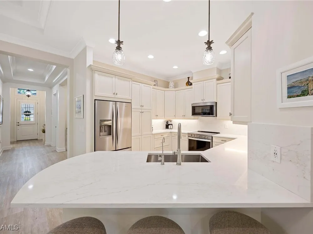 Introducing 5767 Highbourne Drive at the Isles of Collier Preserve! This stunning remodeled waterfront Friscia model comes fully furnished. This residence combines luxury, comfort and peace of mind with a host of high-end features with recent renovations. Includes freshly painted interior, new custom counters and backsplash in the kitchen. plantation shutters throughout, whole-house water softening system, hurricane-rated storm screens,ultra-violet lite for air conditioning, and a saltwater pool with spa. Garage has storage cabinets included and is fully air-conditioned. Enjoy the unmatched style and natural beauty the Isles of Collier Preserve has to offer. This exceptional home is a blend of style, function and Florida living.