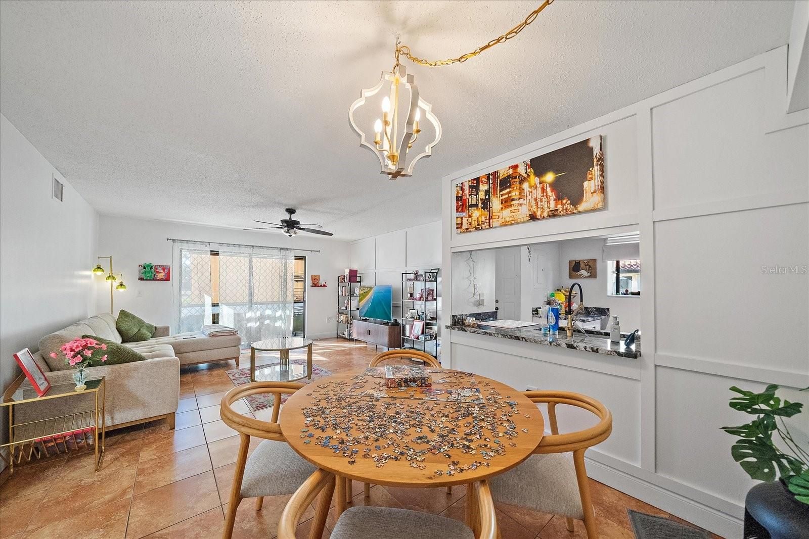 Clean, spacious, and move-in ready, this beautifully decorated first-floor one-bedroom, one-bath condo offers 780 square feet of comfortable living in The Gardens subdivision of Palm Aire Golf & Country Club, with membership optional. Pride of ownership is evident throughout this recently updated home featuring ceramic tile flooring, a newer A/C system (2020), updated kitchen and bathroom cabinets and countertops, and stainless steel appliances. The open kitchen includes a convenient pass-through to the living and dining areas, which showcase fresh paint, a new ceiling fan, pendant lighting, and unique accent wall features. The fully renovated bathroom offers a new vanity, modern fixtures, updated flooring, and a beautifully tiled walk-in shower. Additional upgrades include new closet doors, a newer water heater, and an in-unit stackable washer and dryer. The spacious primary bedroom features dual closets, and the screened-in porch with new flooring is just steps from the heated community pool, tennis courts, clubhouse, and shuffleboard. This attractive, quiet community offers a friendly pet policy allowing one small dog or cat up to 20 lbs and is conveniently located near Benderson Park, University Town Center shopping and dining, medical facilities, I-75, and just 15 minutes from Sarasota’s famous Gulf beaches—an affordable condo in a prime location that won’t last long.