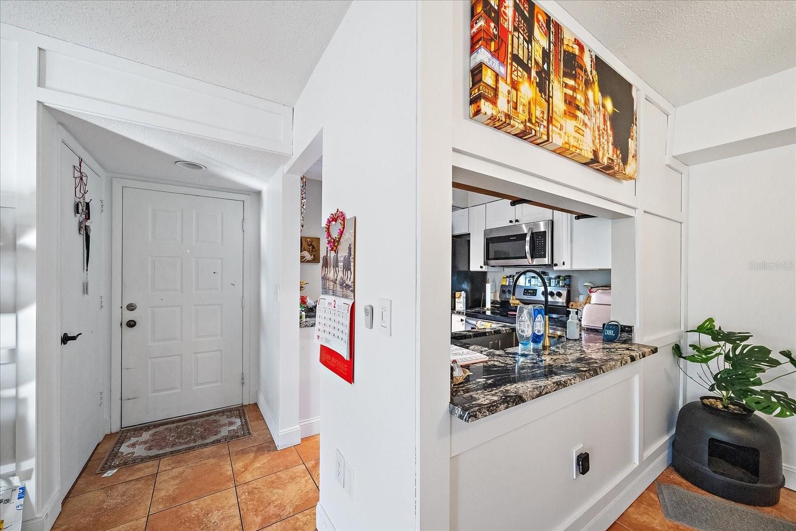 - Living/Dining Room, Solid Surface Counters, Solid-Wood Cabinets, Stone Counters, Thermostat, Walk-In Closet(s), Window Treatments