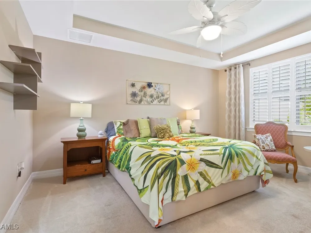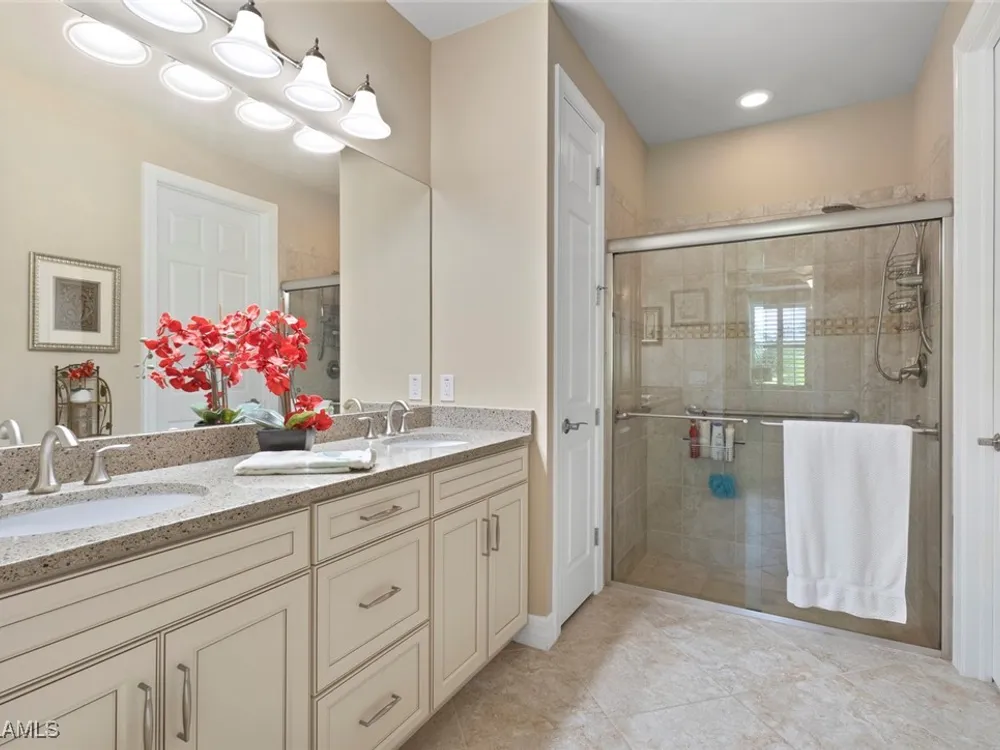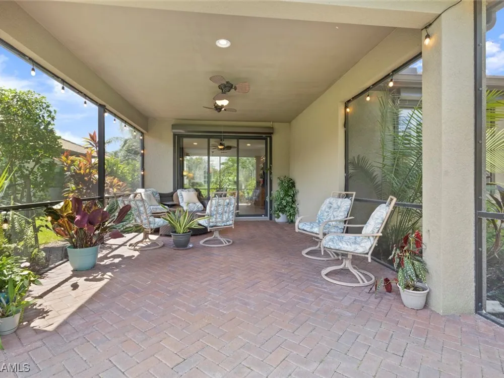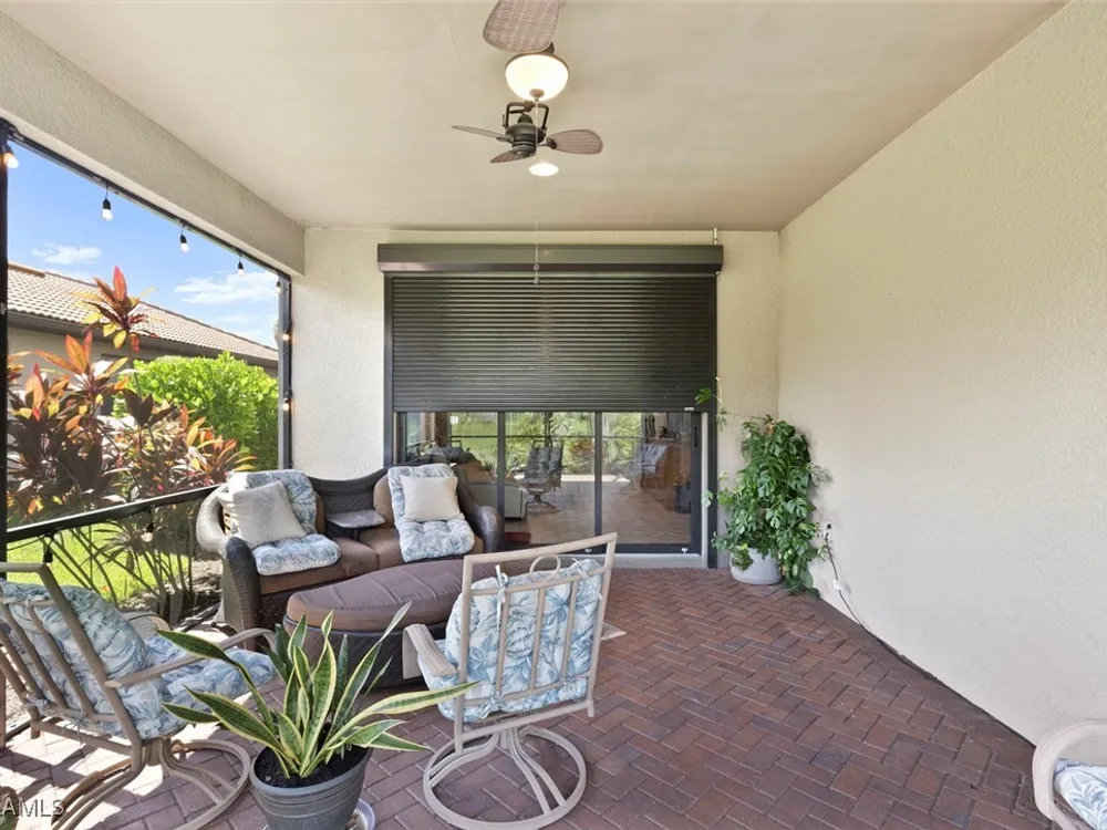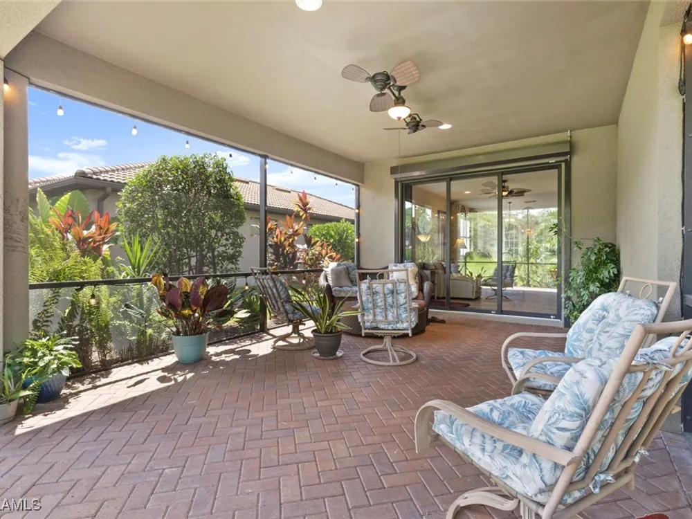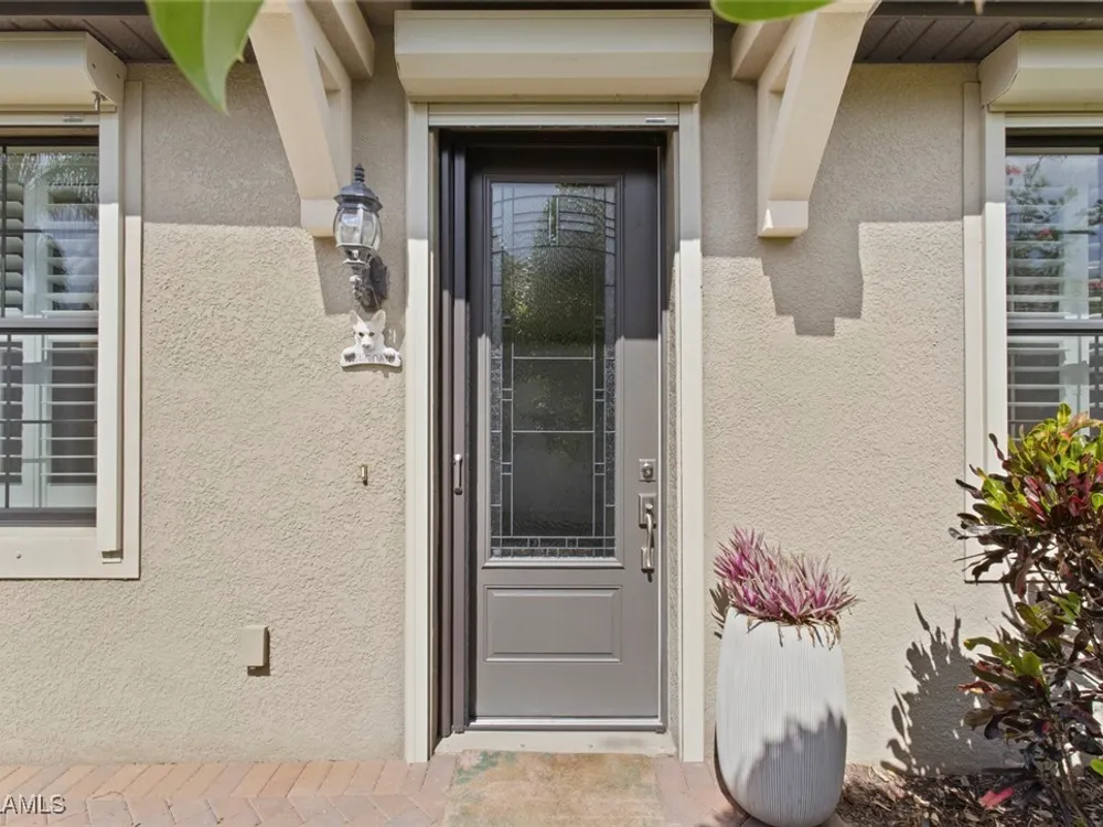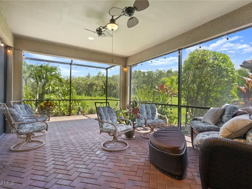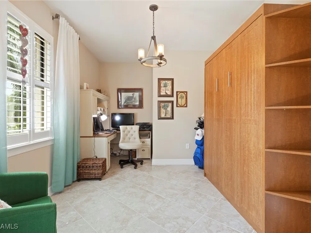 Live the lifestyle you’ve earned in this beautifully upgraded Serenity floor plan villa, perfectly situated in the highly desirable 55+ Del Webb Naples community. Offering 2 bedrooms, 2 full baths, and a versatile den, this home delivers the ideal combination of luxury, comfort, and functionality. From the moment you step inside, you’ll notice the attention to detail. Enjoy UPGRADED CABINETRY throughout, including 42-inch upper cabinets in the kitchen for added storage. PORCELAIN TILE set on the diagonal creates a high-end look, while PLANTATION SHUTTERS offer both elegance and privacy. The den is ready for guests with glass French doors and a MURPHY BED, while the RETRACTABLE SCREENS on the front door and lanai slider invite fresh air into your space. The primary suite is a peaceful retreat with serene PRESERVE VIEWS, a spacious walk-in closet, dual vanities, and a glass-enclosed shower complete with ADA grab bars for safety and comfort. The laundry room is smartly designed with upper cabinets, a deep utility sink, and includes the washer and dryer. When it comes to storm protection, this home delivers unmatched peace of mind with ELECTRIC ROLL-DOWN HURRICANE SHUTTERS on every window and doors—plus a powerful GENERAC 22KW whole-house GENERATOR connected to a 500-gallon propane tank. Step out onto the EXTENDED LANAI to enjoy the tranquil surroundings, or envision your future oasis—the expansive lot allows room for your very own pool, should you wish to add one. Golf lovers will appreciate the available memberships at Panther Run Golf Club, offering championship-level play just minutes from your door. As a Del Webb Naples resident, you’ll have full access to world-class amenities: the Rusty Putter Restaurant, resort-style and lap pools, a state-of-the-art fitness center, pickleball, tennis, bocce, a golf simulator, billiards, and more. Hop in your golf cart and head to Publix, church, or dinner in the heart of Ave Maria. This is more than just a home—it’s a lifestyle upgrade in one of Southwest Florida’s premier active adult communities. Don’t miss this opportunity to own one of the most well-equipped and thoughtfully designed villas in Del Webb Naples!
