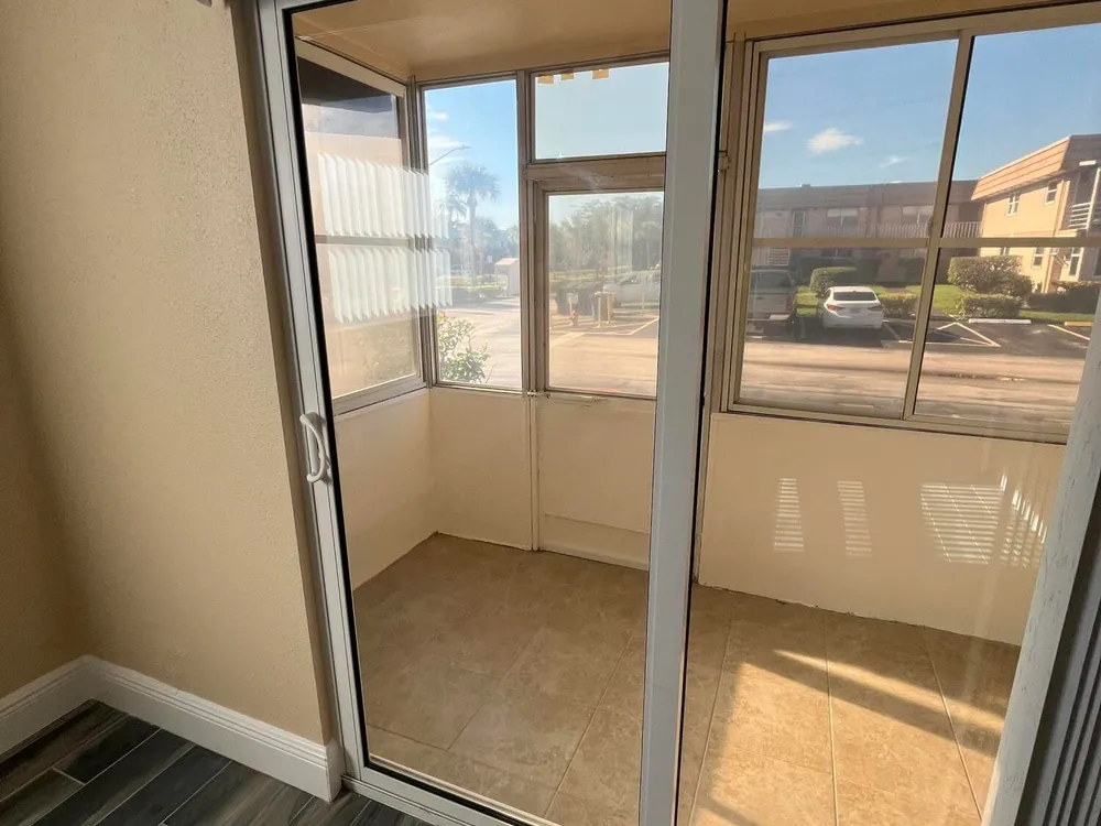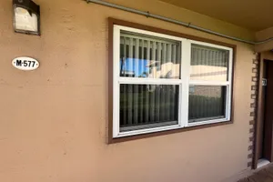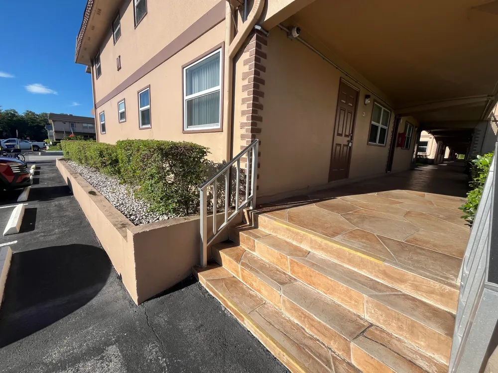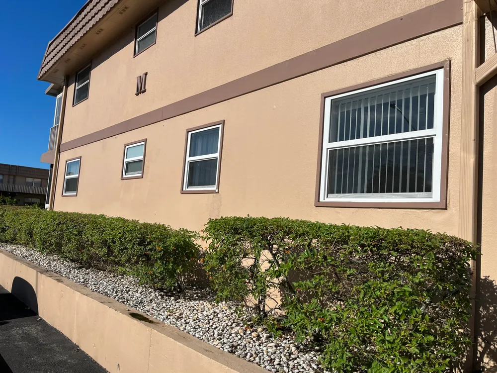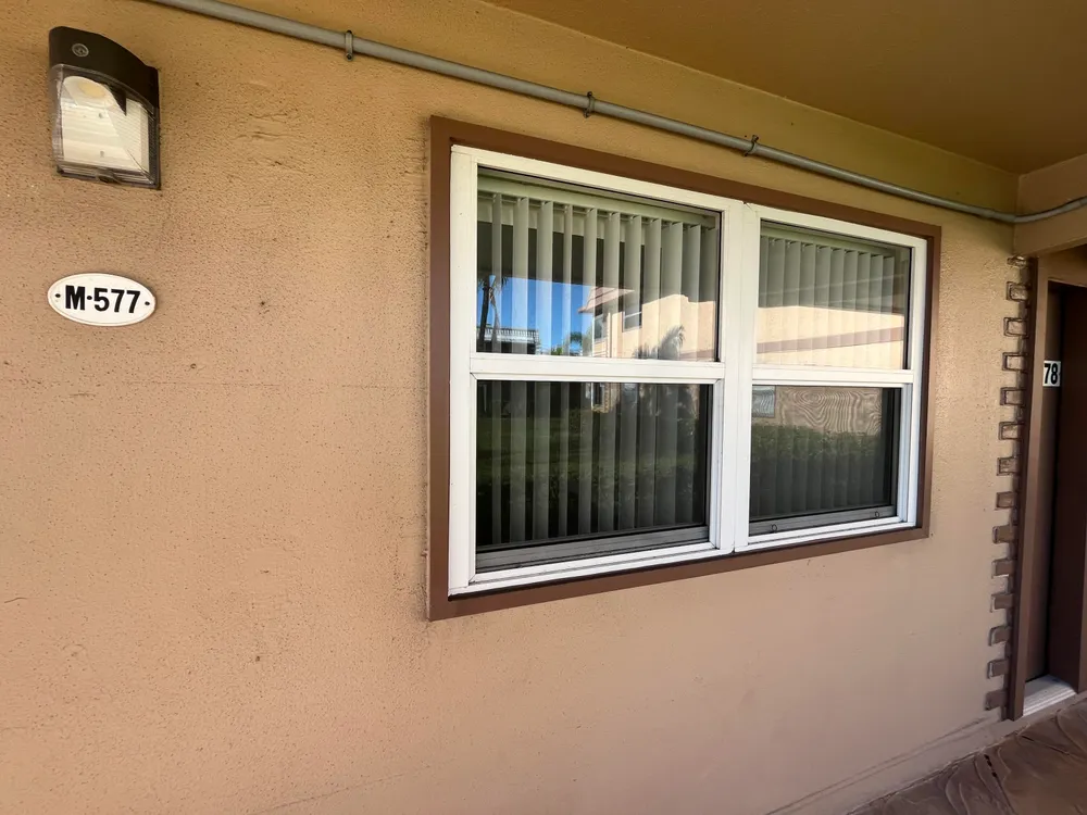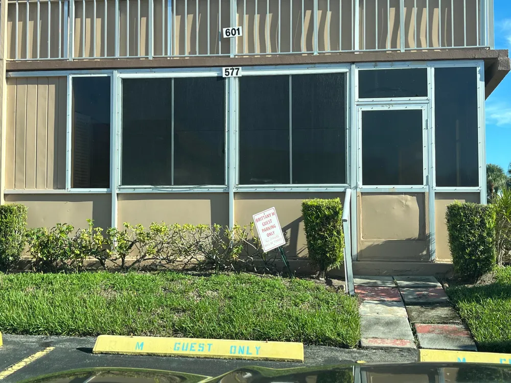 Gorgeous ground floor true corner end unit in Brittany 'M'. Luxury living with matching tile throughout the condo. Updated kitchen adorned with stainless steel appliances. Tiled backsplash. Ceiling fans and light kits in all the rooms. Updated bathrooms. Primary bathroom with gorgeous stall shower tiled beautifully. Bedroom closets all custom fitted with primary having a huge walk-in. Additional linen/pantry closet in hallway between living room and bathrooms. A/C just recently replaced. Updated electrical panel as well. Freshly painted in neutral color. Unit has hurricane impact glass windows and doors all the way around the condo. Side by side washer/dryer in the patio utility closet. Park right outside your unit.
