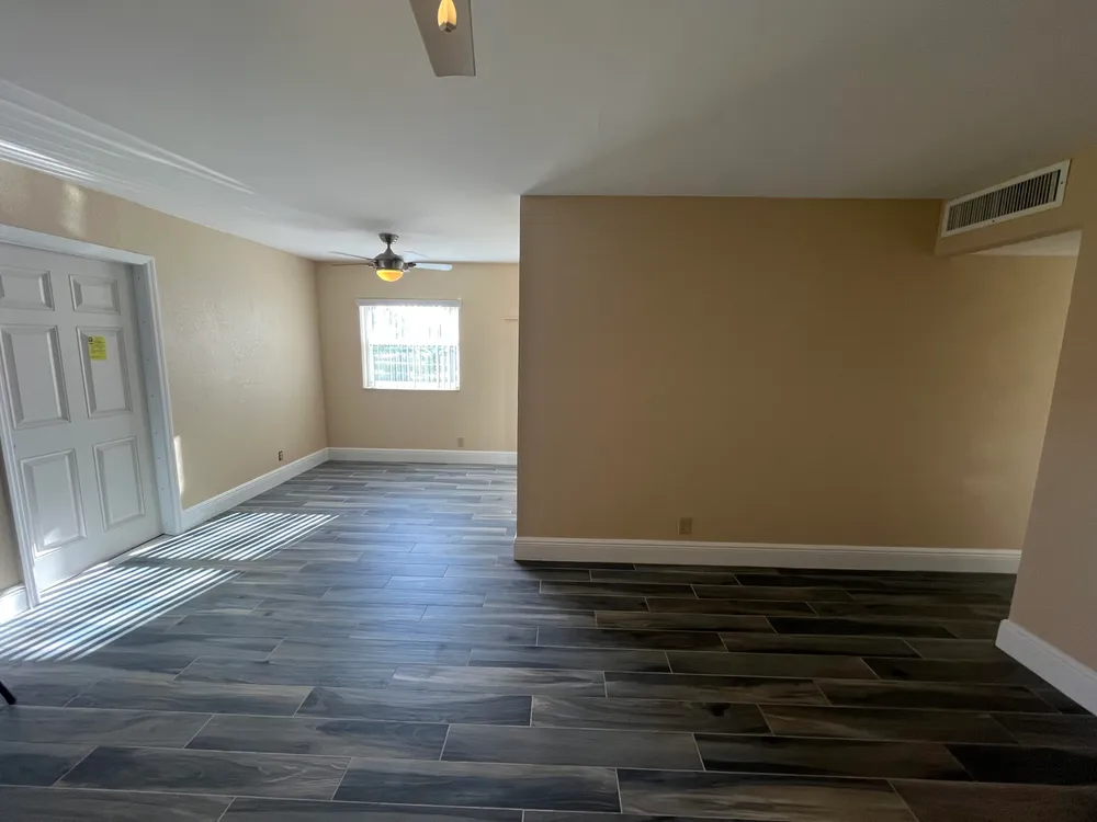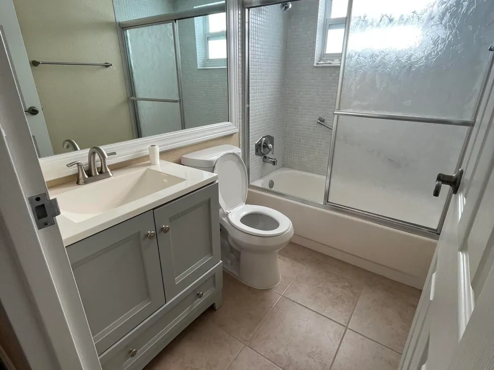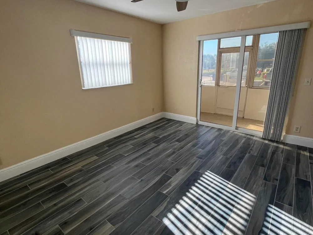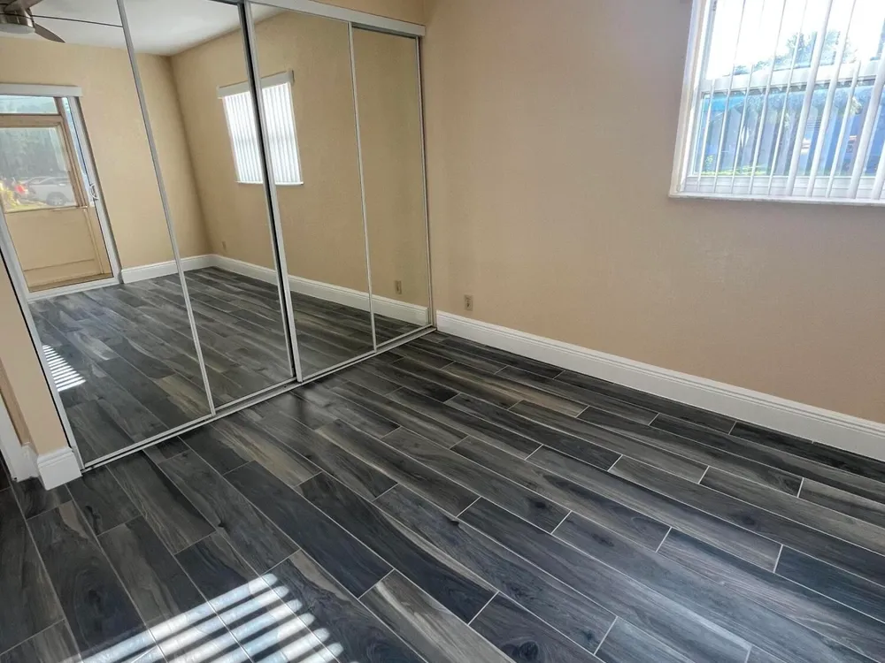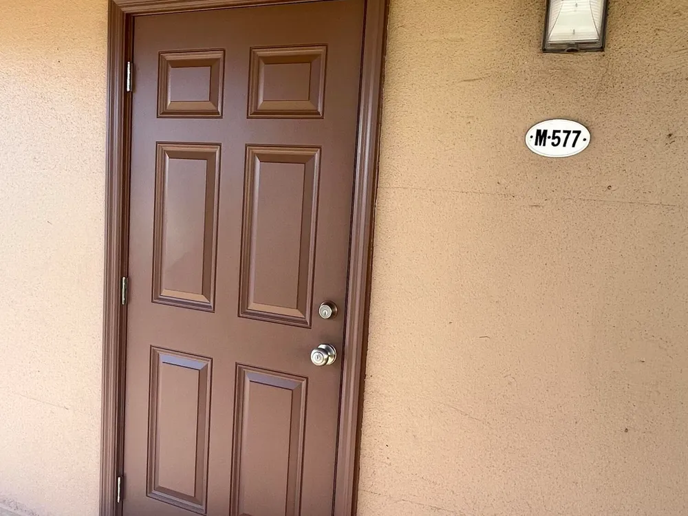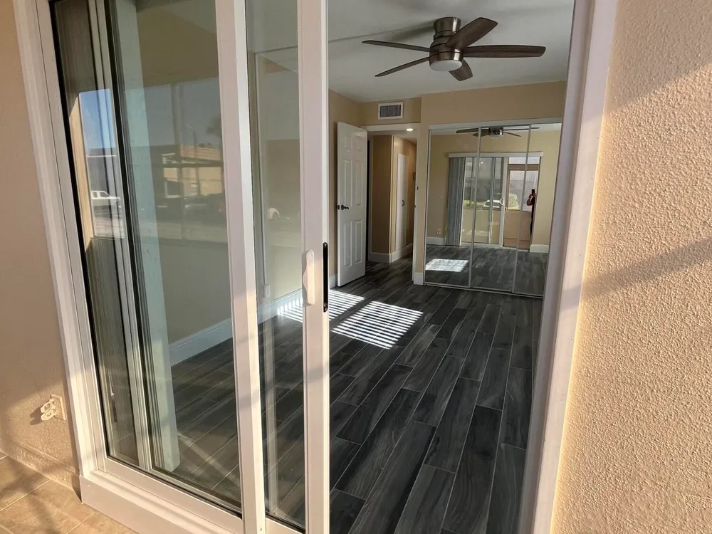 Gorgeous ground floor true corner end unit in Brittany 'M'. Luxury living with matching tile throughout the condo. Updated kitchen adorned with stainless steel appliances. Tiled backsplash. Ceiling fans and light kits in all the rooms. Updated bathrooms. Primary bathroom with gorgeous stall shower tiled beautifully. Bedroom closets all custom fitted with primary having a huge walk-in. Additional linen/pantry closet in hallway between living room and bathrooms. A/C just recently replaced. Updated electrical panel as well. Freshly painted in neutral color. Unit has hurricane impact glass windows and doors all the way around the condo. Side by side washer/dryer in the patio utility closet. Park right outside your unit.