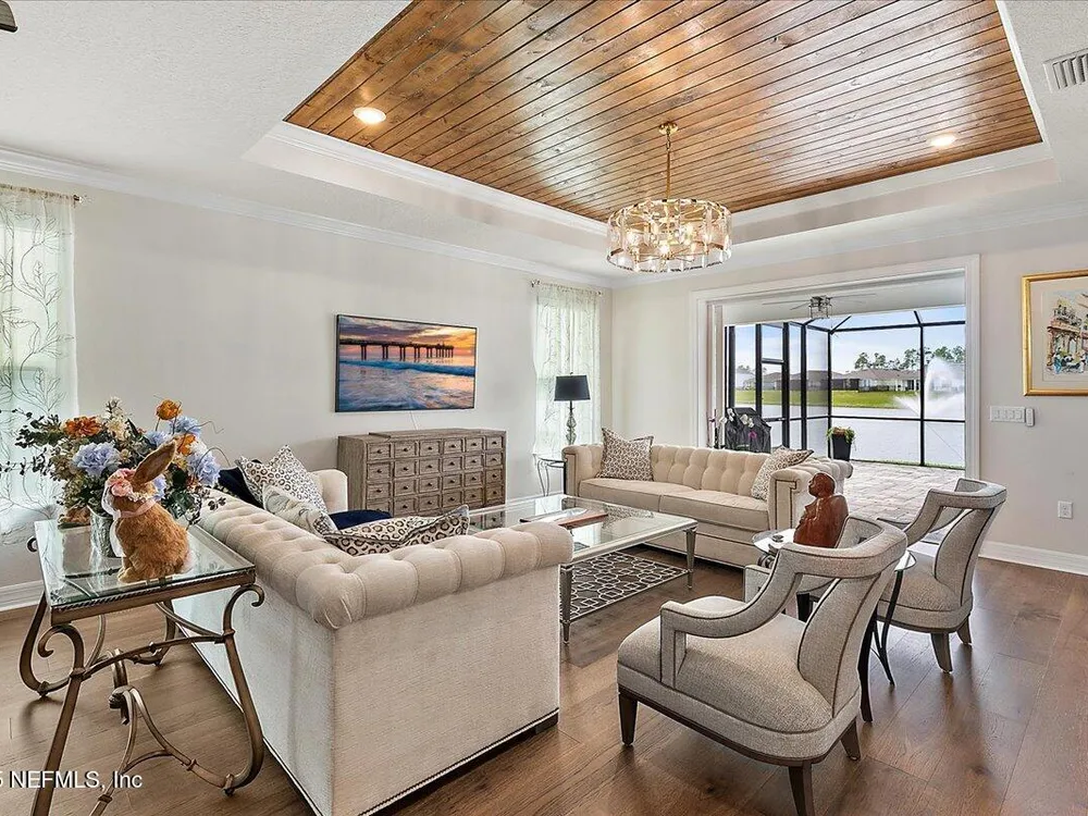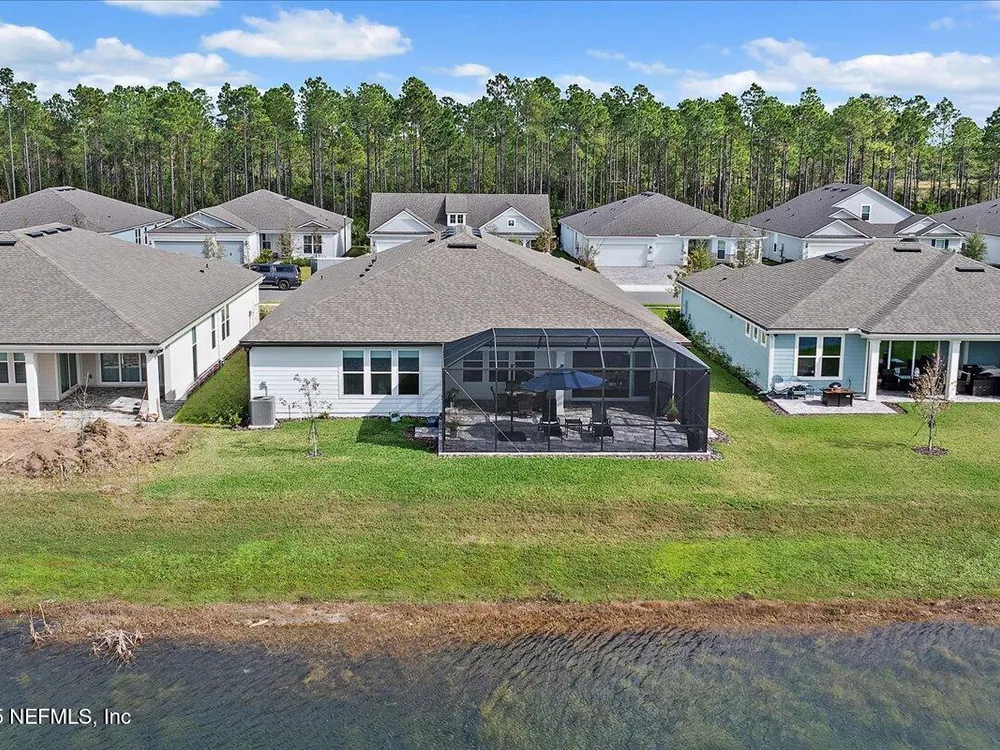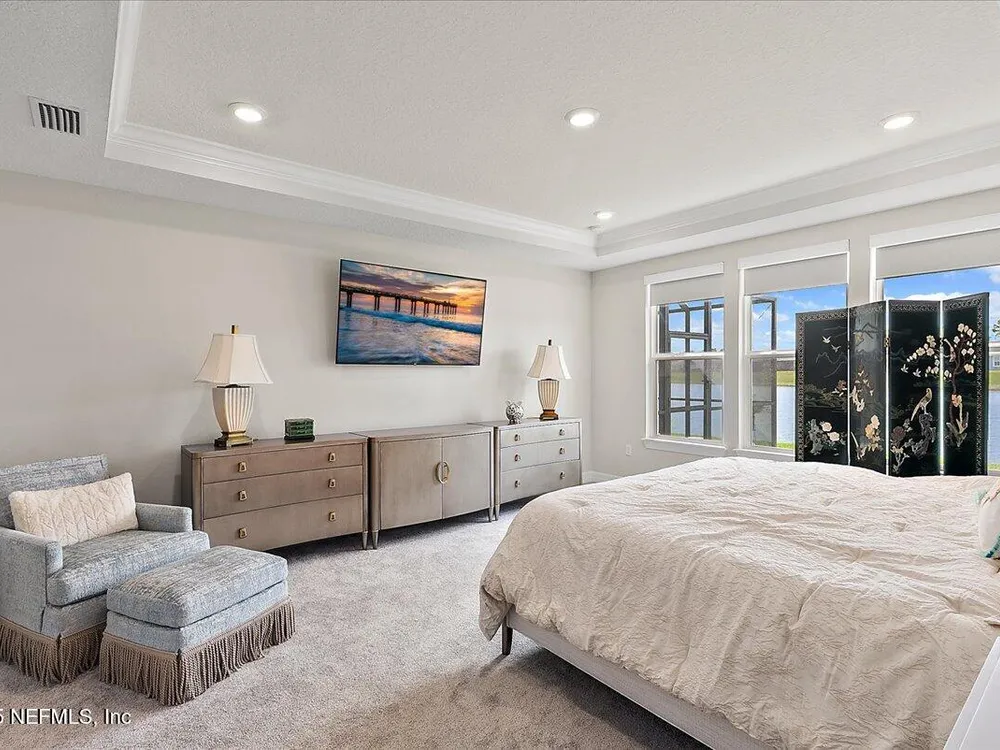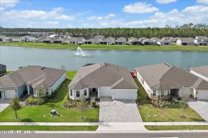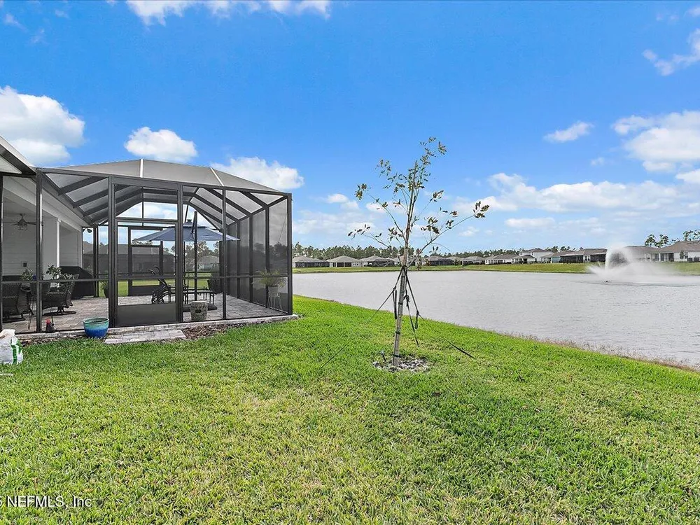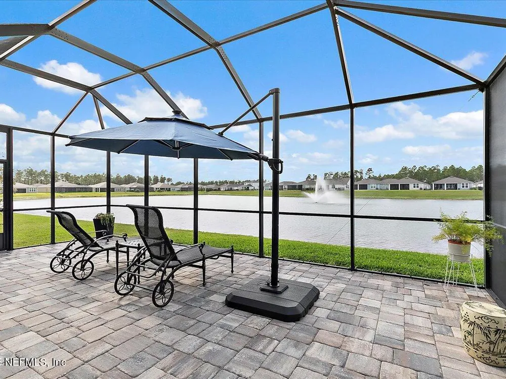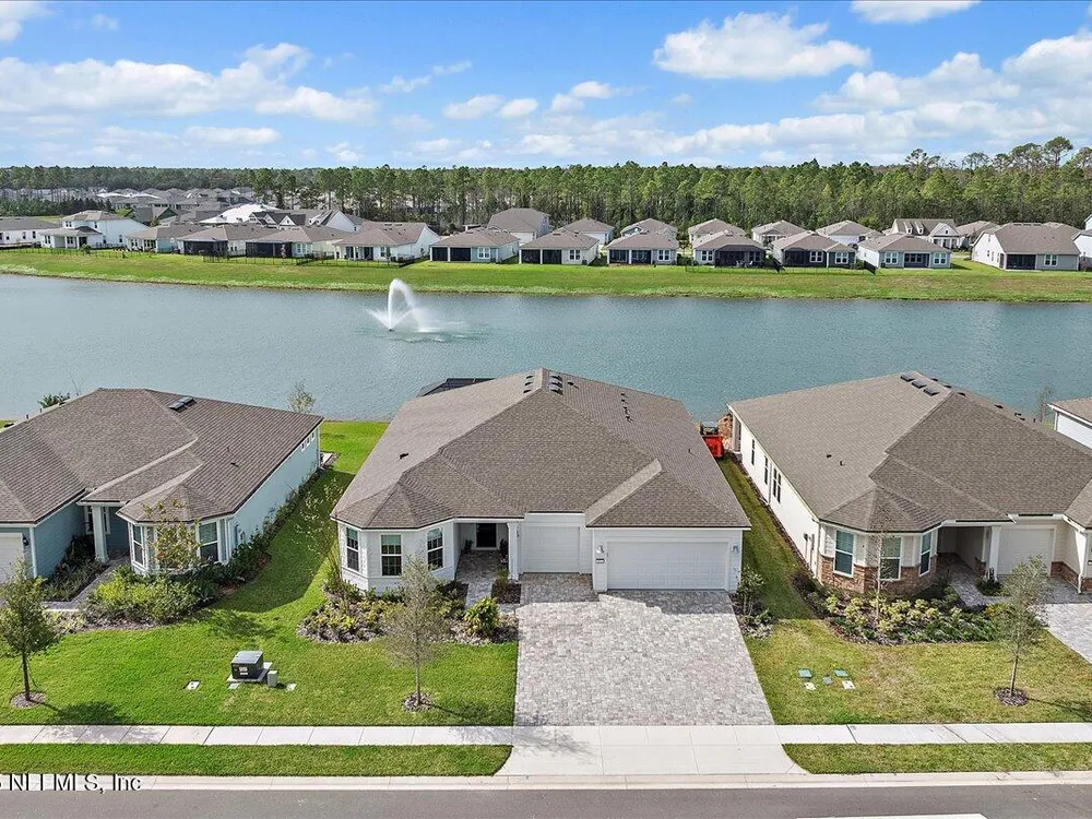 Rare opportunity to own a renown estate home on a breathtaking WATER lot! Built with over $250,000 in upgrades on a premier homesite valued at more than $250,000, this stunning residence blends timeless elegance with modern design. The open floor plan is anchored by an extended gathering room with pocket sliding doors that seamlessly connect indoor living to the screened lanai and expansive patio overlooking the tranquil water. Designer hardwood floors & top-of-the-line tile flow throughout, complementing the chef's kitchen w/ highest-level 42'' cabinetry, gourmet appliances including convection oven, beverage refrigerator & a large island perfect for entertaining. Sophisticated details abound—tray ceilings, crown molding, upgraded baseboards, motorized shades, a designer front door & show-stopping lighting. Upgrades include central vac, attic with pull-down stairs, a 4' extended garage & more. This meticulously designed home offers luxury, comfort & unmatched water view. A must see. Del Webb Nocatee, the newest 55+ community where luxury living meets unparalleled amenities including: resort pools, spa tub, pickle ball (over 300 members), tennis, bocce, billiards, a full service restaurant and bar, ballroom, fitness center, community garden, kayak launch to the intracoastal etc. If that is not enough, you can enjoy all that the community of Nocatee has to offer just a few miles away on golf cart paths, including waterparks, concerts, food trucks, restaurants and shopping.