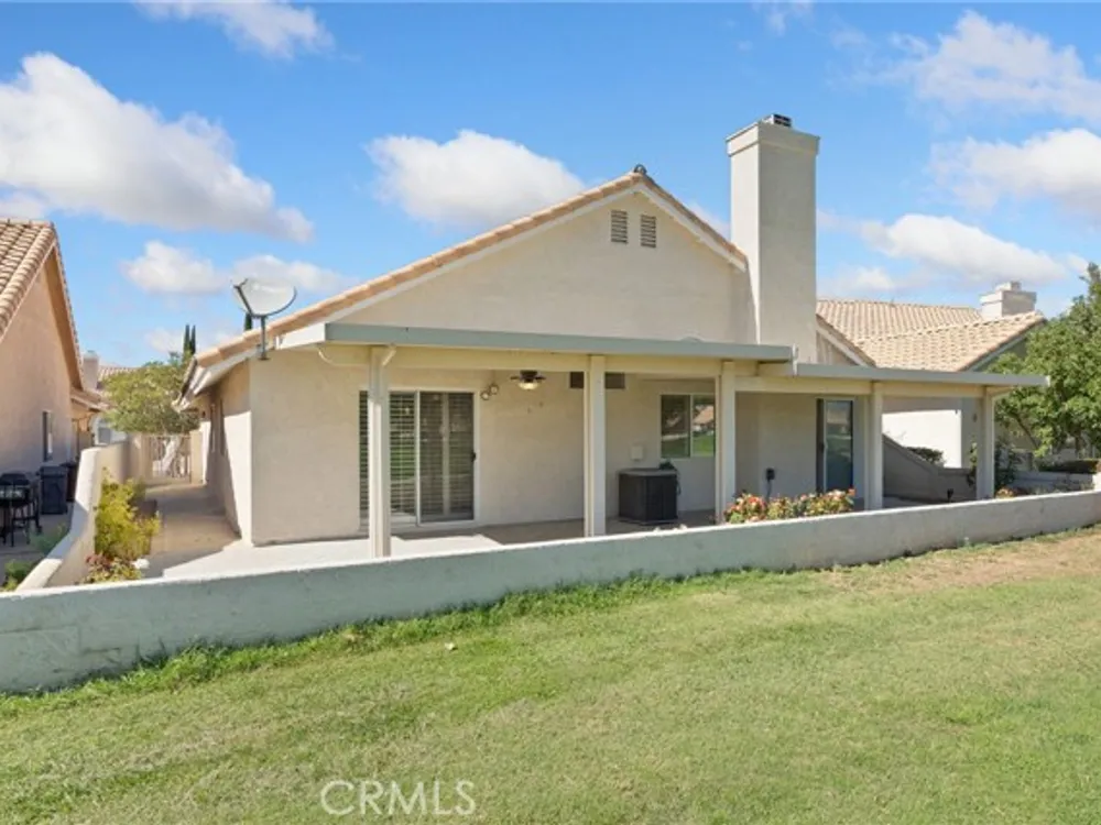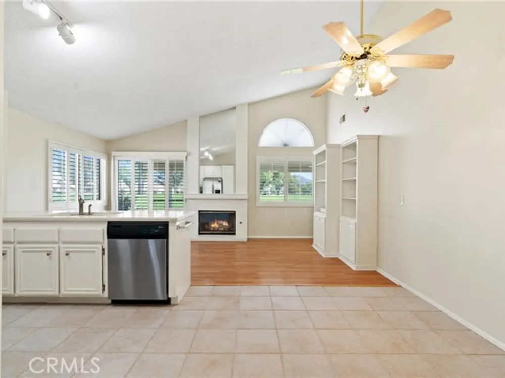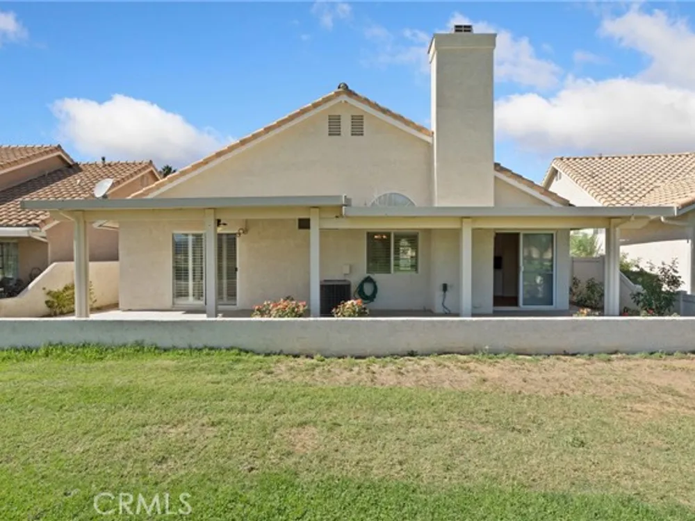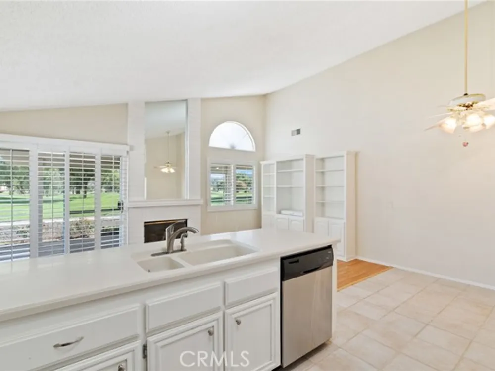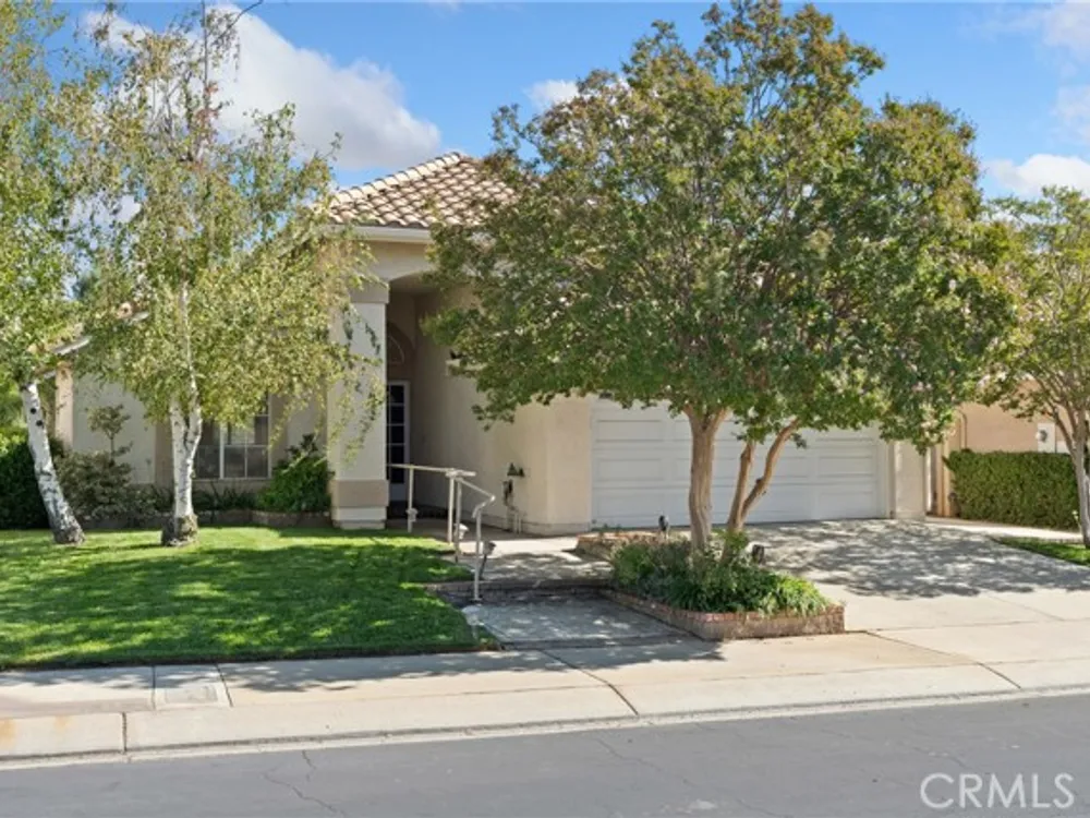Situated on the first hole of the stunning Sun Lakes golf course, this Riviera model home offers beautiful views and a thoughtfully designed layout. The residence features wood laminate flooring throughout the living areas and bedrooms, complemented by ceramic tile in the entry, kitchen, hallways, and baths. Plantation shutters in the family room and primary suite add a touch of elegance. The kitchen is finished with Corian countertops, while the remodeled primary bath boasts dual sinks, Corian counters, and a custom-tiled shower. A versatile sitting area off the primary suite can be used as an office, reading nook, or easily converted into a third bedroom. The primary also includes a walk-in closet and sliding doors that open to the back patio overlooking the captivating golf course view. Outdoor living is enhanced with an Alumawood patio cover and tiled patio flooring, creating a perfect space to relax or entertain. The garage provides ample storage with built-in cabinets and an epoxy floor finish. Located in the highly desirable Sun Lakes Country Club, a 55+ guard-gated community, residents enjoy two golf courses, three clubhouses, multiple pools and spas (including an indoor pool), fitness centers, tennis and pickleball courts, dining, and a vibrant calendar of activities. In