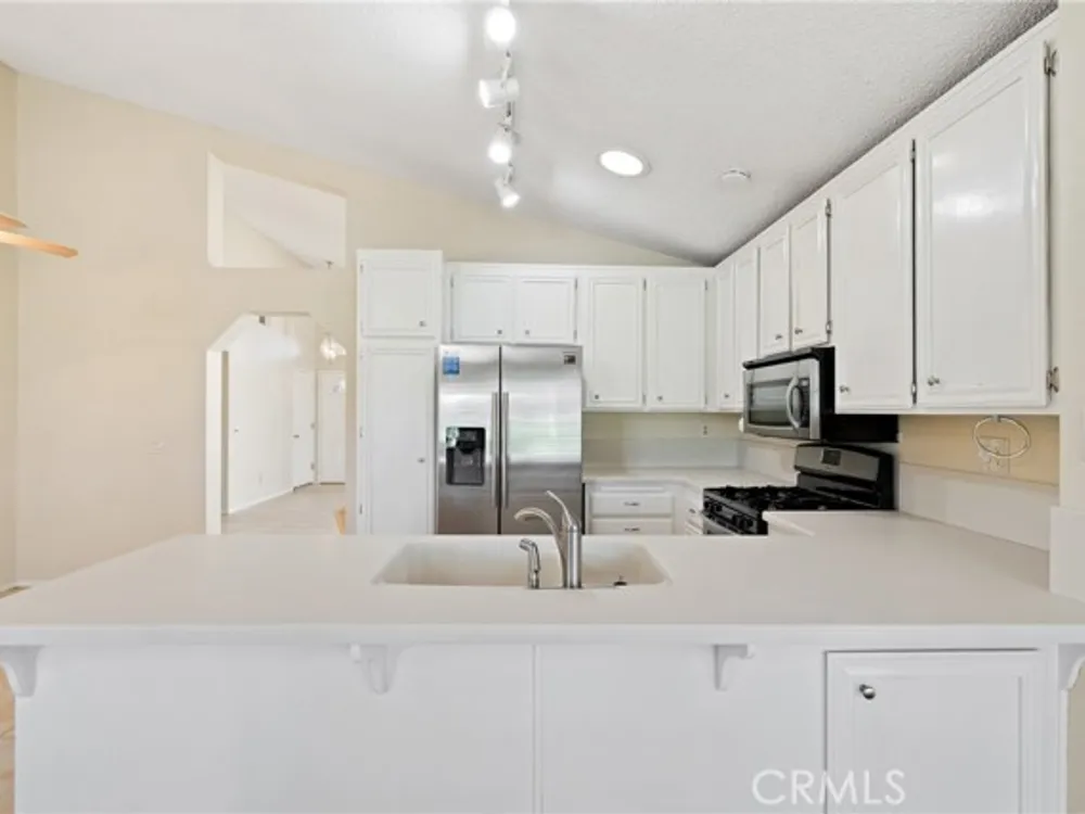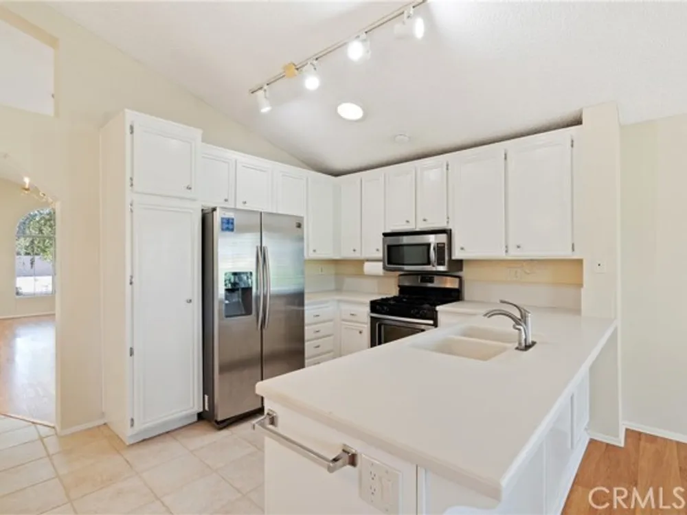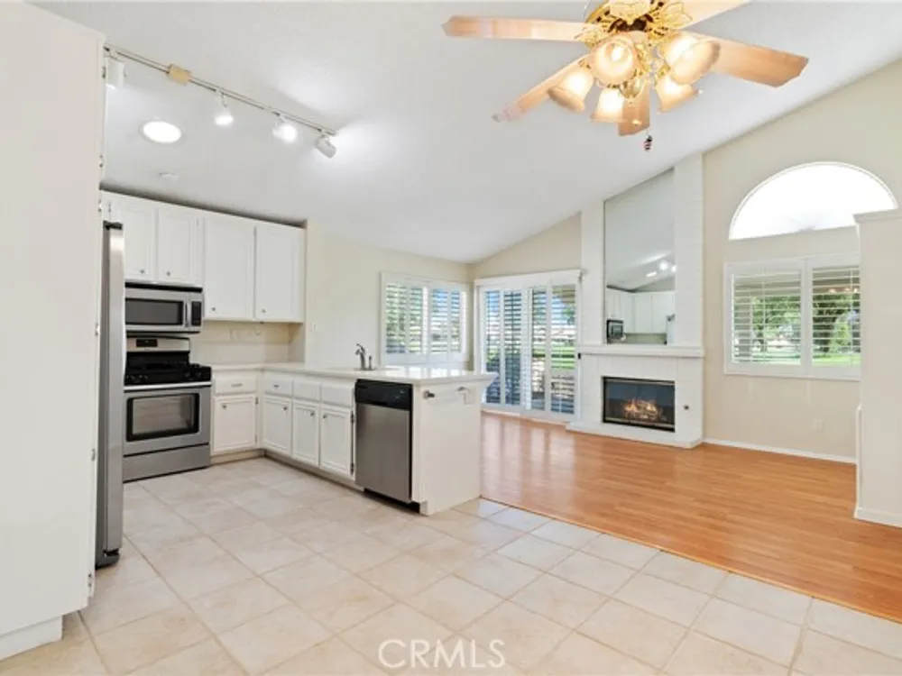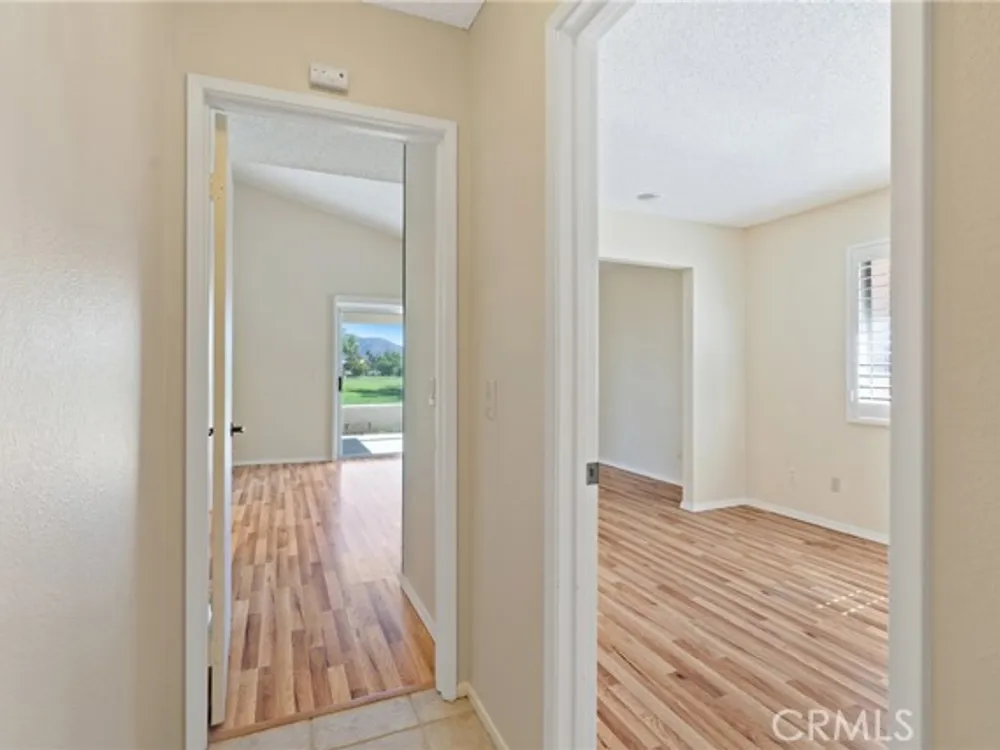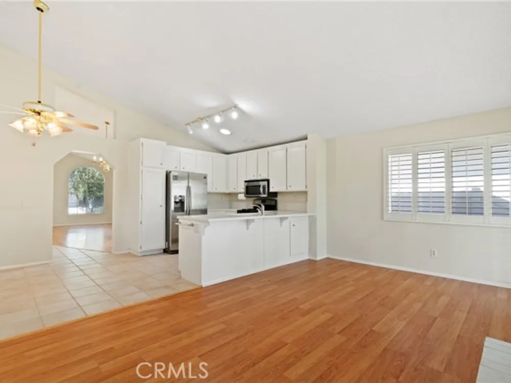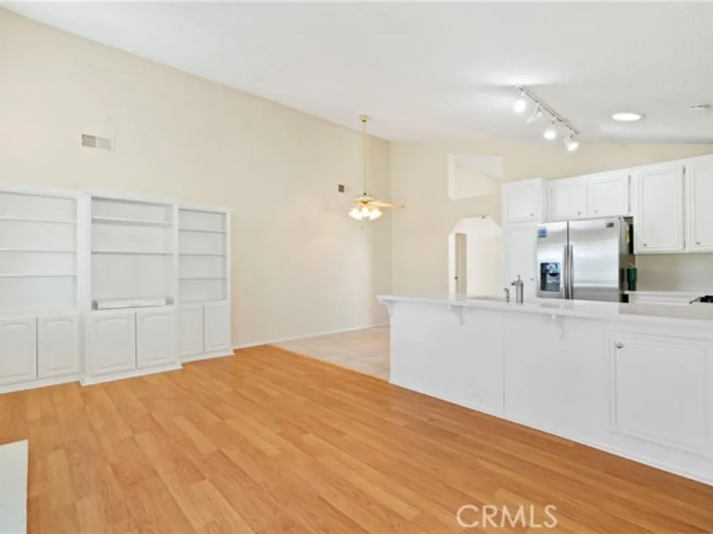 Situated on the first hole of the stunning Sun Lakes golf course, this Riviera model home offers beautiful views and a thoughtfully designed layout. The residence features wood laminate flooring throughout the living areas and bedrooms, complemented by ceramic tile in the entry, kitchen, hallways, and baths. Plantation shutters in the family room and primary suite add a touch of elegance. The kitchen is finished with Corian countertops, while the remodeled primary bath boasts dual sinks, Corian counters, and a custom-tiled shower. A versatile sitting area off the primary suite can be used as an office, reading nook, or easily converted into a third bedroom. The primary also includes a walk-in closet and sliding doors that open to the back patio overlooking the captivating golf course view. Outdoor living is enhanced with an Alumawood patio cover and tiled patio flooring, creating a perfect space to relax or entertain. The garage provides ample storage with built-in cabinets and an epoxy floor finish. Located in the highly desirable Sun Lakes Country Club, a 55+ guard-gated community, residents enjoy two golf courses, three clubhouses, multiple pools and spas (including an indoor pool), fitness centers, tennis and pickleball courts, dining, and a vibrant calendar of activities. In