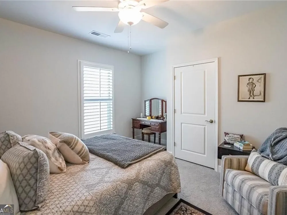 LEASE PURCHASE AVAILABLE|| THE MOST SOUGHT-AFTER 55+ COMMUNITY IN GEORGIA || || SPACIOUS LOFT WITH FULL BEDROOM, FULL BATH, AND DEN || || SCREENED BACK PATIO + ROCKING CHAIR FRONT PORCH || || FLAT, WALKABLE CUL-DE-SAC LOT || || PRIVATE WOODED BACKYARD WITH SUNRISE VIEWS || || RESORT-STYLE CLUBHOUSE + AMENITIES || || GARAGE CAN HOLD 2 CARS PLUS A GOLFCART || ** What You'll See ** From the moment you walk through the door, you'll notice LIGHT-FILLED ROOMS and PLANTATION SHUTTERS, carefully chosen FINISHES, and an OPEN FLOOR PLAN designed to welcome and impress. CUSTOM KITCHEN WITH QUARTZ COUNTERS gleam under recessed lighting, while the SCREENED BACK PORCH opens to a peaceful, WOODED VIEW where you can catch the sun rising each morning or grill with friends. ** What You'll Hear ** Wake to the tranquil sounds of nature in your PRIVATE BACKYARD. Your home will be your escape with a layout that provides everyone with their own space. The main floor features the primary suite and guest bedroom, 2 full baths, and an office/flex while upstairs gives you a loft with a spacious 3rd bedroom and 3rd full bath. The loft even features a large walk-in, climate controlled storage room! * What You'll Feel ** Feel the WARMTH of natural sunlight on your skin as you sip coffee on the ROCKING CHAIR FRONT PORCH. Inside, enjoy the tactile comfort of HIGH-END MATERIALS, and the peace of mind that comes with a home thoughtfully designed for ease and elegance. ** What You'll Experience ** This is more than a home it's a lifestyle. Whether hosting guests in your CUSTOM HOME, mixing drinks at your WET BAR in the BUTLER'S PANTRY, or unwinding in your PRIVATE SUITE, you'll experience both luxury and freedom. And don't forget when you tour this home, make sure to stop by the clubhouse to truly understand the incredible RESORT LIVING that awaits. HOA dues paid monthly at $375.