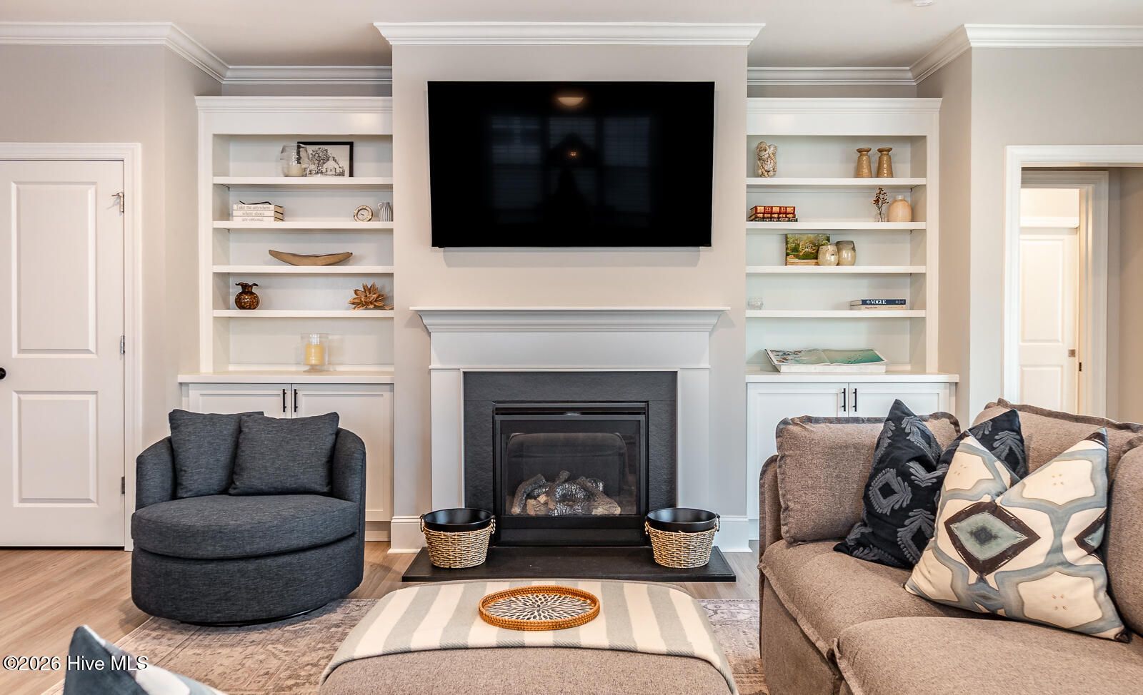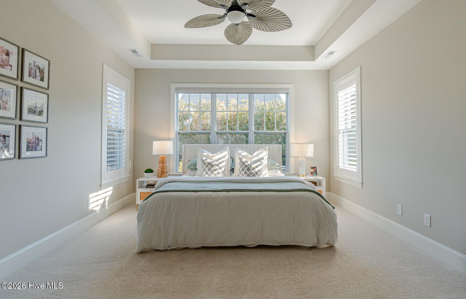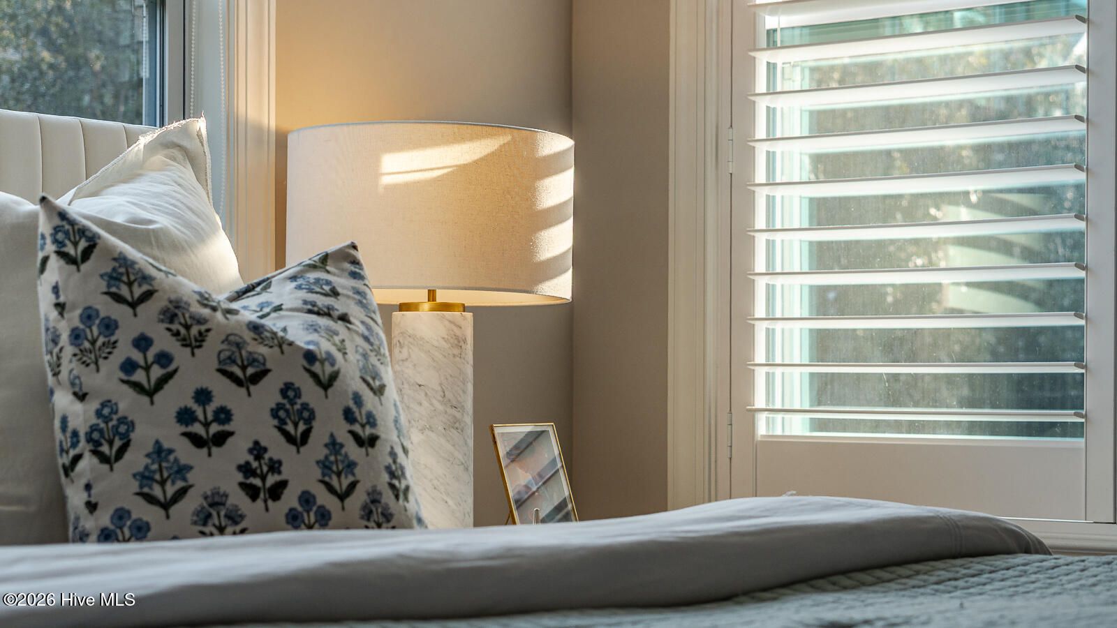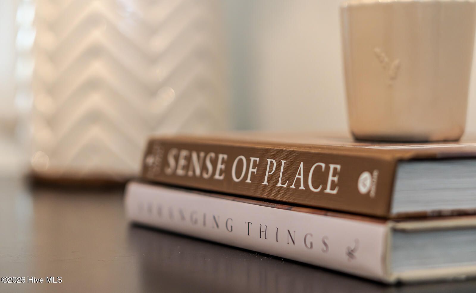 - Master Downstairs, Walk-In Closet(s), Tray Ceiling(s), High Ceilings, Entrance Foyer, Bookcases, Kitchen Island, Ceiling Fan(s), Pantry, Walk-In Shower, Blinds, Built-in Features