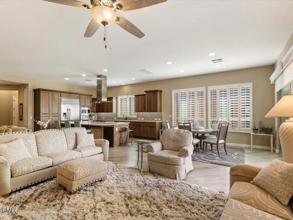 The Almanac says snow is on the way... but not for you! After years of hard work, it's time to trade shovels for sunshine and start living the resort lifestyle you've earned. Encanterra delivers the prestige and amenities of a $1M+ community—without the overwhelming price tag. Imagine mornings at the heated pools, afternoons at the spa or on the pickleball courts, and evenings dining at the Clubhouse with chef-inspired menus or enjoying wine tastings and concerts on the lawn. With fitness classes, tennis, concierge services, and endless social clubs, every day feels like vacation.This move-in-ready home is designed for seamless indoor/outdoor living, featuring GE Monogram appliances, plantation shutters, and even an extra golf cart garage. Washer, dryer, and refrigerator are included.