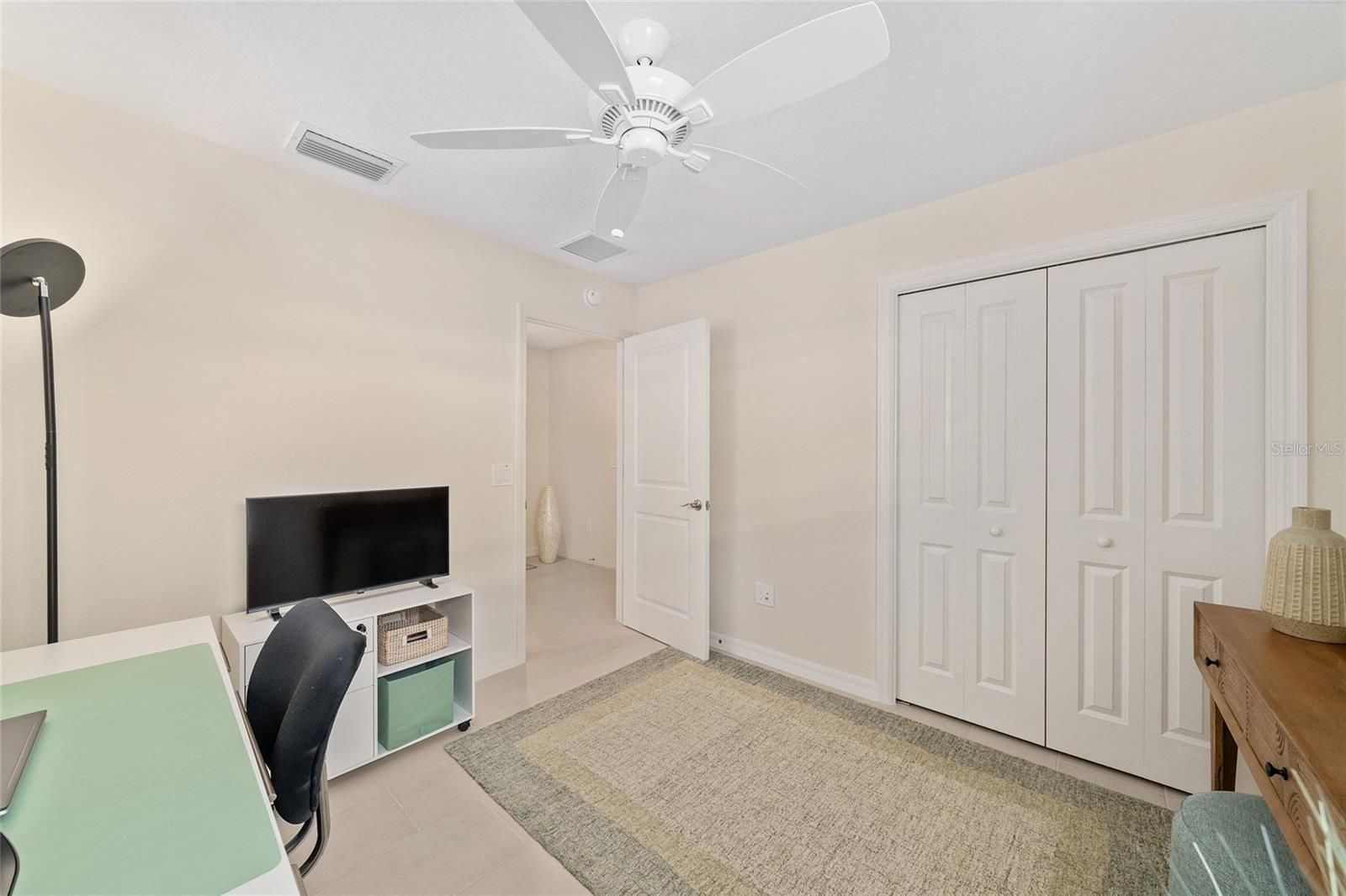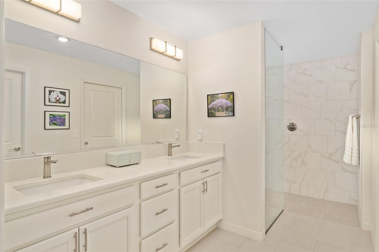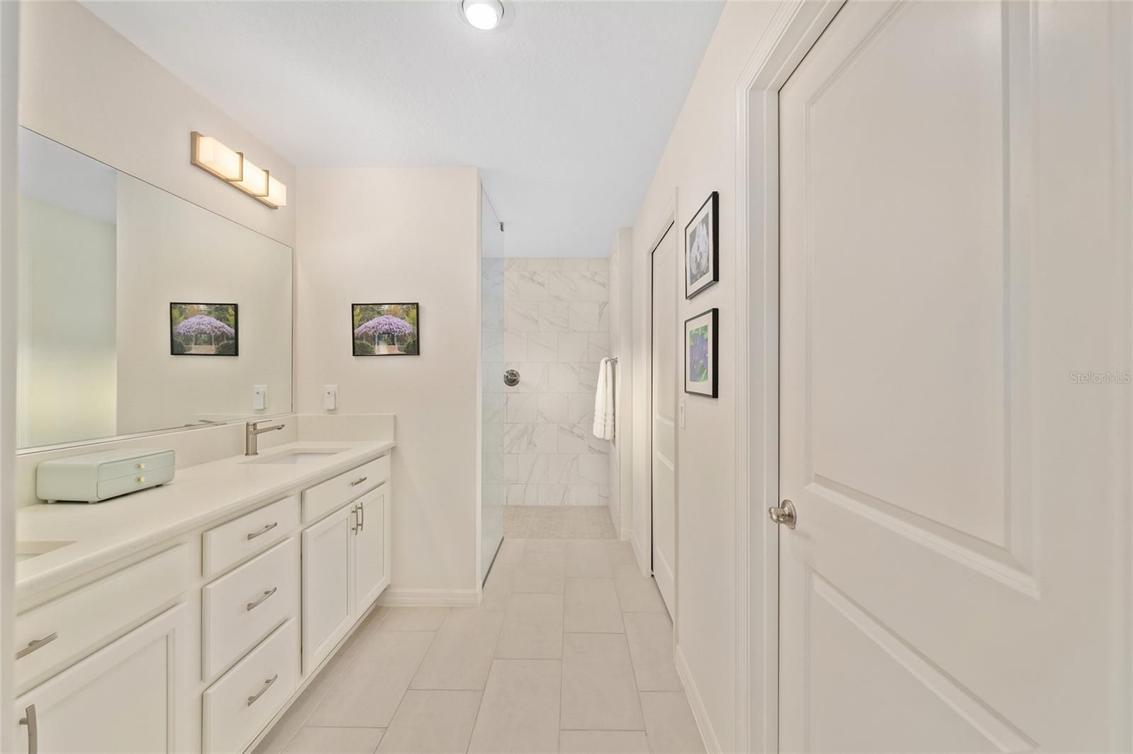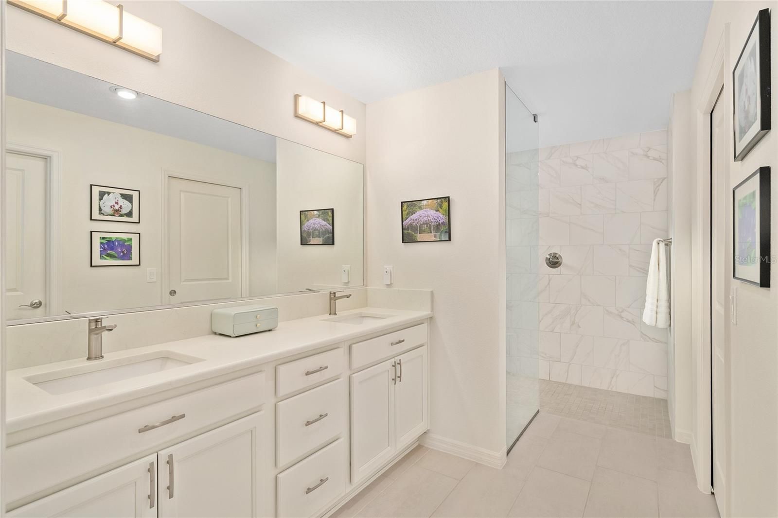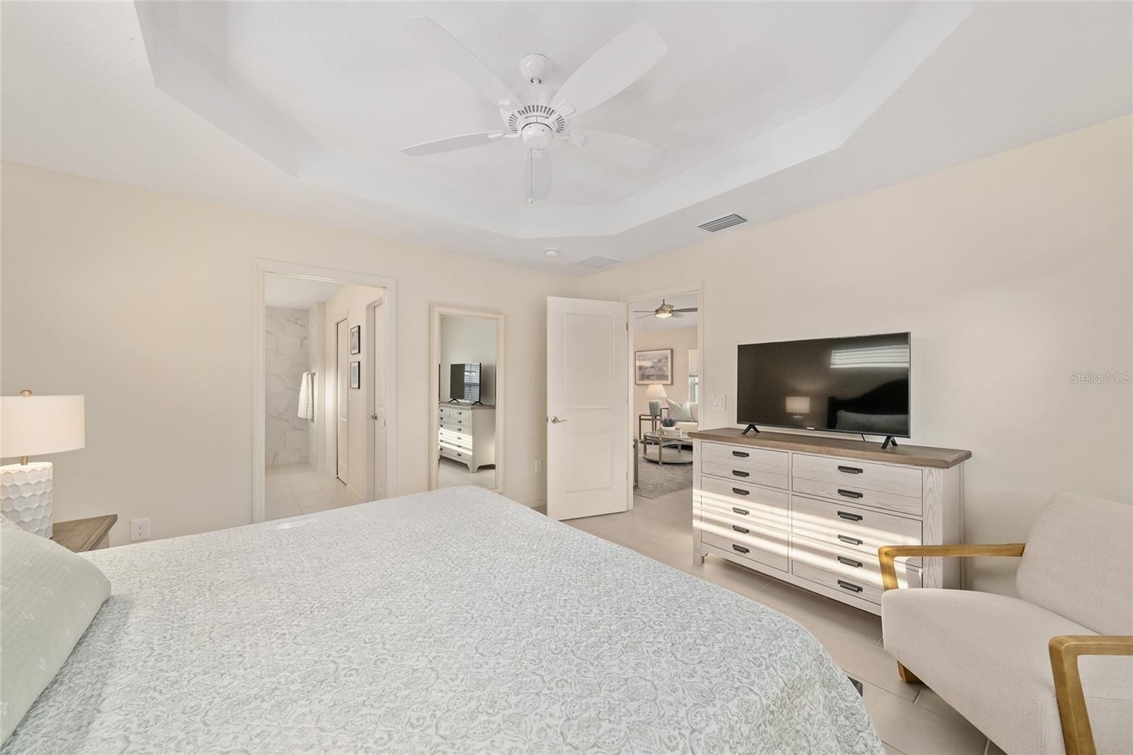BETTER THAN NEW! This 2021 block-and-stucco 3-bedroom, 2-bath Charlotte Courtyard villa with a TWO-CAR GARAGE featuring separate doors —sold TURNKEY, As you enter you will notice TILE FLOORING throughout—NO CARPET anywhere, VAULTED CEILINGS and UPGRADES GALORE to include gutters, a Pegasus whole-home WATER FILTRATION and SOFTENER SYSTEMS, fresh interior and exterior paint, modern lighting and ceiling fans, and LED quiet garage door openers with battery backups. The kitchen and baths feature matching QUARTZ countertops, a full backsplash, and upgraded cabinetry with PULL-OUT SHELVING and a large pull out spice rack. Top-of-the-line Samsung Bespoke refrigerator, dishwasher, and microwave that match the cabinetry, create a sleek, contemporary look. The Primary bedroom features a TRAY CEILING, and primary bathroom features a large WALK-IN CLOSET, and DOUBLE SINK VANITY. This home also comes with the luxury of an INDOOR LAUNDRY ROOM equipped with WASH TUB. Sunshades upgraded from blinds add a polished touch, enjoy your lanai outback with a privacy wall that offers peaceful outdoor living. This villa pairs modern design with access to The Villages’ newest lifestyle destinations—TURNKEY, UPDATED, AND READY TO ENJOY! you will enjoy many nearby amenities including Eastport Town Square, several new golf courses, and Ezell Recreation Center (˜5 minutes) with putt-putt, organized pickleball, indoor gym, and ping pong. Also close to Southern Oaks Championship Golf Course, Sawgrass Grove with live music nightly, restaurants, and The Villages Produce, Mickey Lee Chip & Jubilee Putt-Putt courses, Homestead Recreation Center with the Boardwalk Nature Trail, and even the Astronomy Observation Pads.