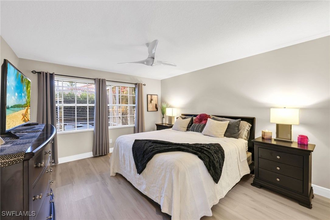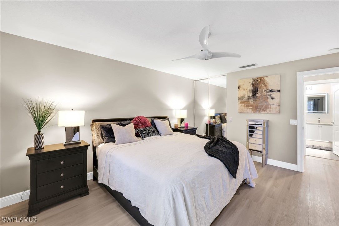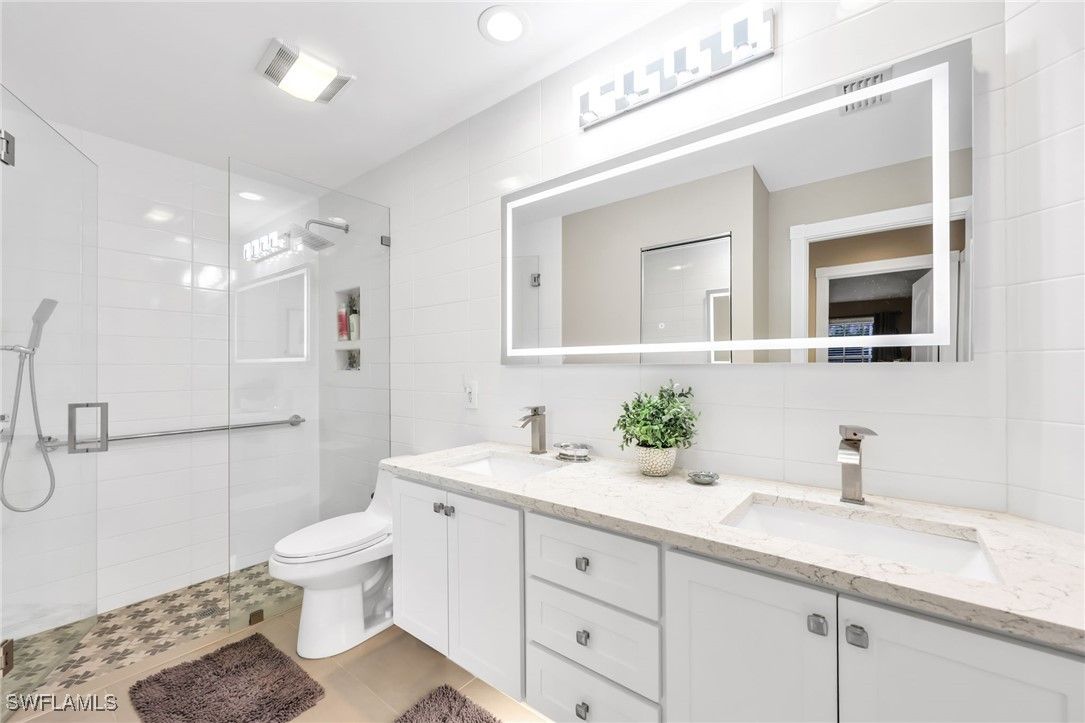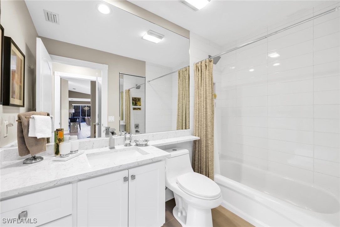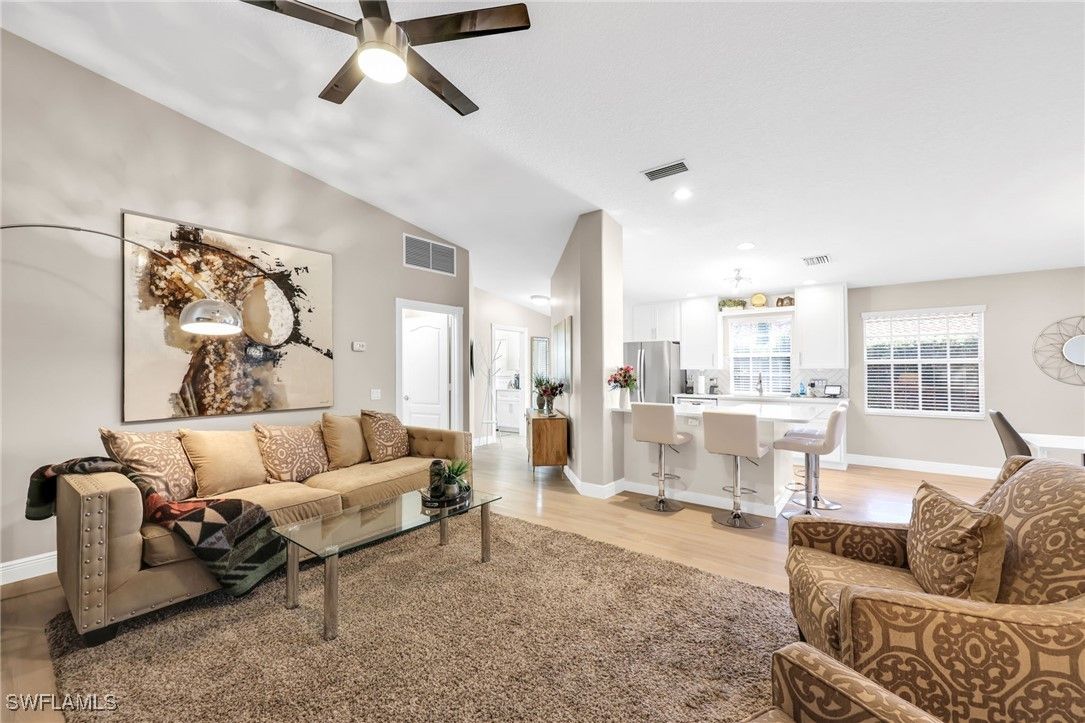 BUILT SOLID – Original DiVosta Capri with Exceptional Privacy. Experience refined Florida living in this beautifully remodeled and expanded Capri model, offering a rare blend of privacy, quality construction, and timeless elegance. A custom-built private patio provides a peaceful outdoor retreat, perfectly extending the living space. Truly move-in ready with no work required, this professionally landscaped home is ideally located near the front gate for added convenience and exclusivity. The residence borders a scenic walkway leading directly to a park and the community’s Town Center. Crafted with DiVosta’s renowned poured-concrete construction and 6-foot privacy wall, the home also features smooth-coat walls, custom-finished closet systems, and central vacuum. Added peace of mind comes from enhanced hurricane protection, including a custom hurricane-rated front door, accordion shutters, and a new roof (2021). Thoughtful upgrades are evident throughout. Quartz countertops enhance the kitchen, bathrooms, and laundry room, complemented by fresh designer paint and luxury plank flooring throughout. The spa-inspired bathrooms have been fully renovated with frameless glass enclosures and custom mirrors. The open-concept kitchen has been redesigned with new cabinet doors, upgraded hardware, stainless steel appliances, and a striking backsplash—ideal for both everyday living and entertaining. Every upgrade has been professionally executed with care, resulting in a home that offers comfort, style, and lasting quality. Located in the prestigious Island Walk community, residents enjoy gated, resort-style living with a grand Town Center clubhouse, resort and lap pools, state-of-the-art fitness center, tennis and pickleball courts, bocce, lawn bowling, croquet, and a putting green. Miles of scenic walking and biking paths wind through lakes and bridges, complemented by an active social calendar and exceptional on-site conveniences including a restaurant, post office, gas station, car wash, and salon services. Ideally situated just minutes from upscale shopping, fine dining, and Naples’ world-renowned beaches.