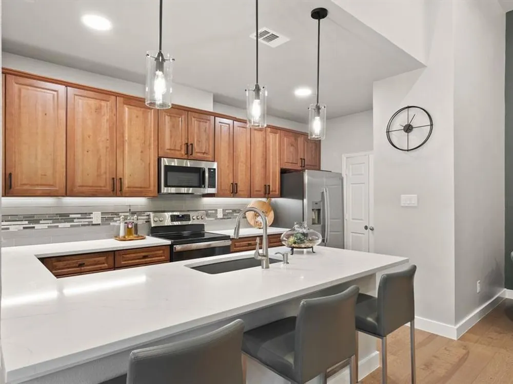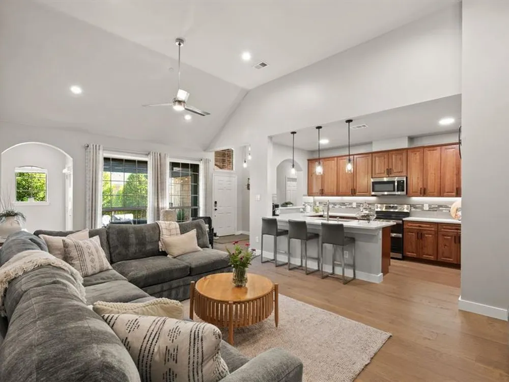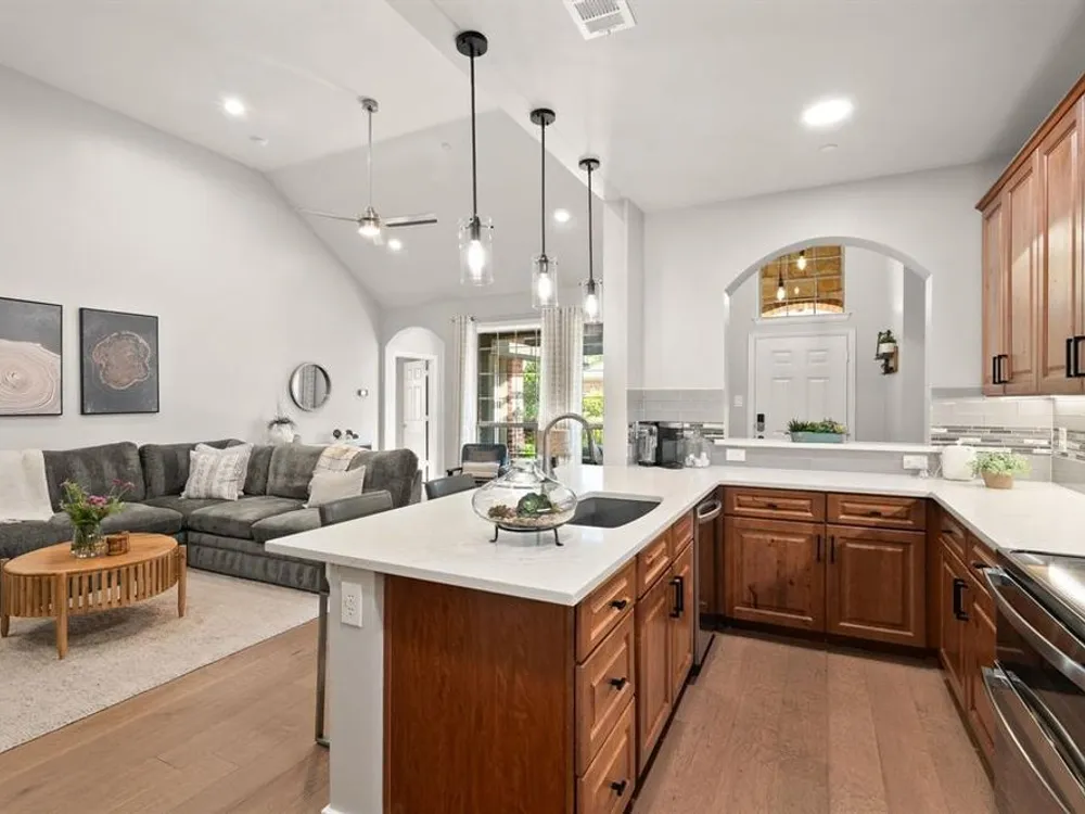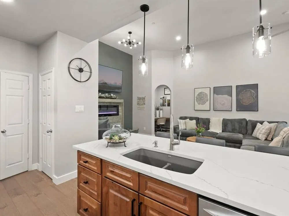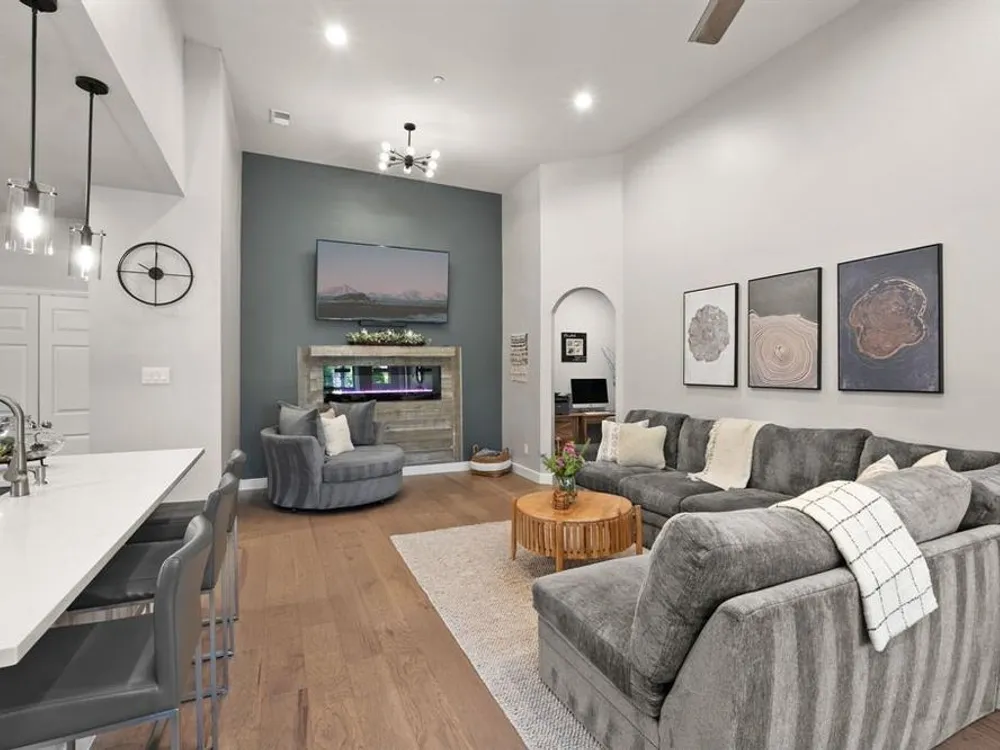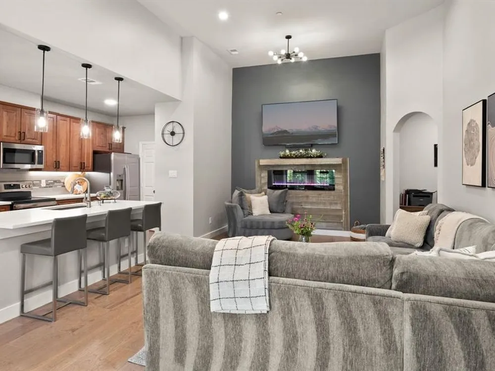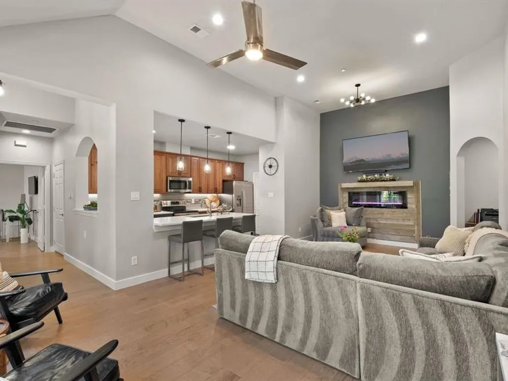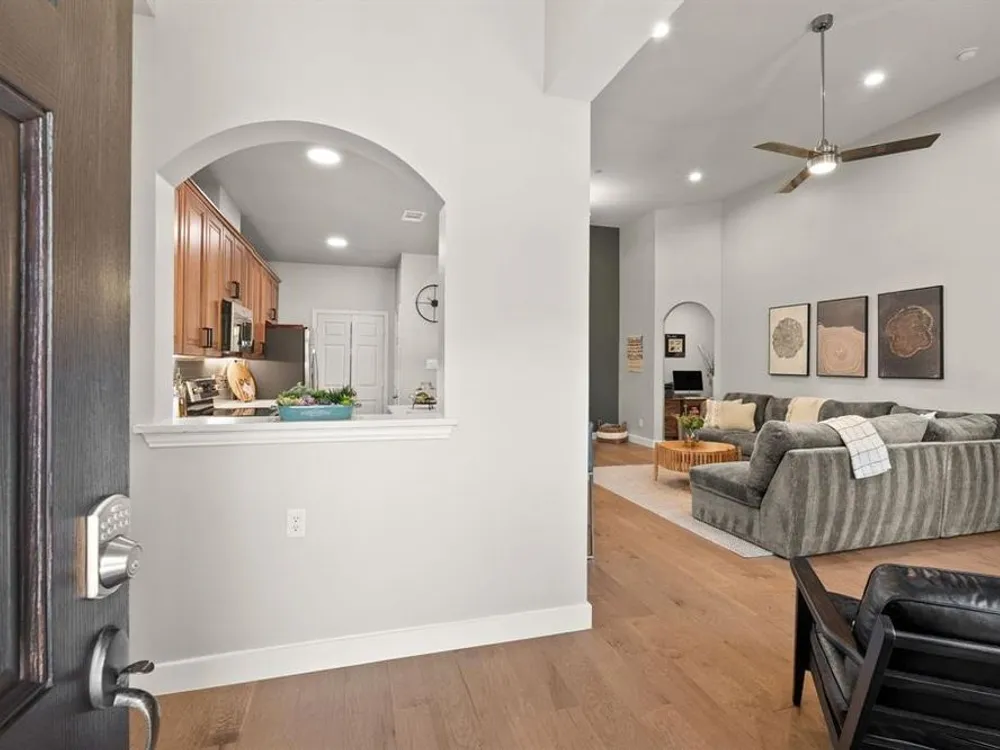 Beautifully updated townhome on a quiet corner lot with all the modern comforts! THIS IS NOT AN AGE RESTRICTED COMMUNITY. Step into this stunning property featuring a spacious open floorplan, bright windows, & neutral colors. Enjoy the warmth of NEW WOOD FLOORING and fresh baseboards throughout. The kitchen is a chef’s delight with an updated microwave, range, dishwasher, sleek countertops, modern sink, and eye-catching backsplash—all enhanced by elegant light fixtures and recessed lighting. Comfort meets efficiency with a new hot water heater, AC UNIT, and programmable blinds for privacy and convenience. A cozy fireplace adds charm to both living and dining spaces, while the inviting veranda offers the perfect setting for morning coffee or evening gatherings. The owners retreat features a gorgeous well-lit bath designed for relaxation and style. This home is move-in ready with thoughtful updates in every corner. Just steps to the PARK with a playground & basketball court. Enjoy the neighborhood POOL! Act fast, this beauty won’t last long in this fabulous Villas in the Park neighborhood.