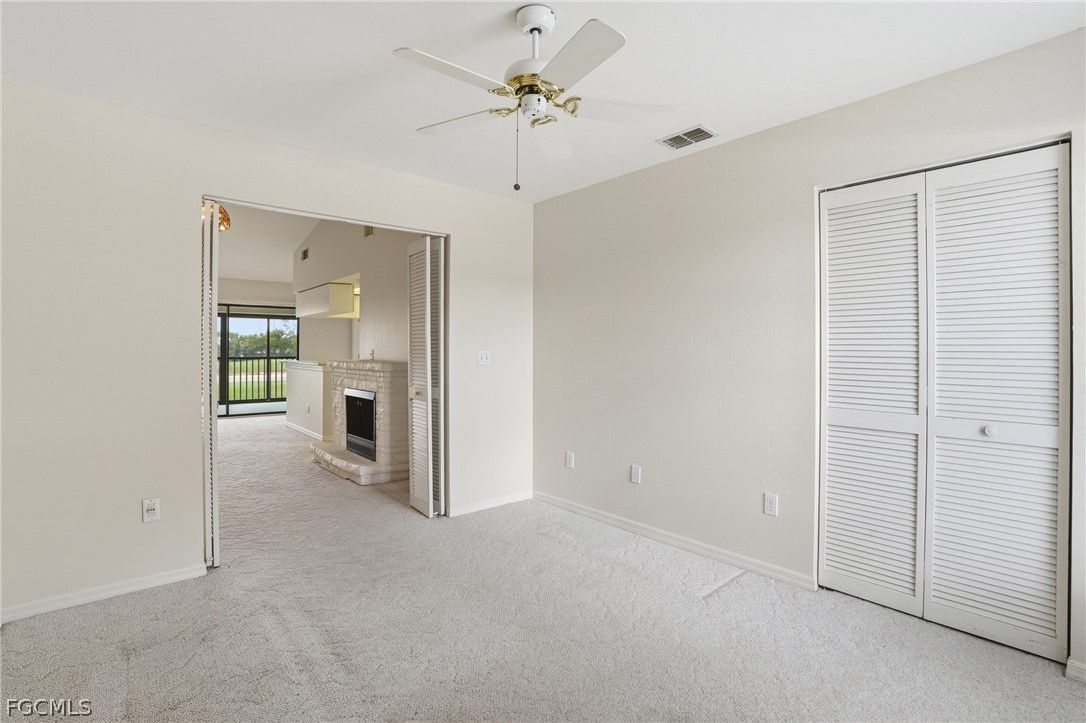 Welcome to Oakmont Village! This desirable 2nd-floor condo at 15785 Trailwinds Drive #222 offers peaceful golf course views from your private screened balcony—perfect for morning coffee or evening relaxation. Inside, you’ll find a spacious layout with a generously sized kitchen featuring ample cabinetry and workspace, ideal for cooking and entertaining. The living area is enhanced by a cozy fireplace, adding warmth and charm. Additional highlights include a covered carport, dedicated golf cart port, and extra storage located just outside the unit—all conveying with the sale. Enjoy comfortable Florida living in a well-maintained community close to shopping, dining, and recreation. Living in Oakmont Village means you’re immersed in a vibrant community centered around top-tier golfing, scenic lakes, and a richly social lifestyle. Don’t miss this opportunity to combine comfort, view-rich living, and resort-style amenities.
