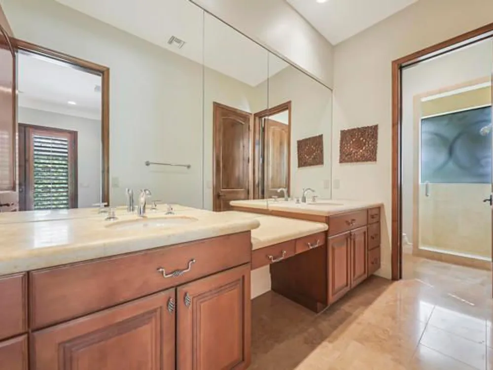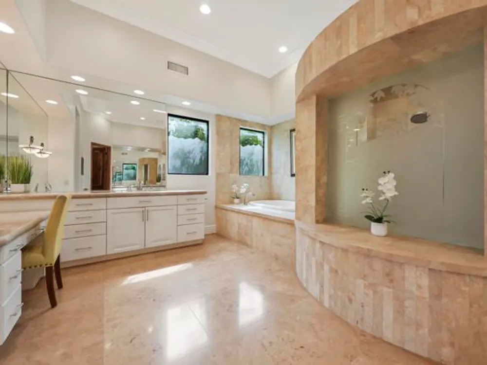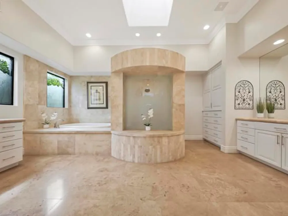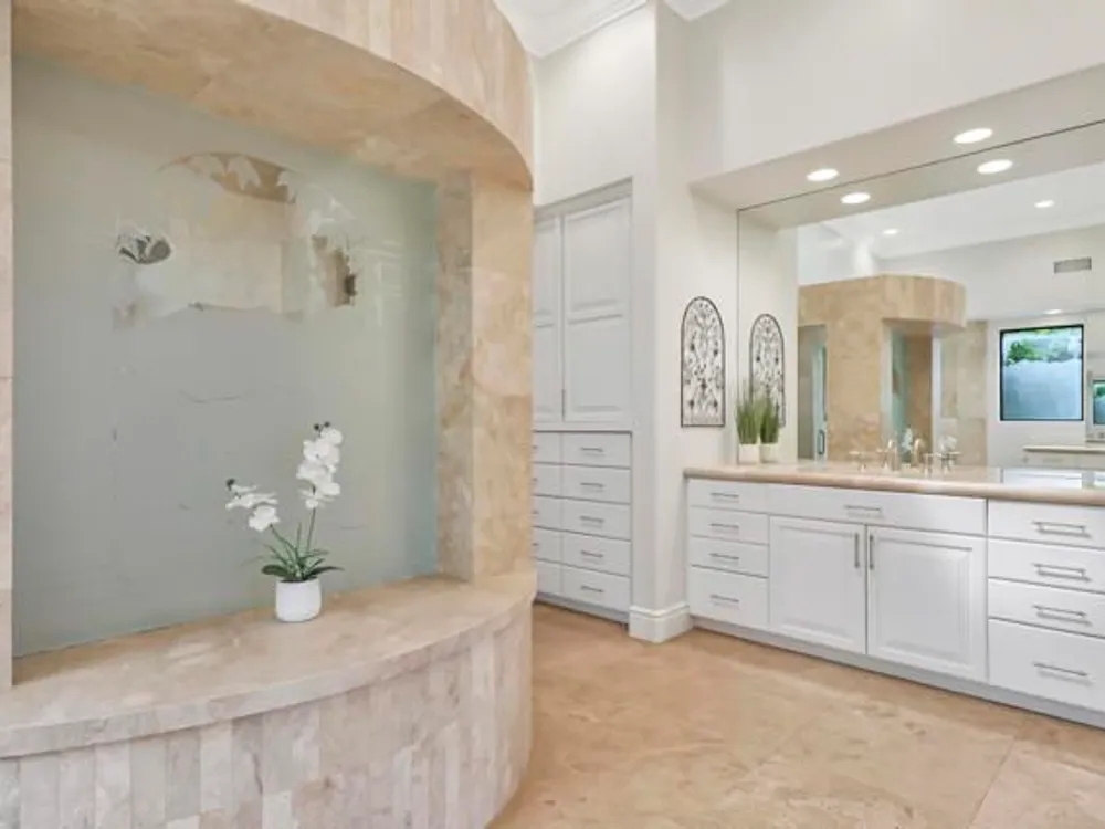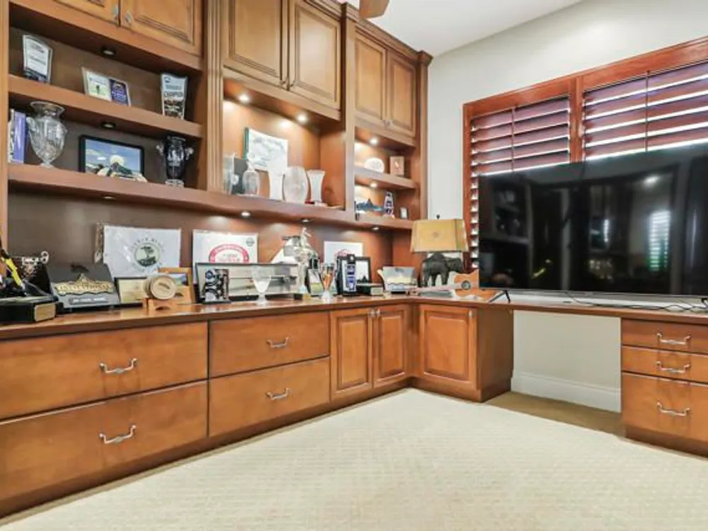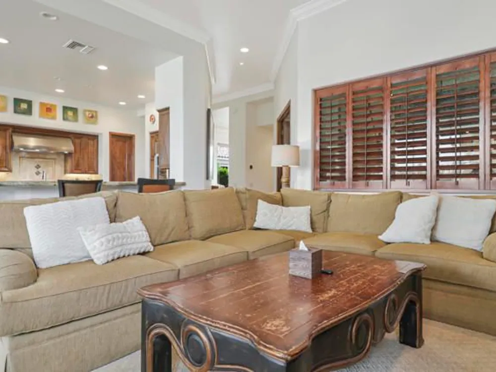 Set against a spectacular lakeside backdrop with breathtaking mountain and golf course views on the 11th hole of the Weiskopf Course, this stunning home feels like a model. Offering approximately 4,828 sq. ft. of pure luxury, it features four bedrooms, including an office, 4.5 baths, and a private two-room casita. Designed for both comfort and style, the open floor plan boasts a spacious gourmet granite island kitchen with Wolf & Sub-Zero appliances, a granite sunken bar showcasing the incredible views, and elegant 24-inch travertine floors. Additional highlights include fresh new paint inside and out, electric shades, and a private gated entry courtyard with tranquil water features.The resort-style backyard is an entertainer's dream, complete with pavers, a saltwater infinity pool and spa, an outdoor fireplace, a fire pit, a built-in BBQ, and more. The home comes fully furnished and includes a golf cart--making it completely move-in ready. With low HOA fees and an unbeatable location, this extraordinary home offers the ultimate lifestyle. Call now to schedule your private showing of this spectacular property!