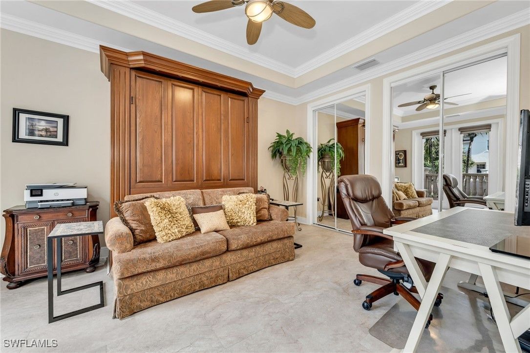 PRICED TO SELL!!! Avellino Isles in Vineyards – Luxurious Penthouse Suite with Private Elevator! END UNIT. Experience elegant living in this spacious penthouse-style coach home, located in the highly sought-after Avellino Isles community within the Vineyards. This end unit offers panoramic lake and fountain views and features 3 bedrooms plus a den (optional fourth bedroom with closet), 3.5 bathrooms, and a 2-car garage. The expansive, screened lanai is ideal for entertaining, while the interior showcases timeless architectural details including coffered ceilings, crown molding, and custom window treatments. Additional features include impact-resistant windows and electric hurricane shutters for peace of mind. Avellino Isles is the Vineyards’ premier coach home community, privately gated within the Vineyards main gates. Residents enjoy exclusive access to a newly renovated 5,600 sq. ft. clubhouse offering a resort-style infinity-edge pool and spa, grand salon, fitness center, library, and outdoor cabana. Vineyards Country Club offers optional private membership complete with 36 holes of Championship Golf, 12 Har-Tru Tennis Courts, Pickle ball & Bocce. Resort Style Pool & Spa. New Outside Bar area near pool. New Wellness & Spa Facility with Fitness Center, Café, Halotherapy Salt Room, Massage and Salon Services, Salt Water Lap Pool.