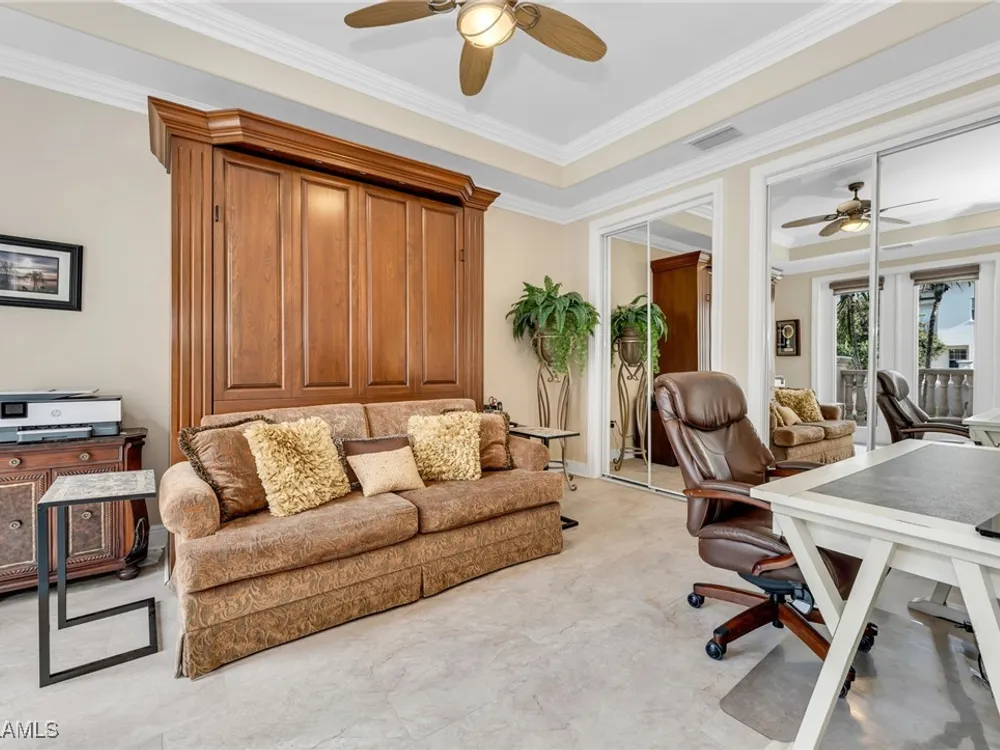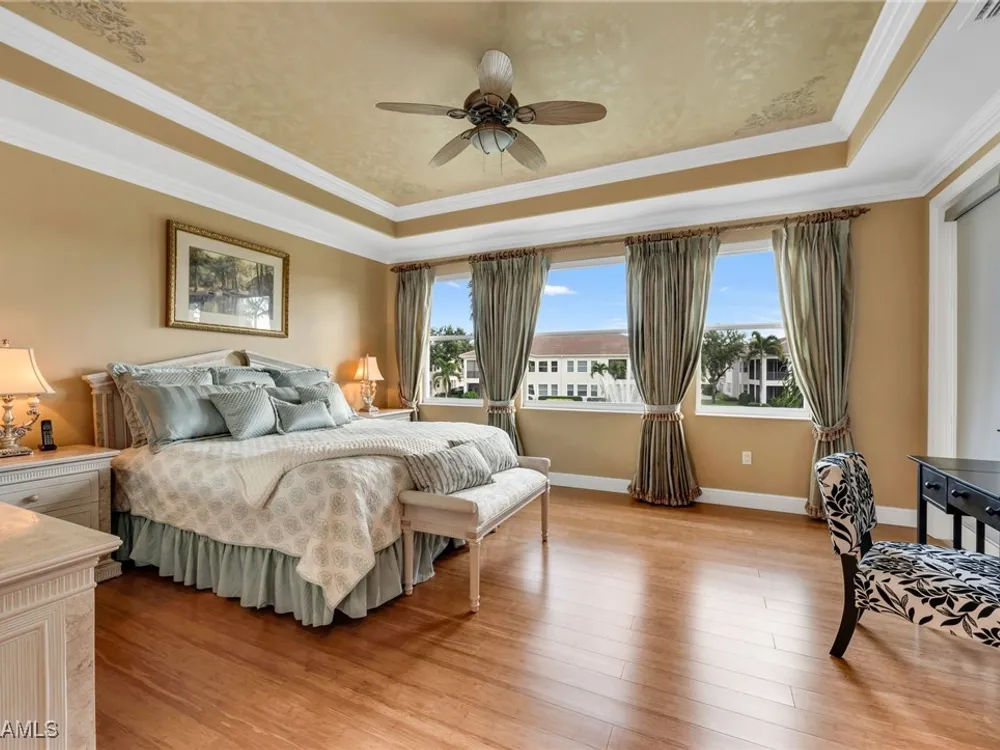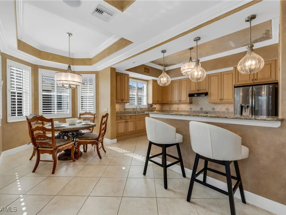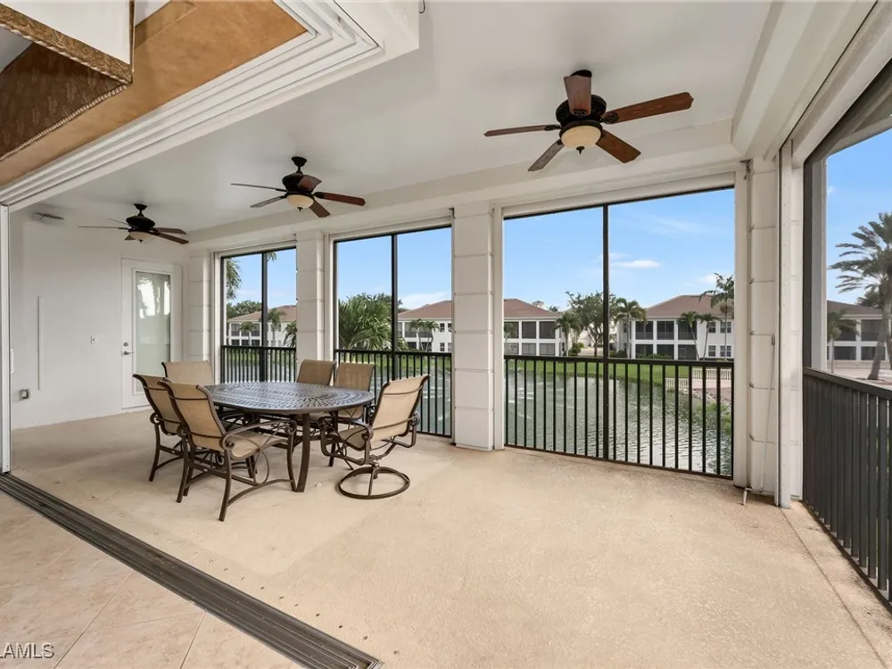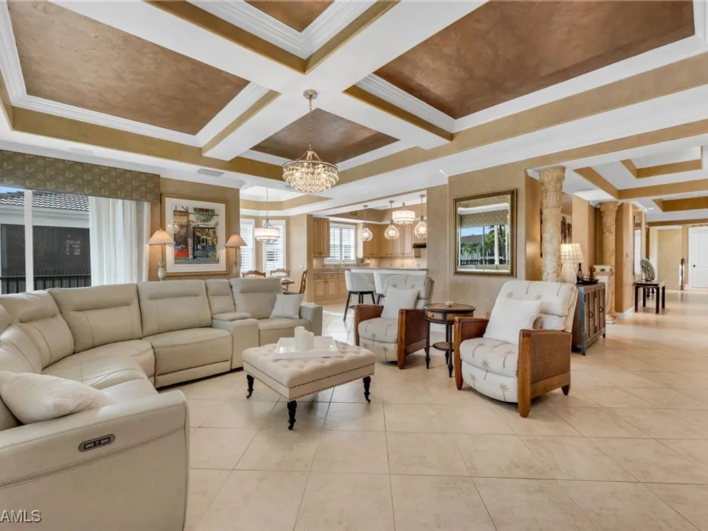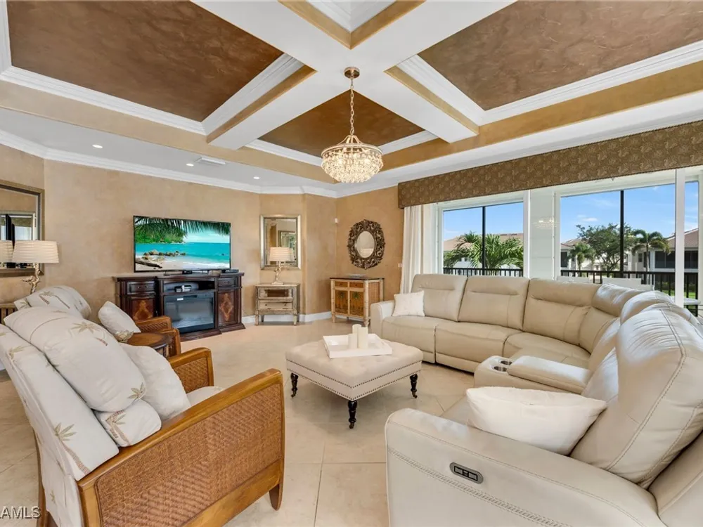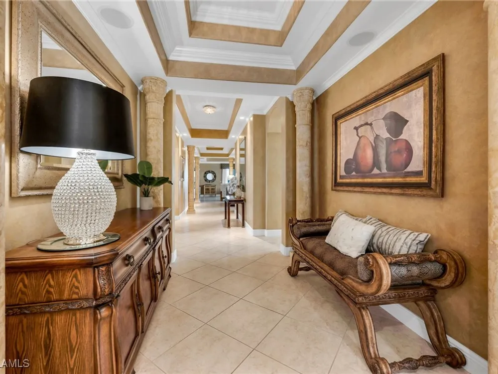 Avellino Isles in Vineyards – Luxurious Penthouse Suite with Private Elevator! END UNIT. Experience elegant living in this spacious penthouse-style coach home, located in the highly sought-after Avellino Isles community within the Vineyards. This end unit offers panoramic lake and fountain views and features 3 bedrooms plus a den (optional fourth bedroom with closet), 3.5 bathrooms, and a 2-car garage. The expansive, screened lanai is ideal for entertaining, while the interior showcases timeless architectural details including coffered ceilings, crown molding, and custom window treatments. Additional features include impact-resistant windows and electric hurricane shutters for peace of mind. Avellino Isles is the Vineyards’ premier coach home community, privately gated within the Vineyards main gates. Residents enjoy exclusive access to a newly renovated 5,600 sq. ft. clubhouse offering a resort-style infinity-edge pool and spa, grand salon, fitness center, library, and outdoor cabana. Vineyards Country Club offers optional private membership complete with 36 holes of Championship Golf, 12 Har-Tru Tennis Courts, Pickle ball & Bocce. Resort Style Pool & Spa. New Outside Bar area near pool. New Wellness & Spa Facility with Fitness Center, Café, Halotherapy Salt Room, Massage and Salon Services, Salt Water Lap Pool.
