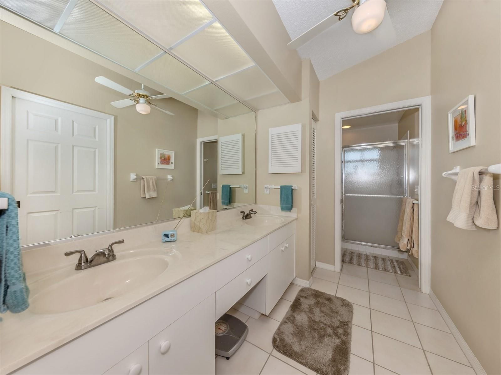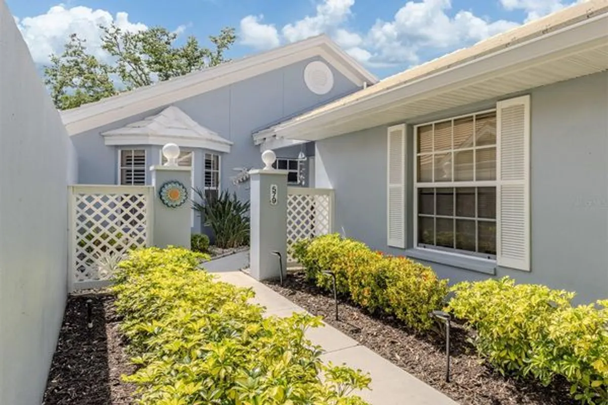Golfers, tennis and pickleball players, swimmers, and/or all just seeking to relax, this complete turnkey listing is not to be missed. A beautiful, bright and spacious two-bedroom plus a bedroom or den, free-standing villa with a two-car attached garage is move-in ready! The garage has a number of cabinets, a workbench and a large modern second refrigerator. Feel comfortable with a new air-conditioner, recent (2017) roof and a hurricane-impact door that opens from the kitchen to the newly paver extensive patio, holding tables, chairs and grills. The ceramic-tiled kitchen has modern appliances, including a recent Bosch dishwasher, solid Corian counters, a food-prep island and complete cabinetry holding utensils, dishes, towels, napkins, along with a well-lit breakfast nook. The open and spacious, high-ceiling, furnished dining/living area is ideal for entertaining. The west-facing Florida room, surrounded by large sliding doors, overlooks a substantial pond, fountain, mature plantings and beautiful trees. Sunsets from this room, which holds a full-sized sleeper sofa, are a delight to experience. The large primary bedroom suite, with a substantial closet, has a bay window overlooking the pond. The windowed primary bath has a large shower with bench, a dual vanity sink counter and a large walk-in closet. The guest bedroom has a large bay window and en-suite bath that has a shower with tub and window, as well as a fully stocked linen closet. The third bedroom or den has cabinetry with built-ins for a dresser and desk, along with a light-filled atrium that holds outdoor plantings that can be seen from another full-sized sleeper sofa in the room or from the main living/dining area. In the popular gated, maintenance-free community of Clubside Villas at the Plantation, with its clubhouse and completely refurbished (2022) heated saltwater pool, this home is immediately adjacent to the Plantation Golf and Country Club, with two 18-hole golf courses, tennis courts, pickleball courts and many other activities. Optional memberships are available. Nearby is Wellen Park with new shops, restaurants and the spring training home of the Atlanta Braves at Cool Today Park. Also nearby is the city of Venice's shopping, restaurants, beaches and water sports. Don't miss this light-filled residence. Just bring your toothbrush.